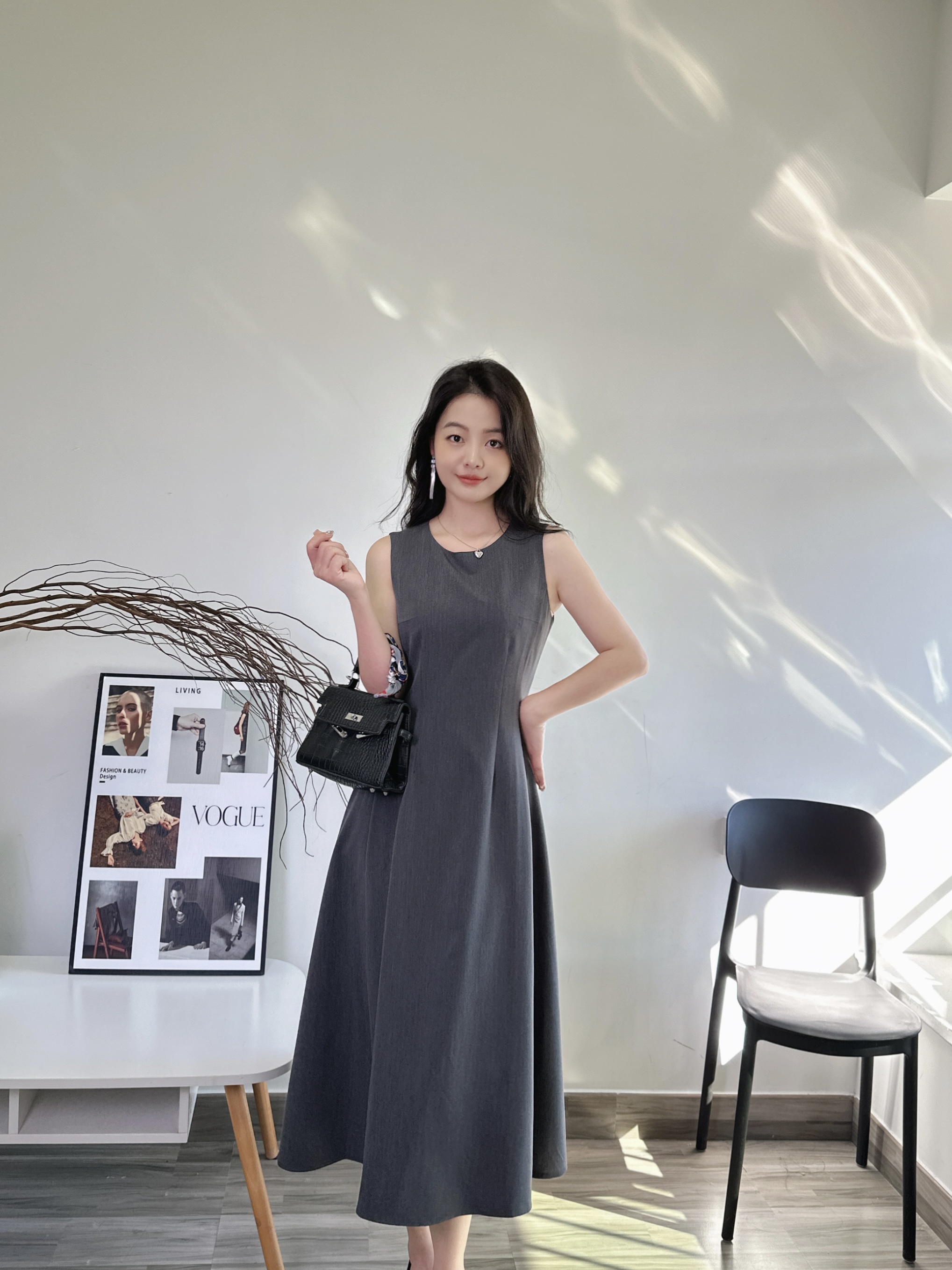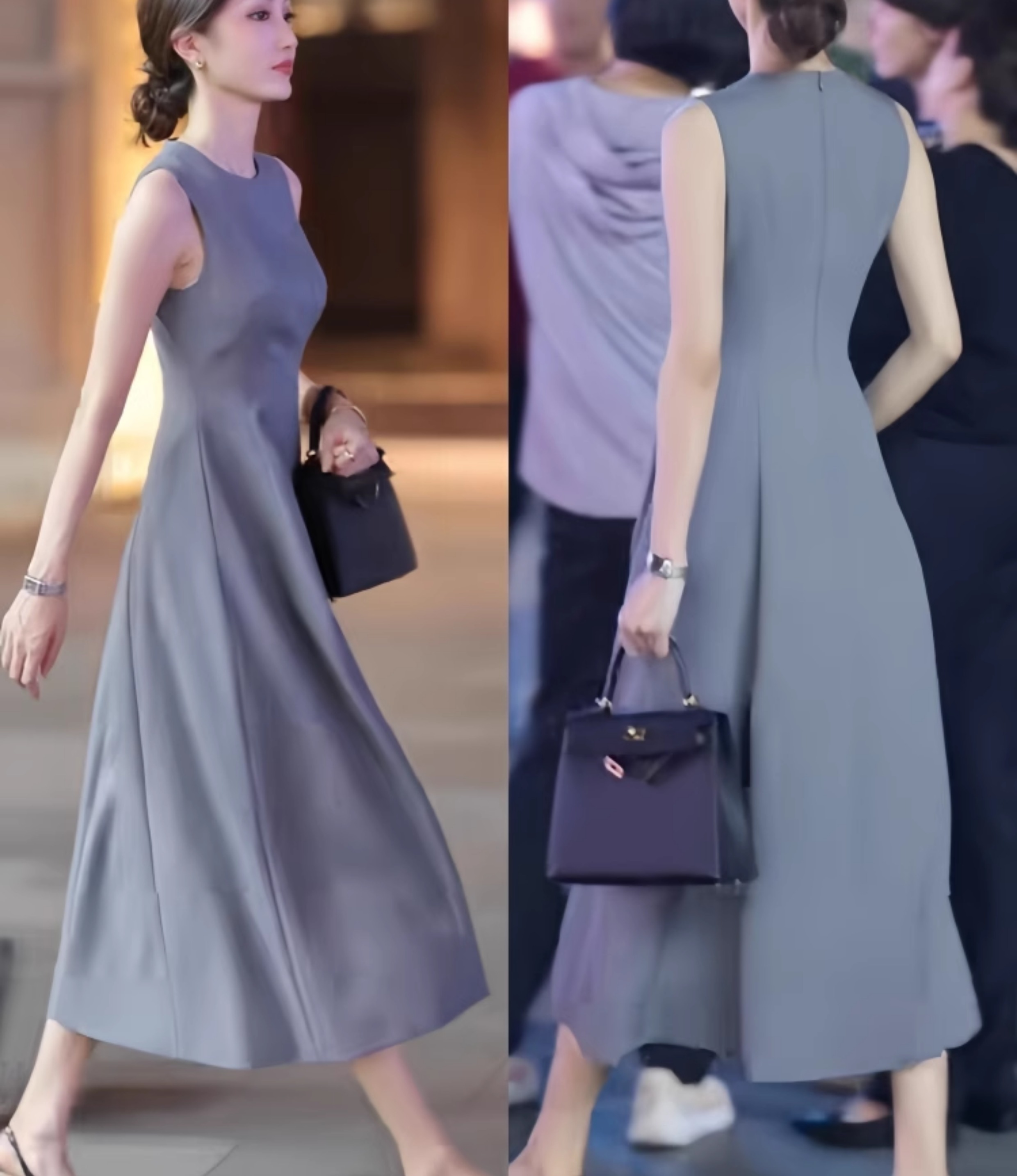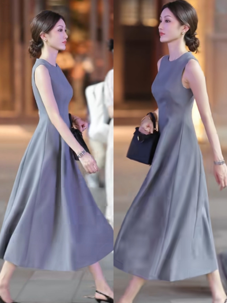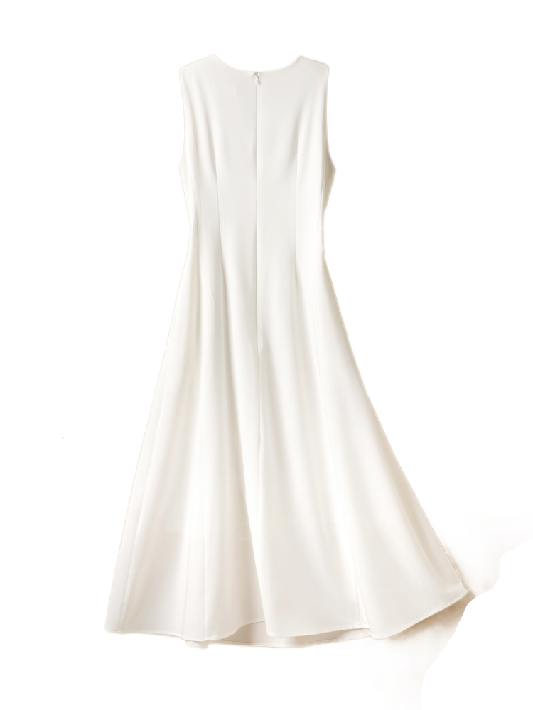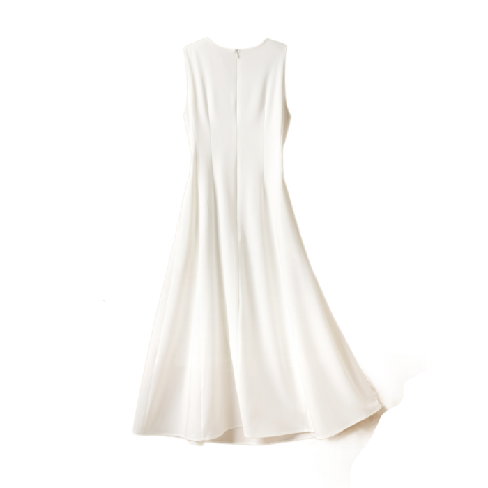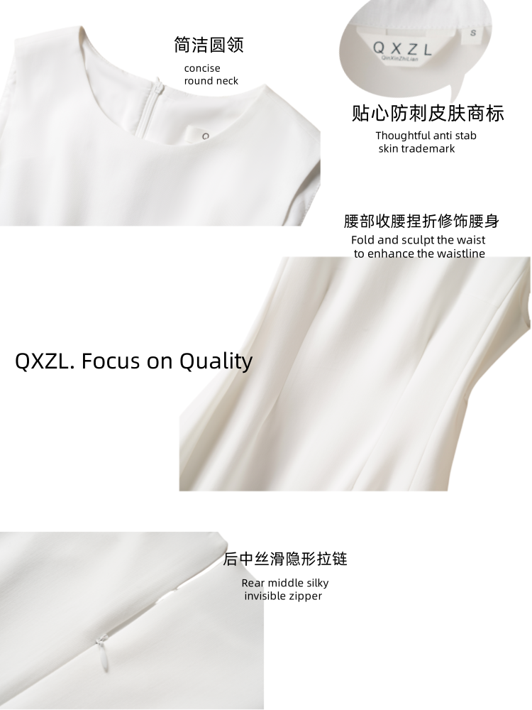 QXZL法式無袖背心裙2025春夏款A裙大擺中長白色圓領收腰連衣裙女