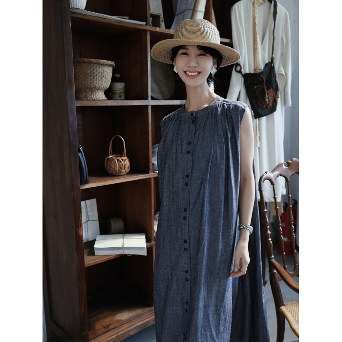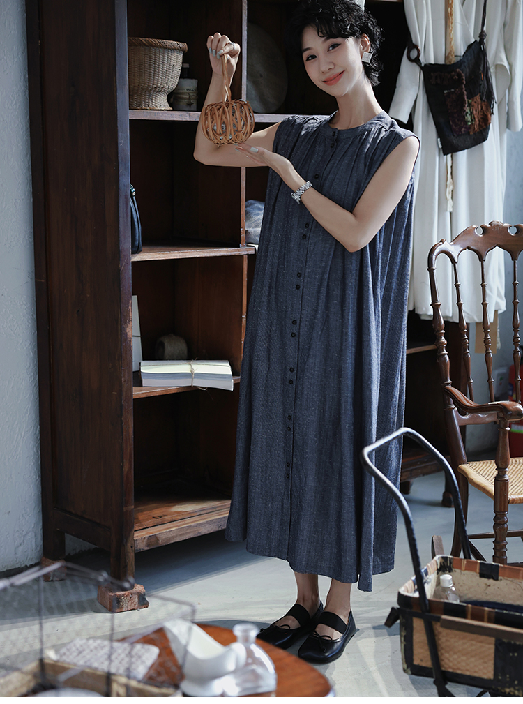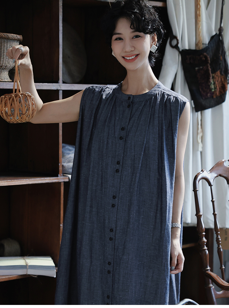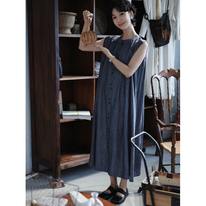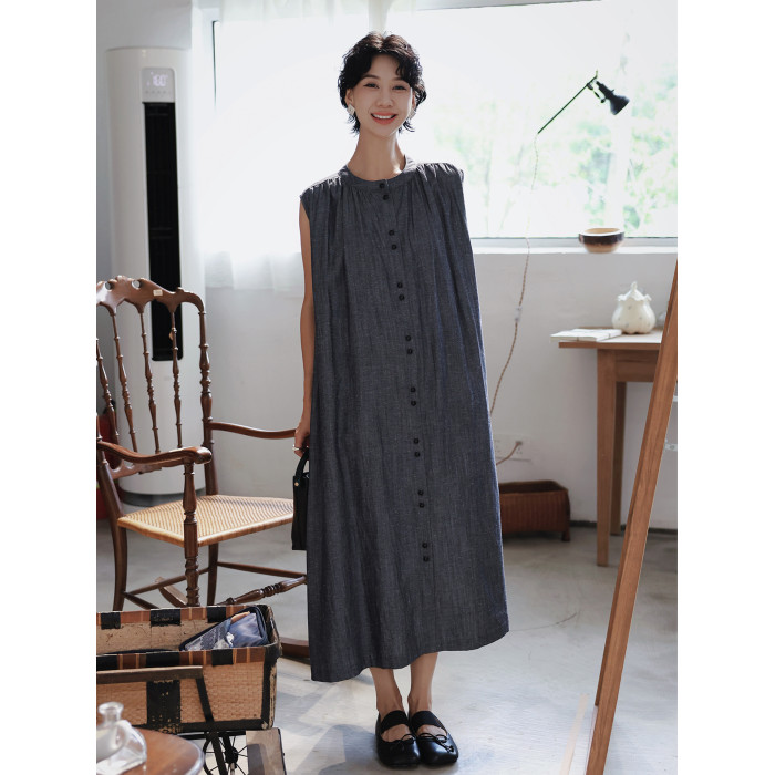 TT設計師【青絲縷】時尚寬松休閒慵懶風無袖襯衫連衣裙女夏季新款