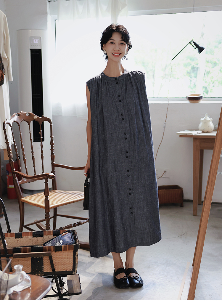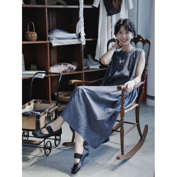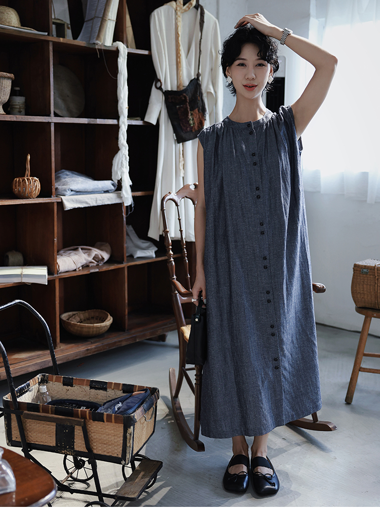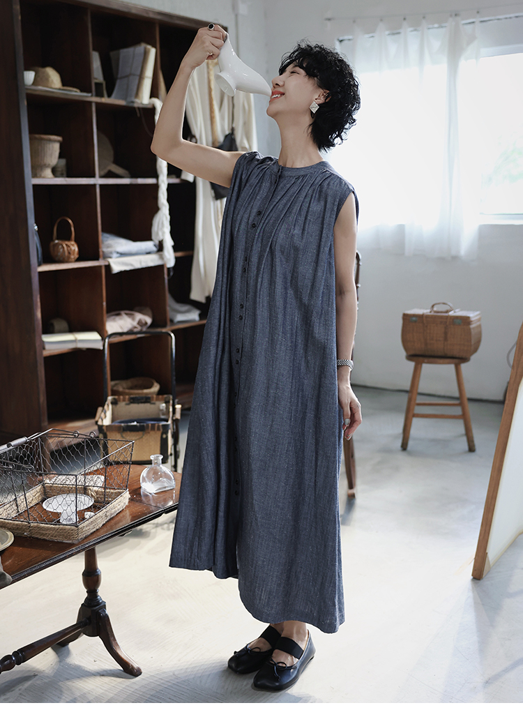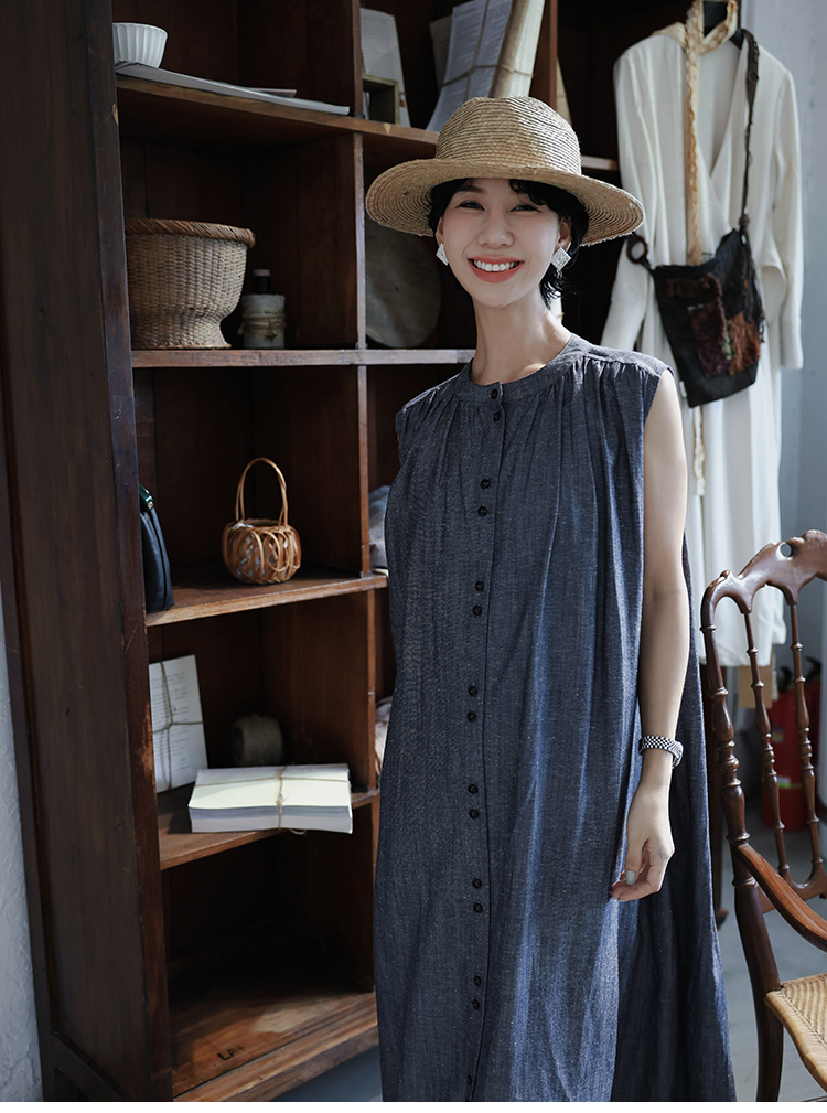 TT設計師【青絲縷】時尚寬松休閒慵懶風無袖襯衫連衣裙女夏季新款