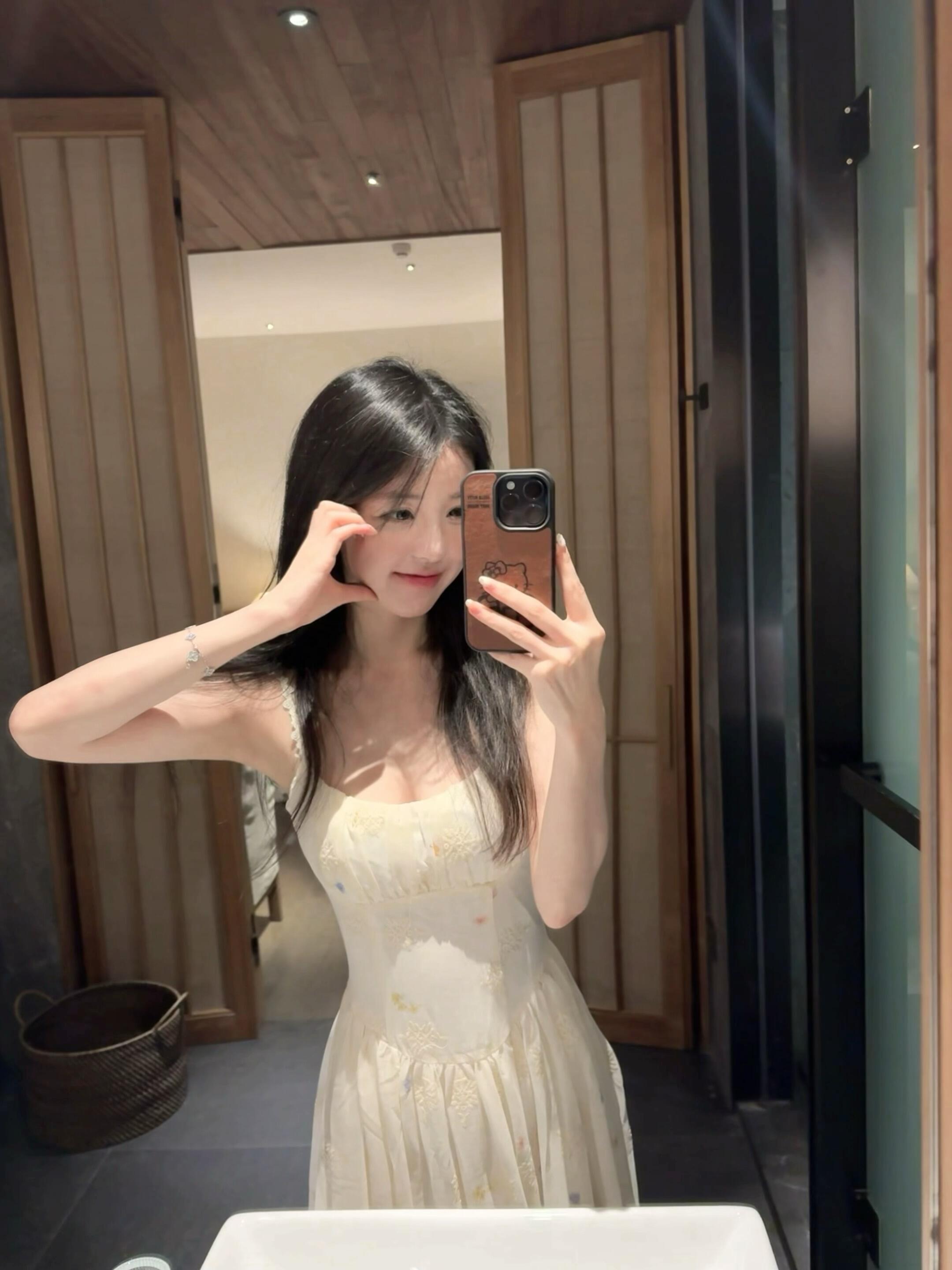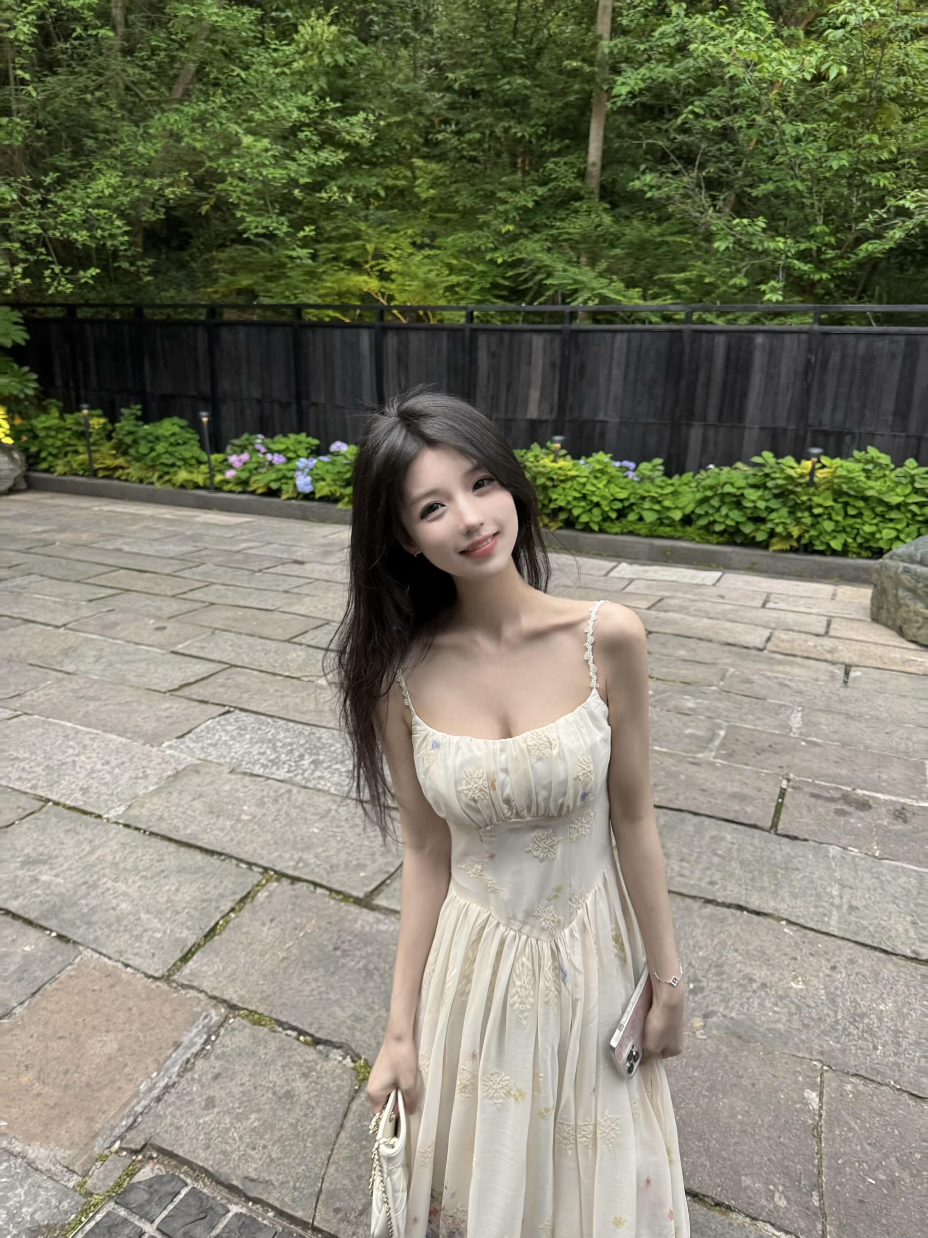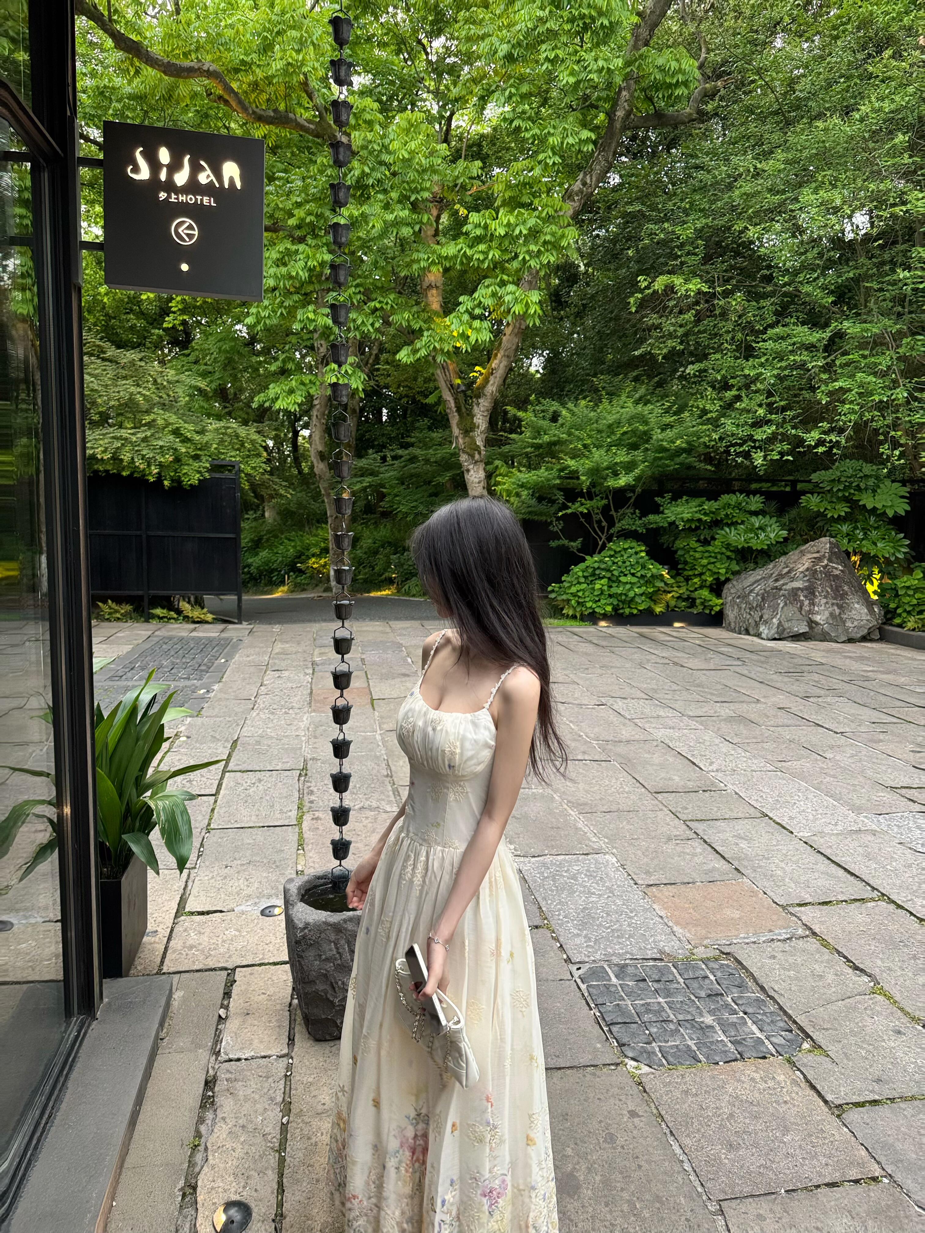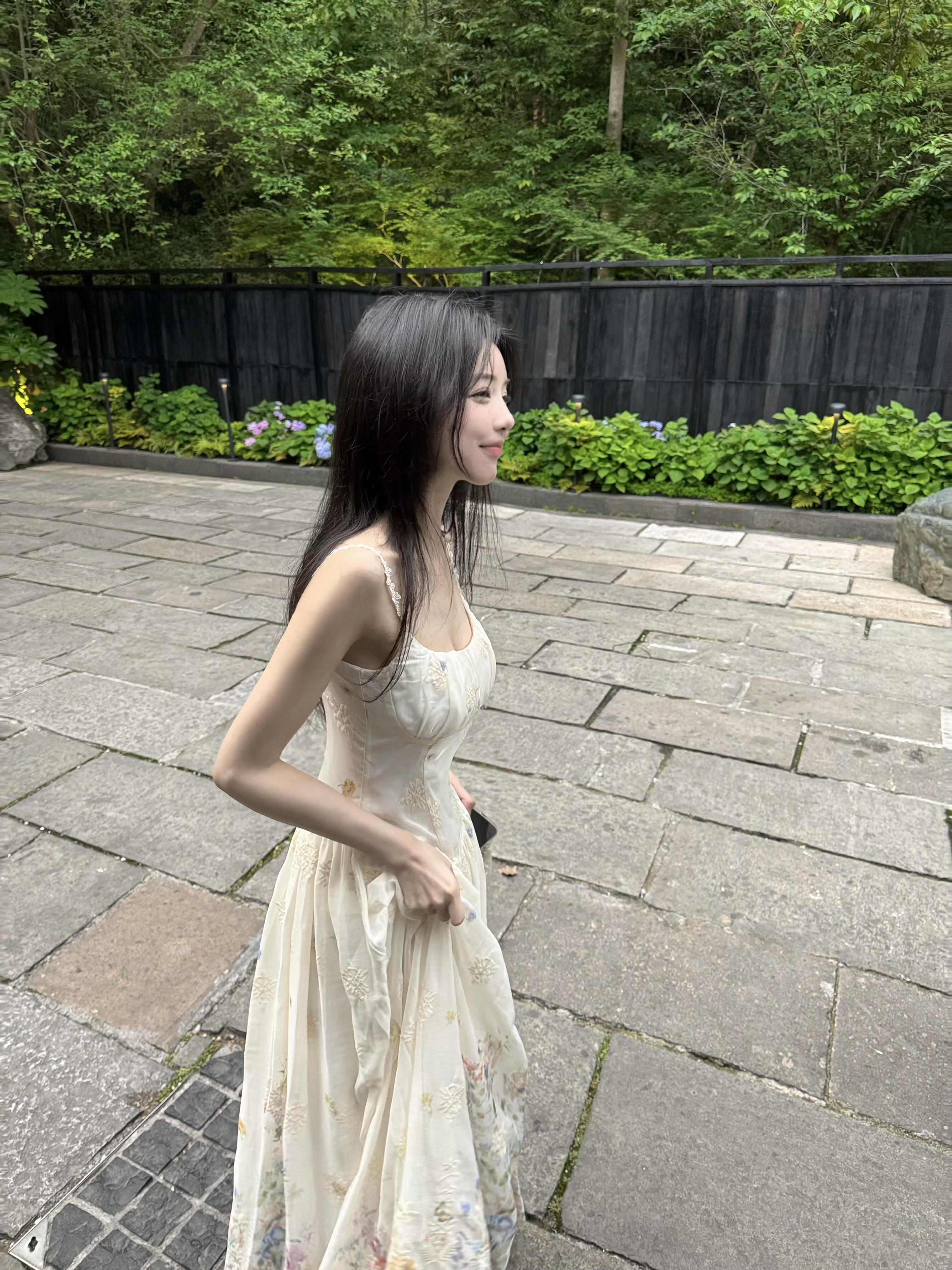 【秘鏡花園】重工刺綉吊帶連衣裙女度假風收腰顯瘦海邊絕美長裙子