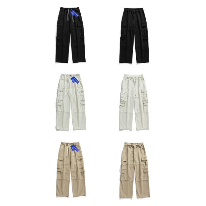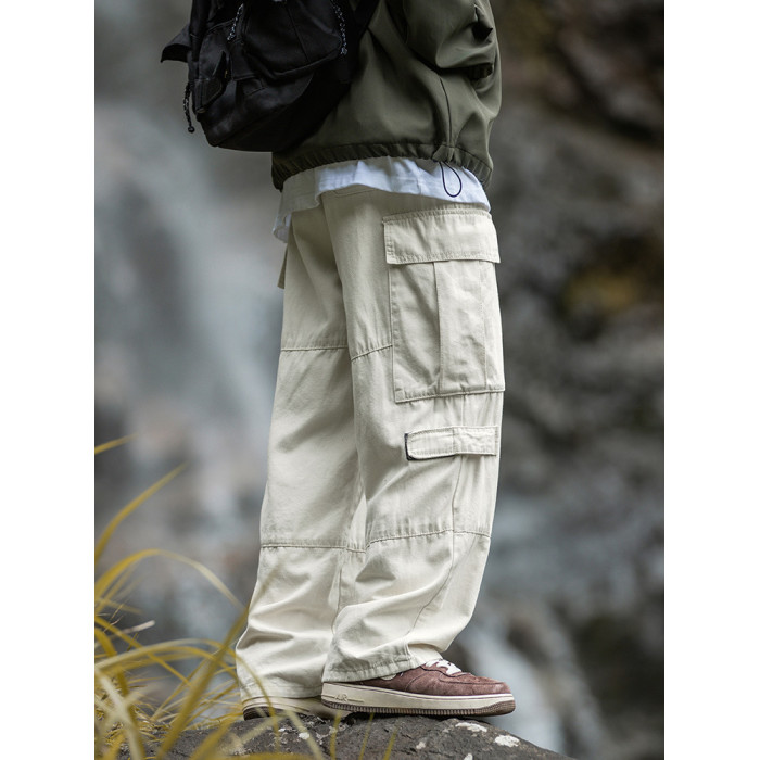 WASSUP復古濶腿褲男生寬松直筒秋冬美式街頭工裝潮牌風多口袋褲子