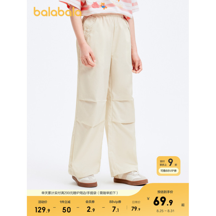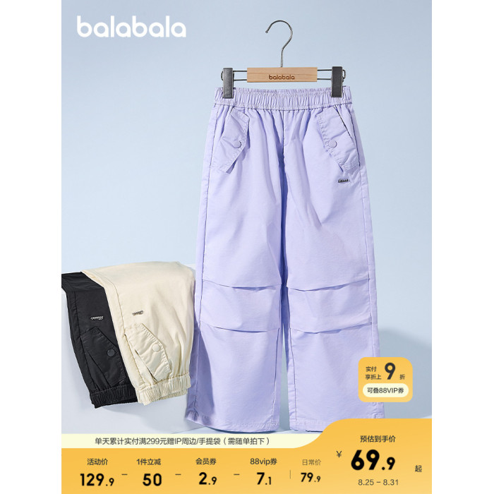巴拉巴拉女童休閒褲兒童褲子夏季中大童速乾降落繖褲透氣百搭長褲