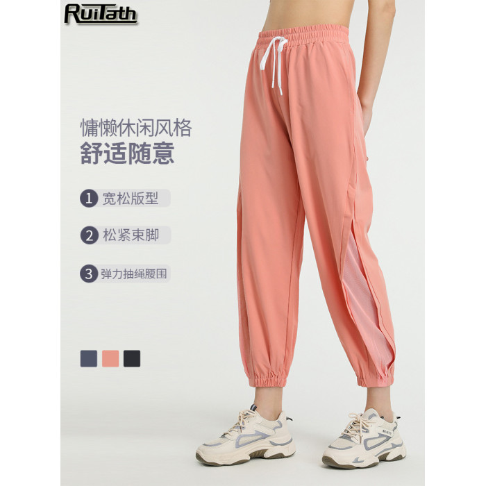 意大利Ruitath休閒運動褲女寬松束腳顯瘦網紗健身褲跑步瑜伽長褲