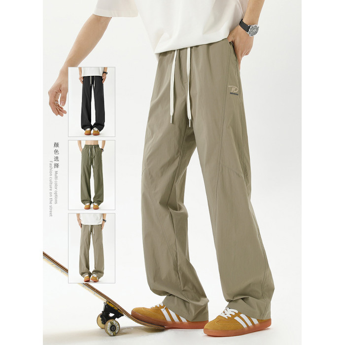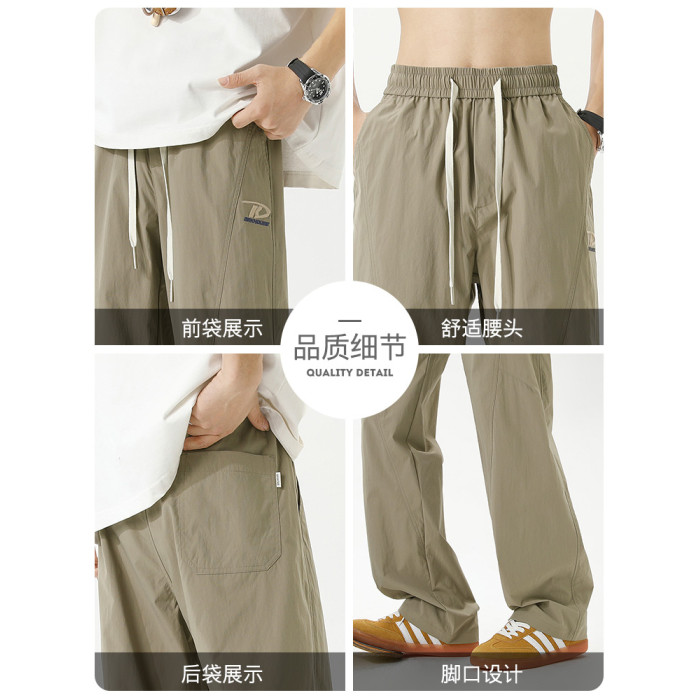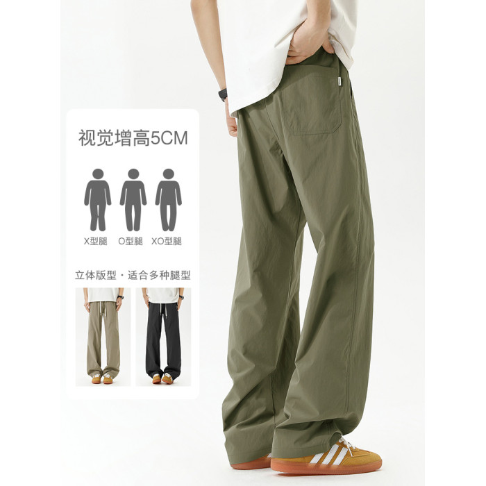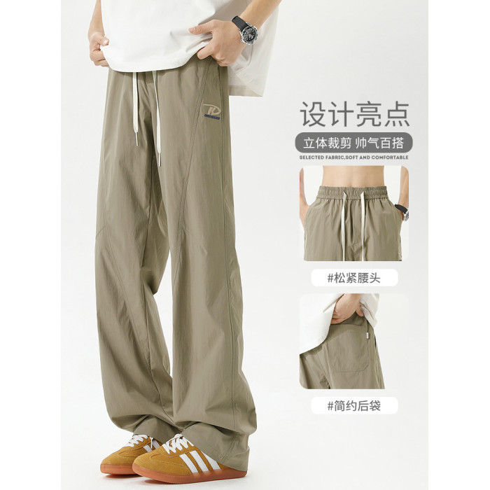 恩洛亞直筒休閒褲男夏季薄款寬松工裝褲潮牌高街濶腿褲子戶外長褲