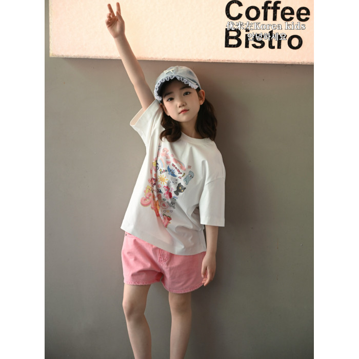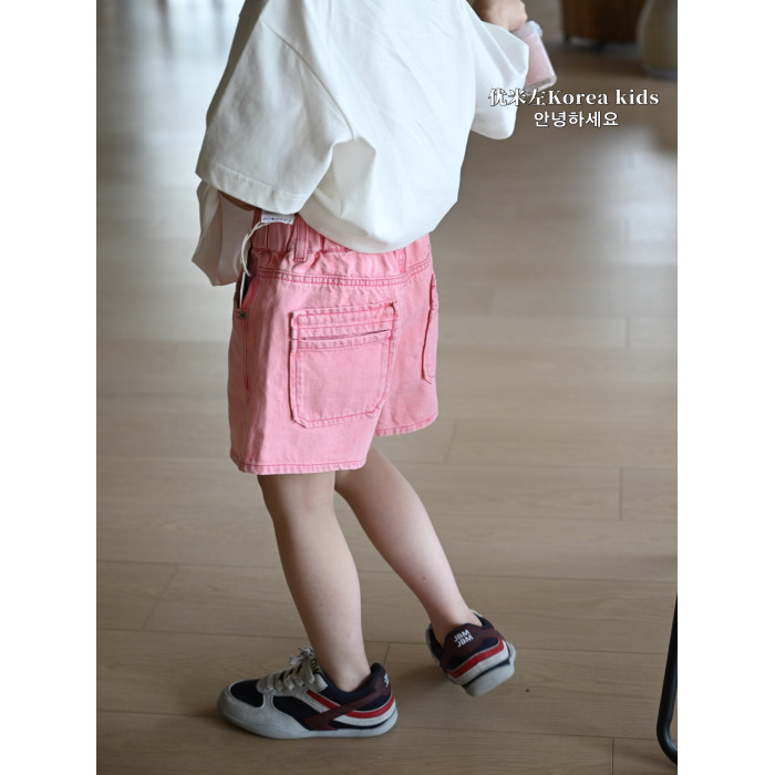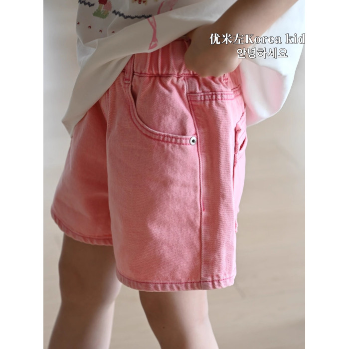 優米左品牌童裝女童短褲2025新款洋氣兒童小粉褲女孩牛仔褲時髦