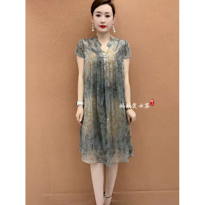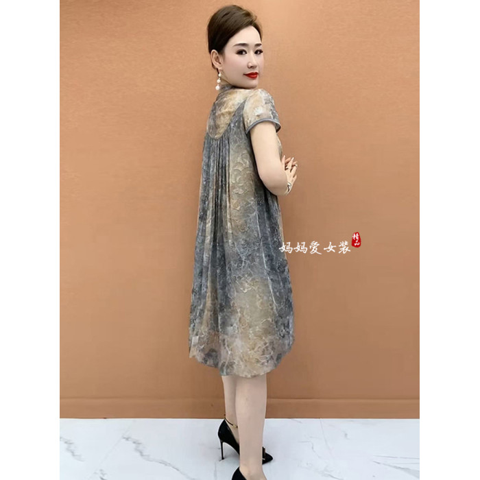 2025夏季新款氣質短袖連衣裙百搭中長款減齡透氣裙子大碼寬松女裙