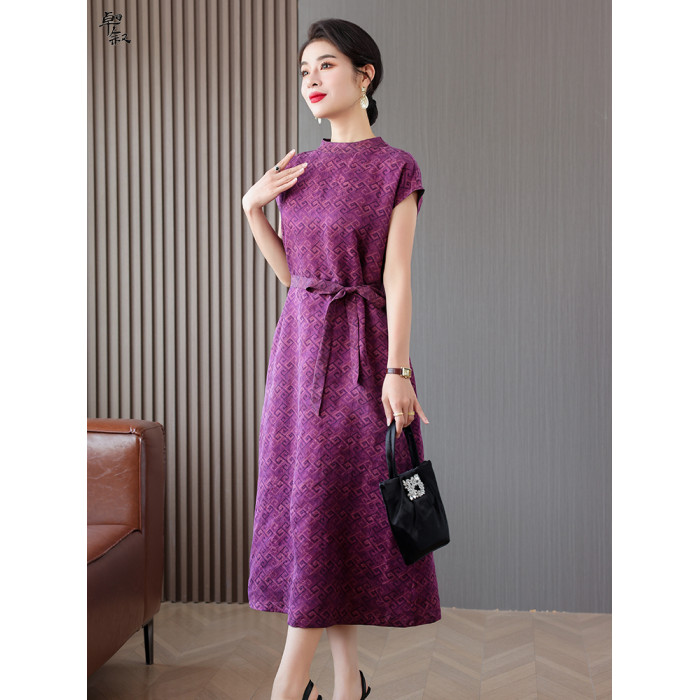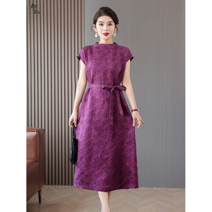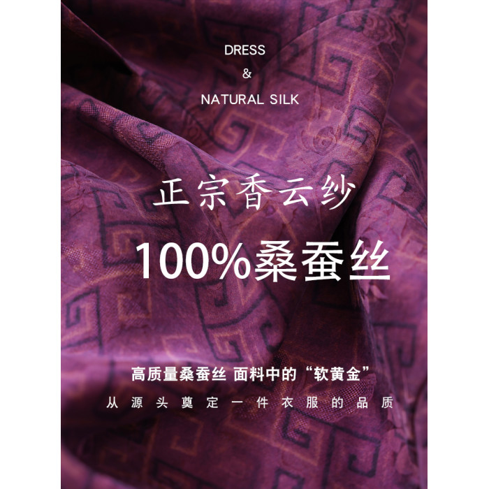 花羅香雲紗連衣裙100%桑蠶絲女夏旗袍真絲裙子2025新款氣質新中式