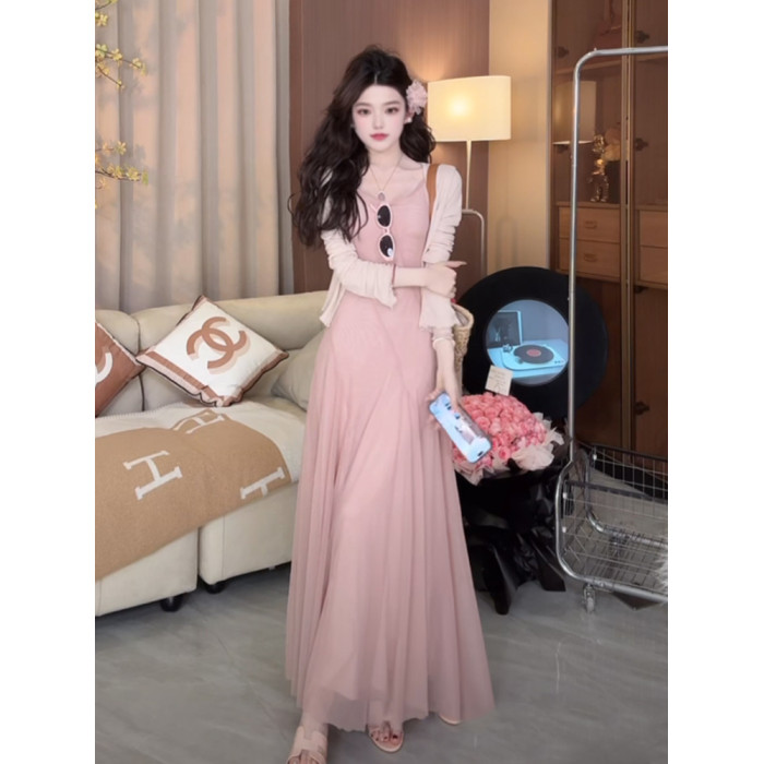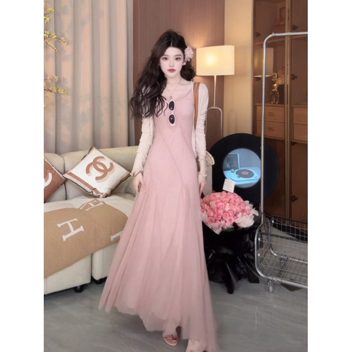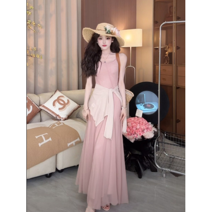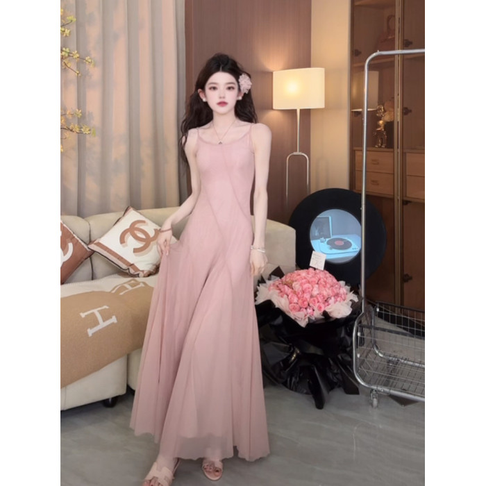 2025夏季新款沙灘海邊度假修身顯瘦吊帶裙不規則網紗吊帶連衣裙女