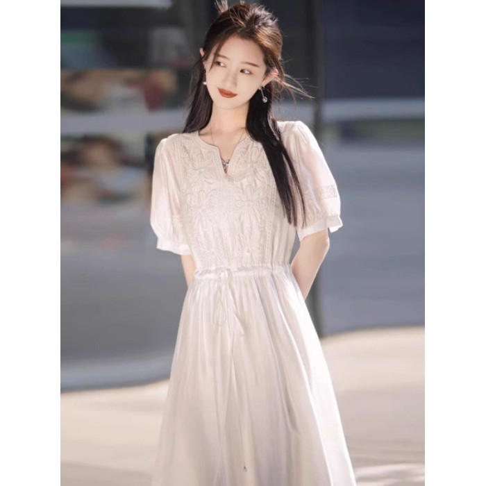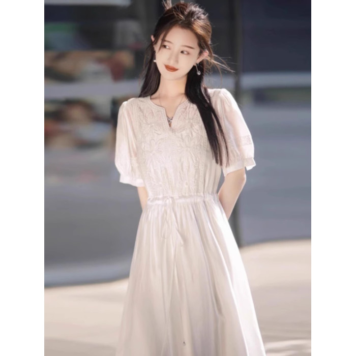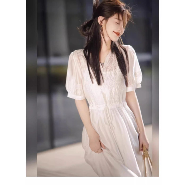 歐洲站法式白色連衣裙2025新款女夏季小個子氣質高級絕美仙女長裙