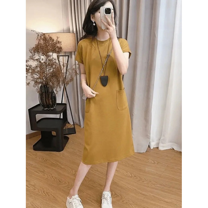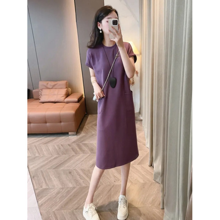 韓國時尚簡約氣質休閒開叉連衣裙女2025夏季百搭寬松中長款衛衣裙