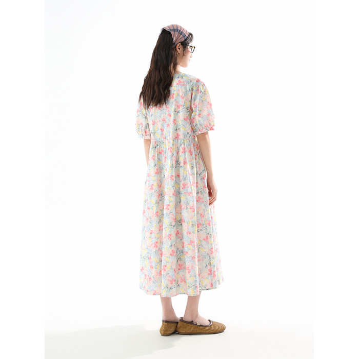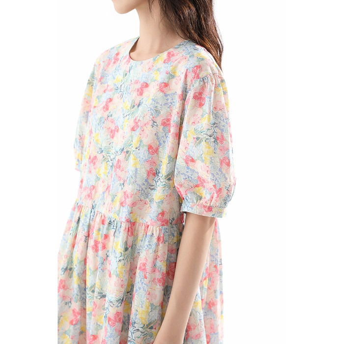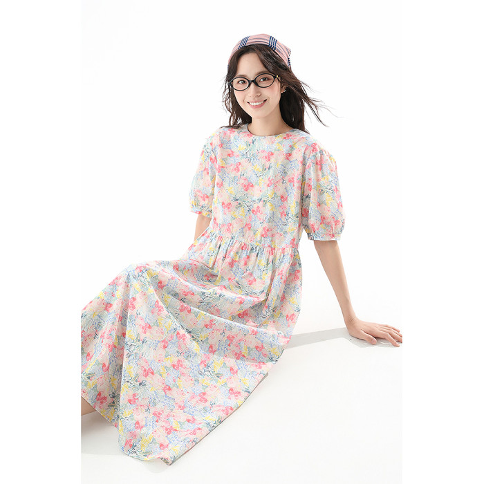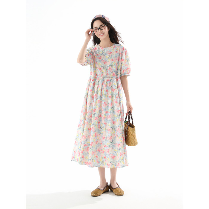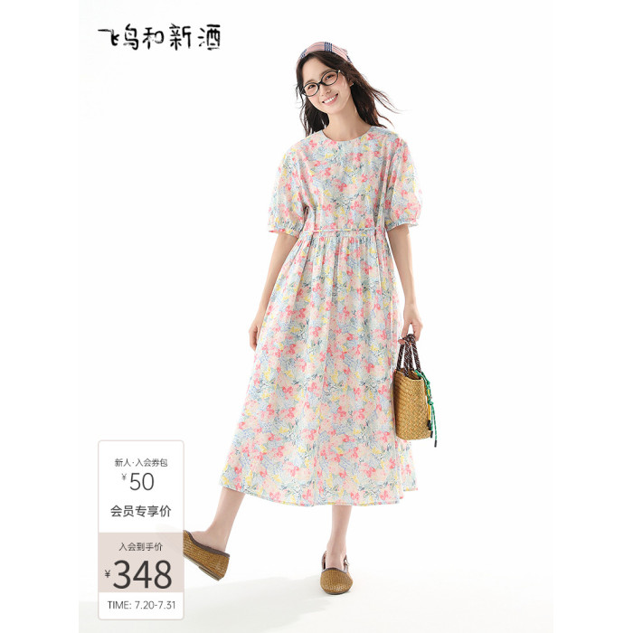 飛鳥和新酒純棉碎花連衣裙女寬松2025夏季新款中長款顯瘦純棉裙