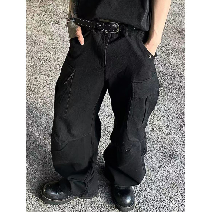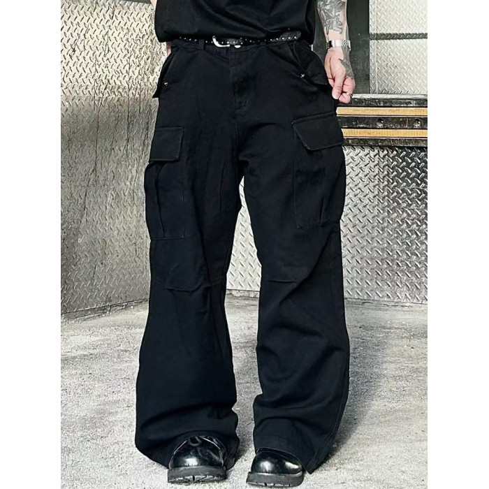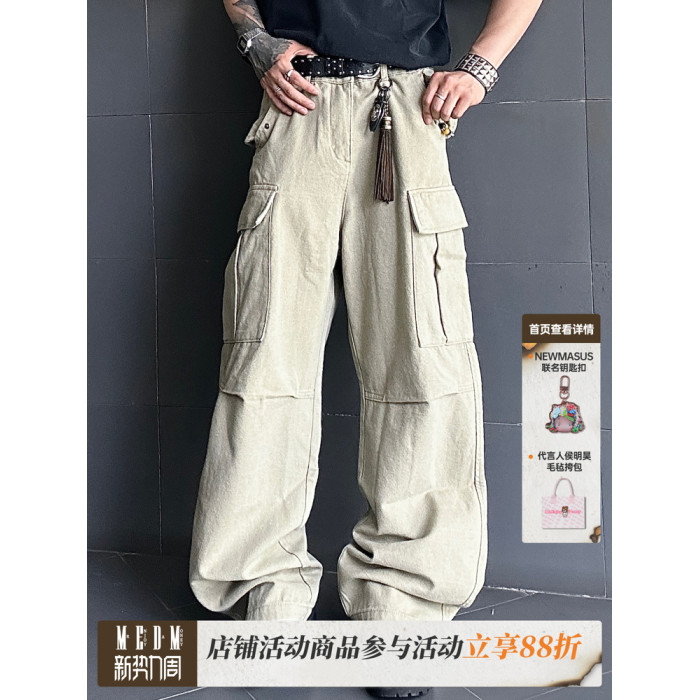 MEDM25SS單褶工裝褲男2025新款夏季美式寬松濶腿褲休閒直筒長褲子