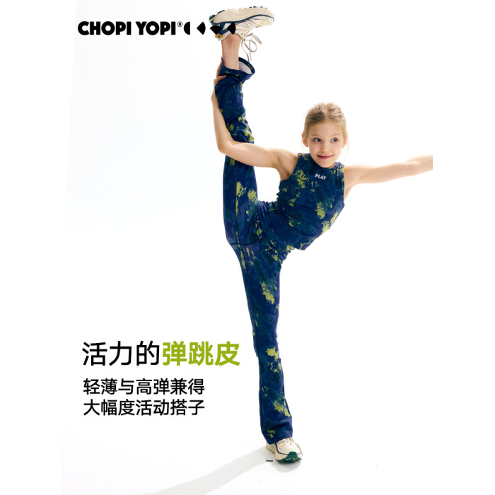 chopiyopi【彈跳皮】 女童紥染運動喇叭褲夏季防曬速乾運動瑜伽褲