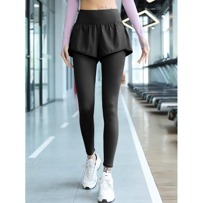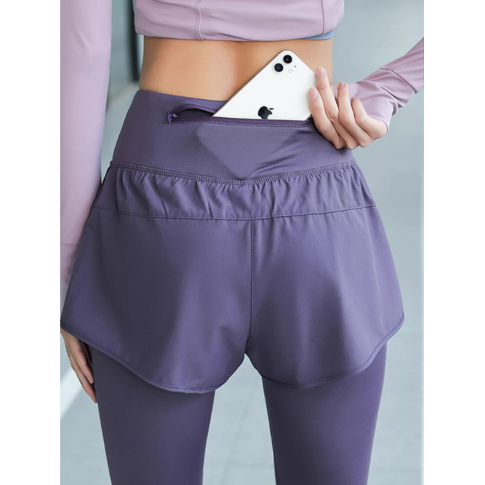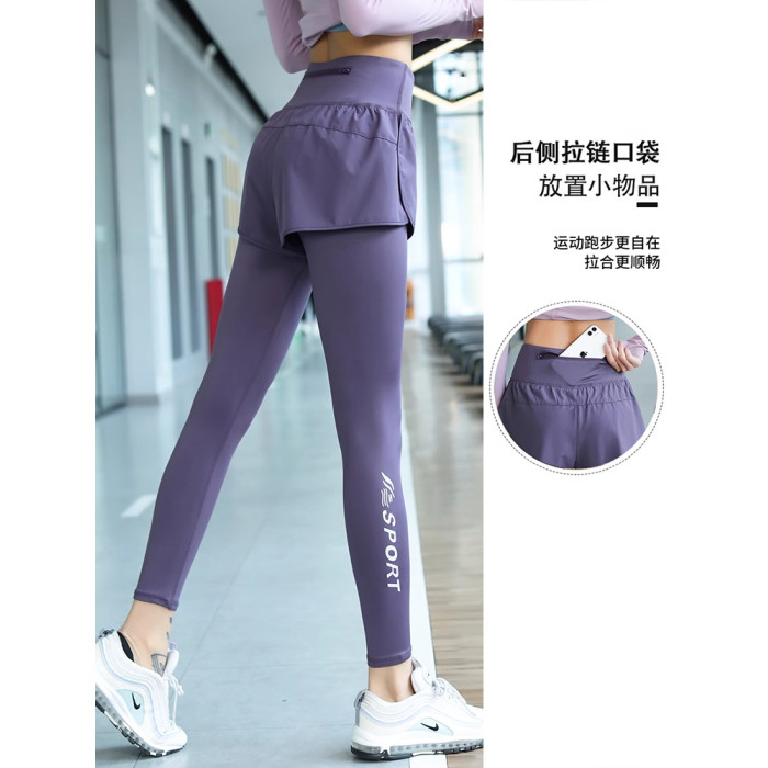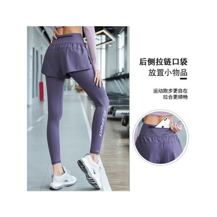 NextLori運動褲女春秋季新款高彈速乾褲瑜伽健身褲假兩件跑步長褲