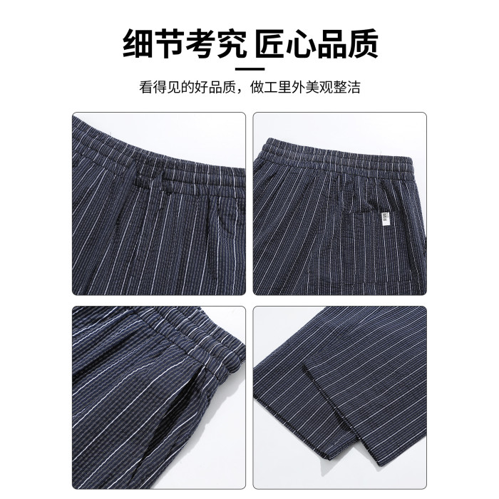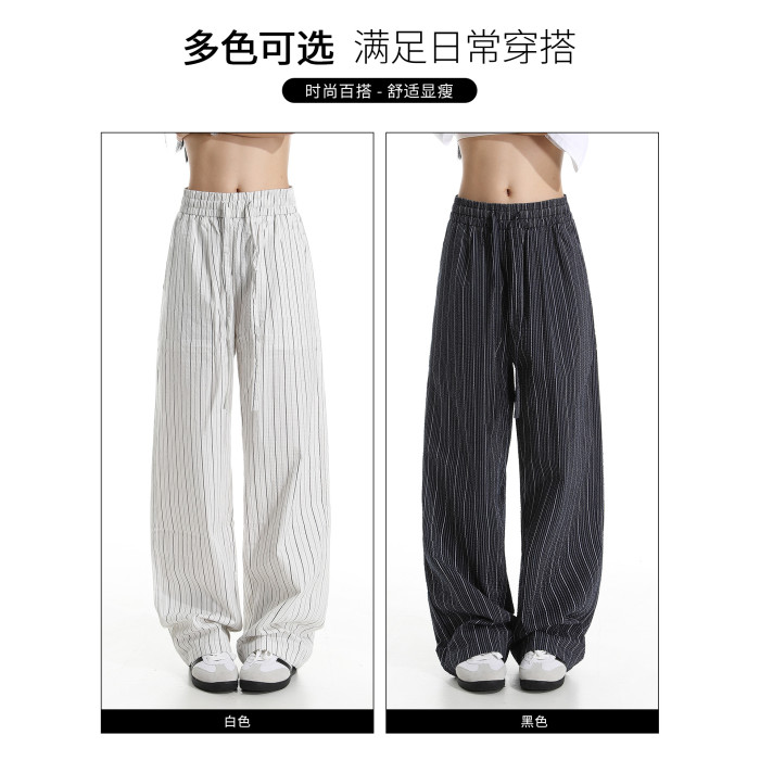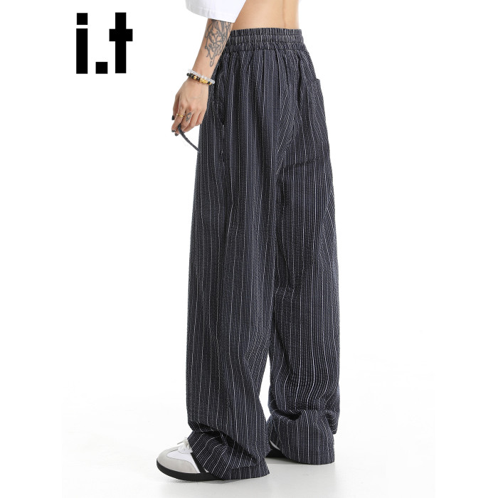 it :5cm/FIVECM美式松緊腰條紋休閒濶腿褲男女2025夏薄款寬松長褲