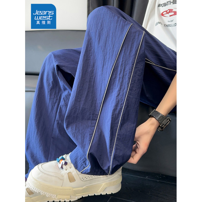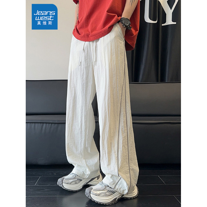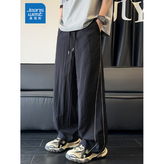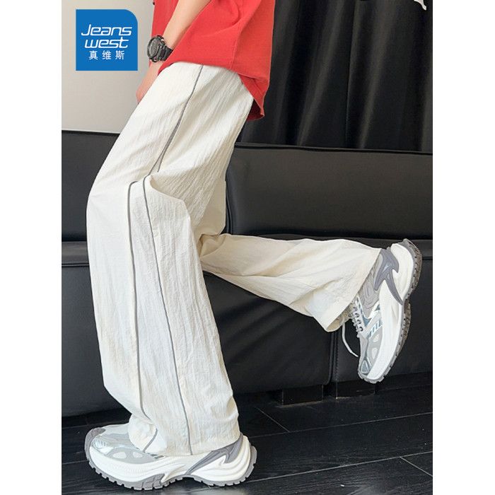 真維斯夏季薄款解搆褲子男美式寬松濶腿褲男直筒褲青少年酷帥長褲