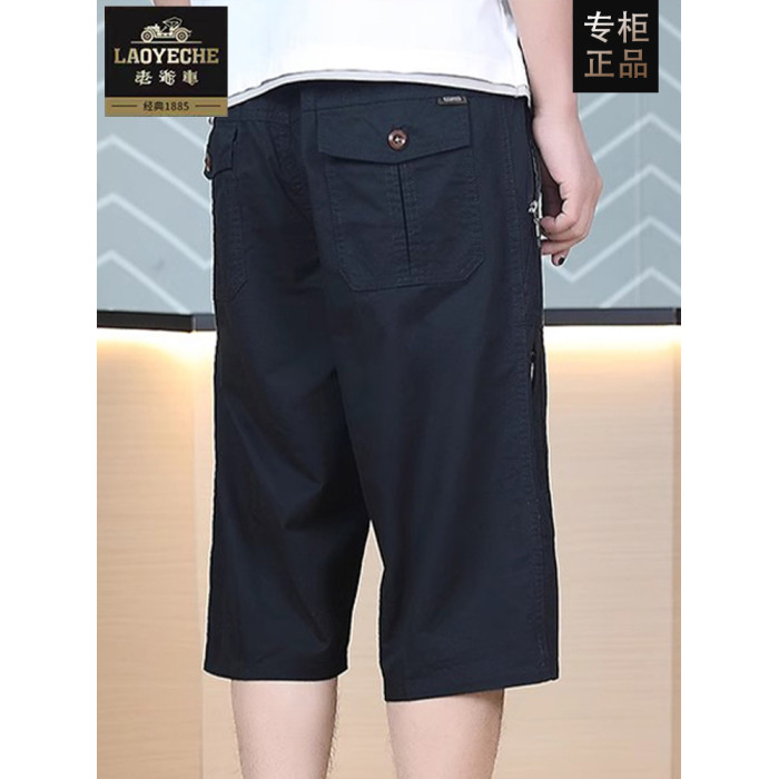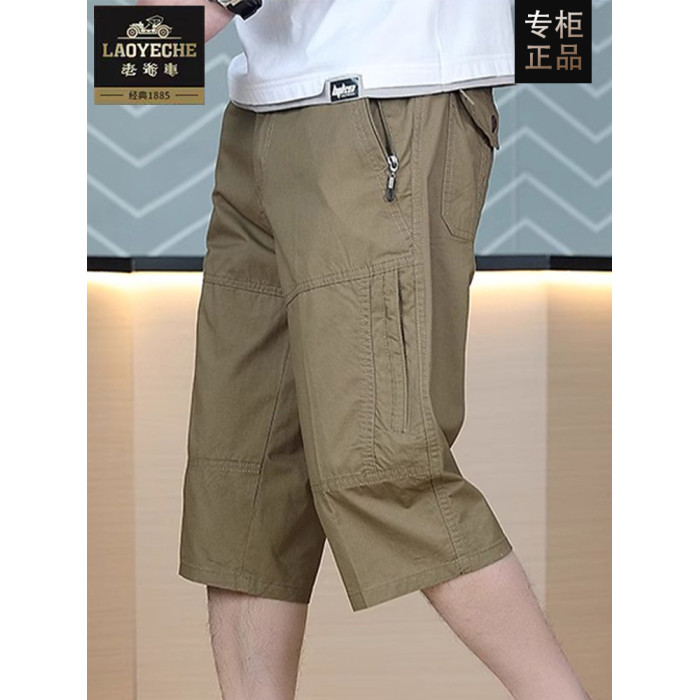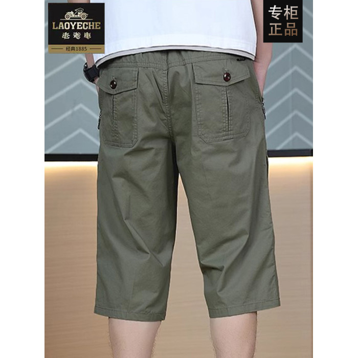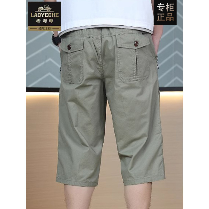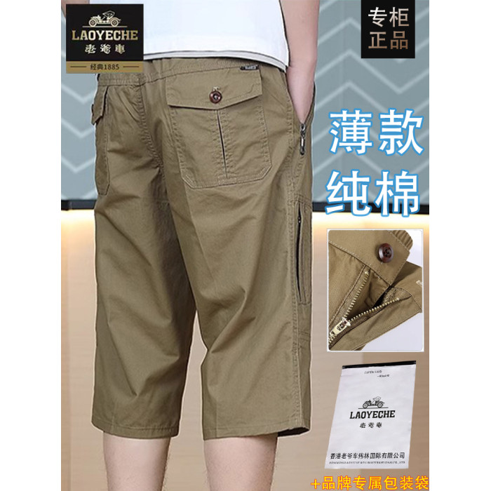 老爺車純棉工裝七分褲男士中老年休閒短褲夏季薄款寬松直筒濶腿褲