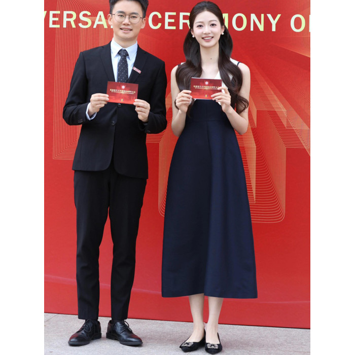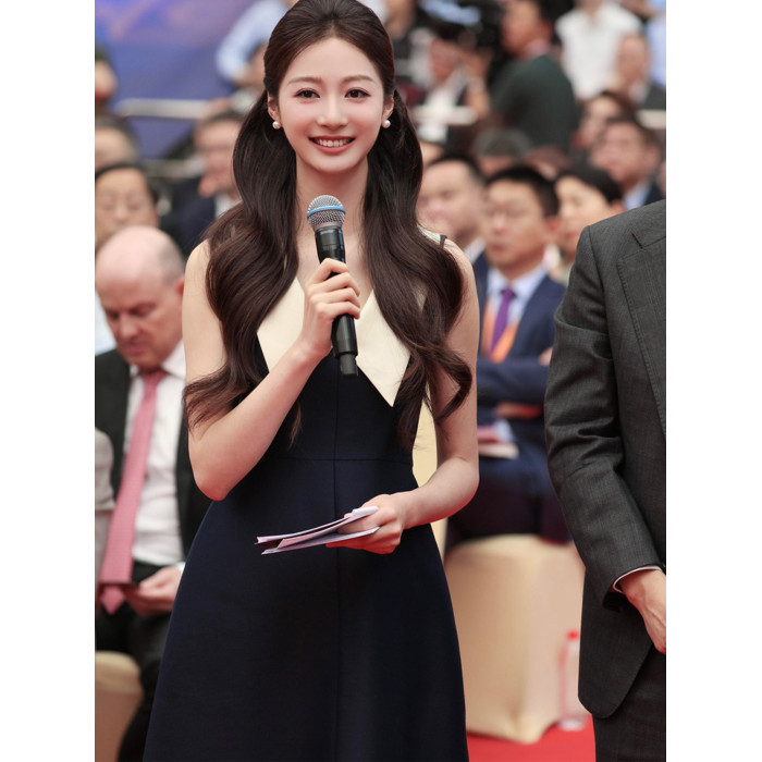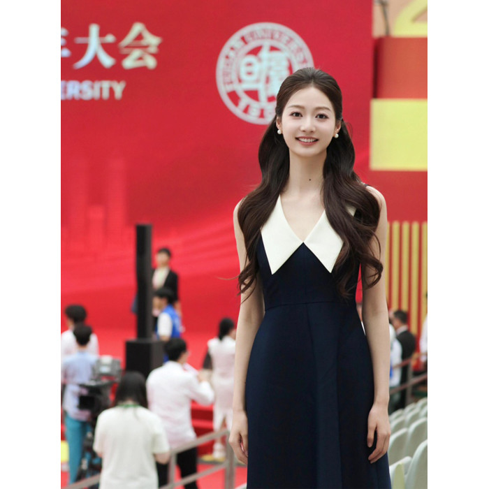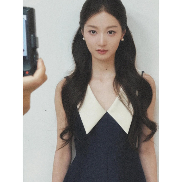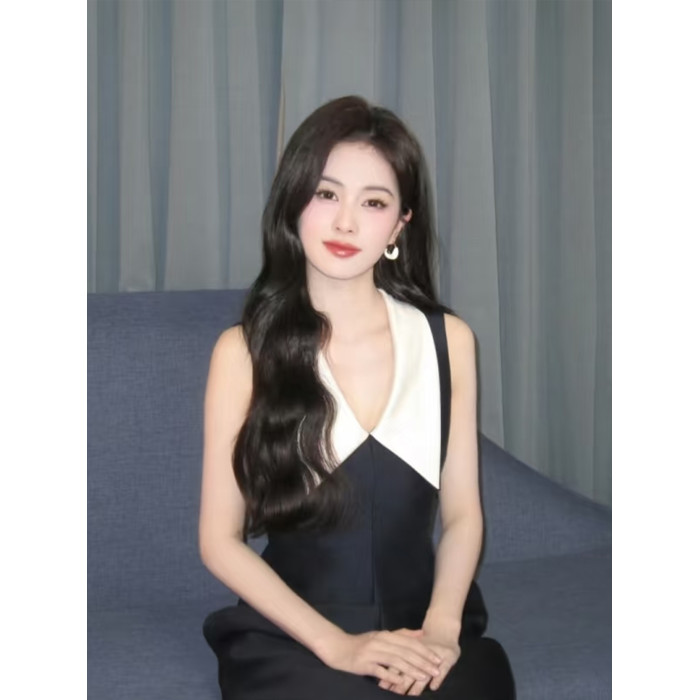 馮琳白鹿同款撞色無袖赫本風高級感連衣裙女高腰顯瘦氣質禮服長裙