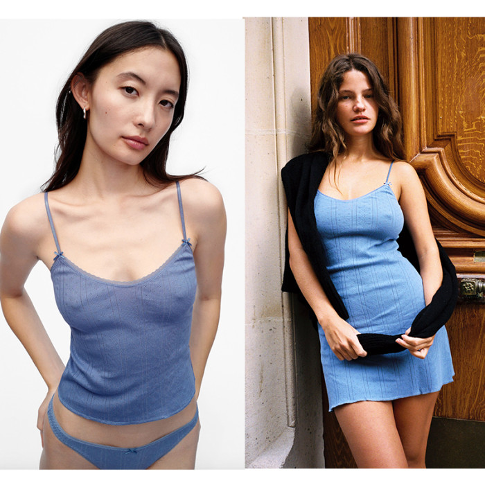coucou告訴老粉我早上換藍色裙子喝咖啡了吊帶與吊帶連衣裙修身