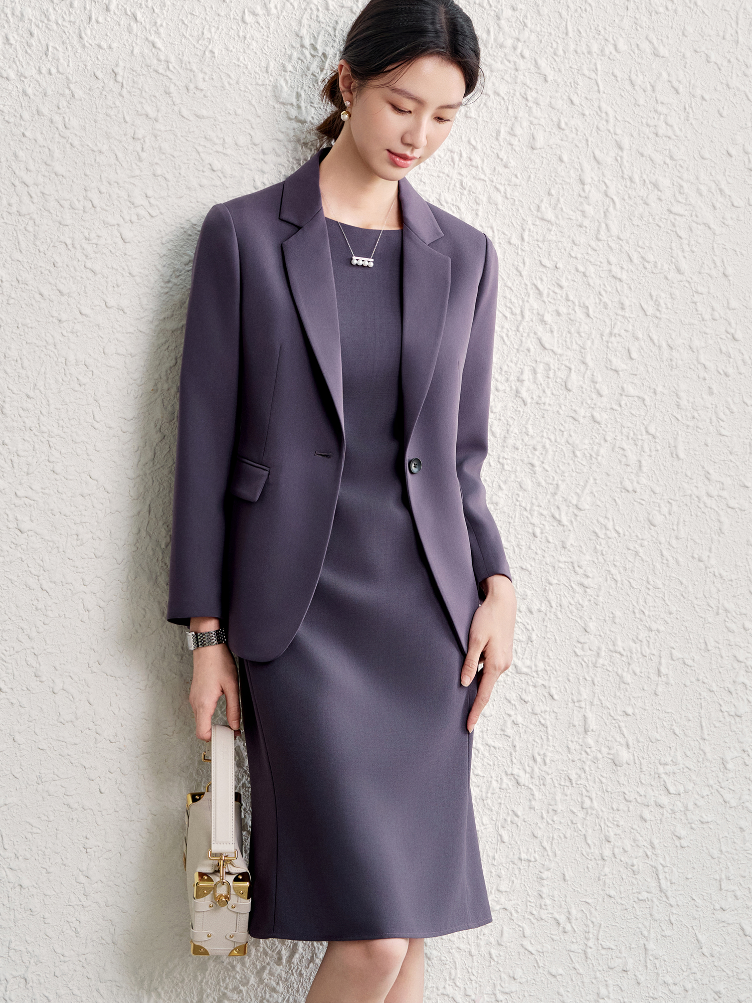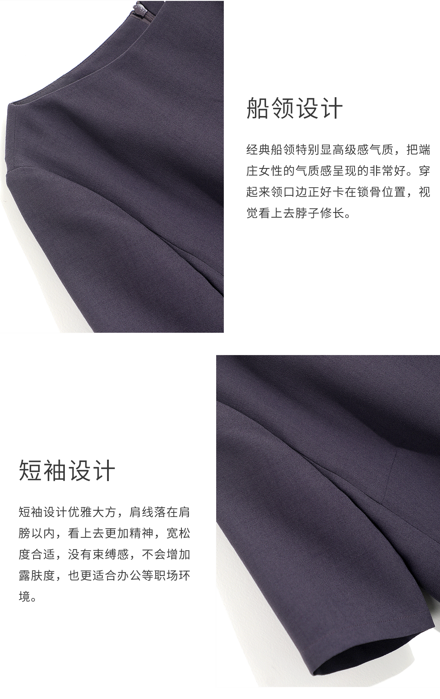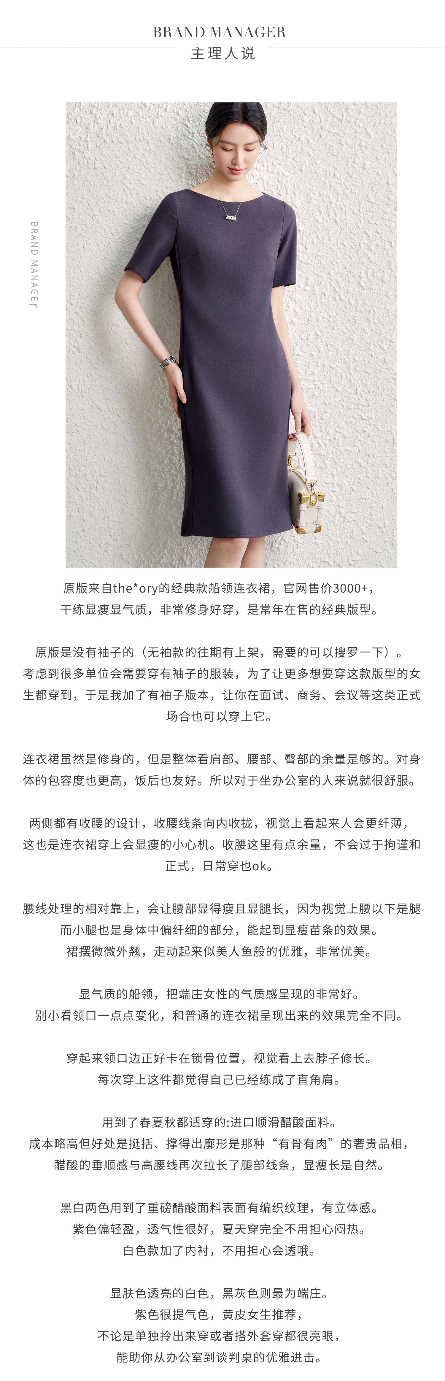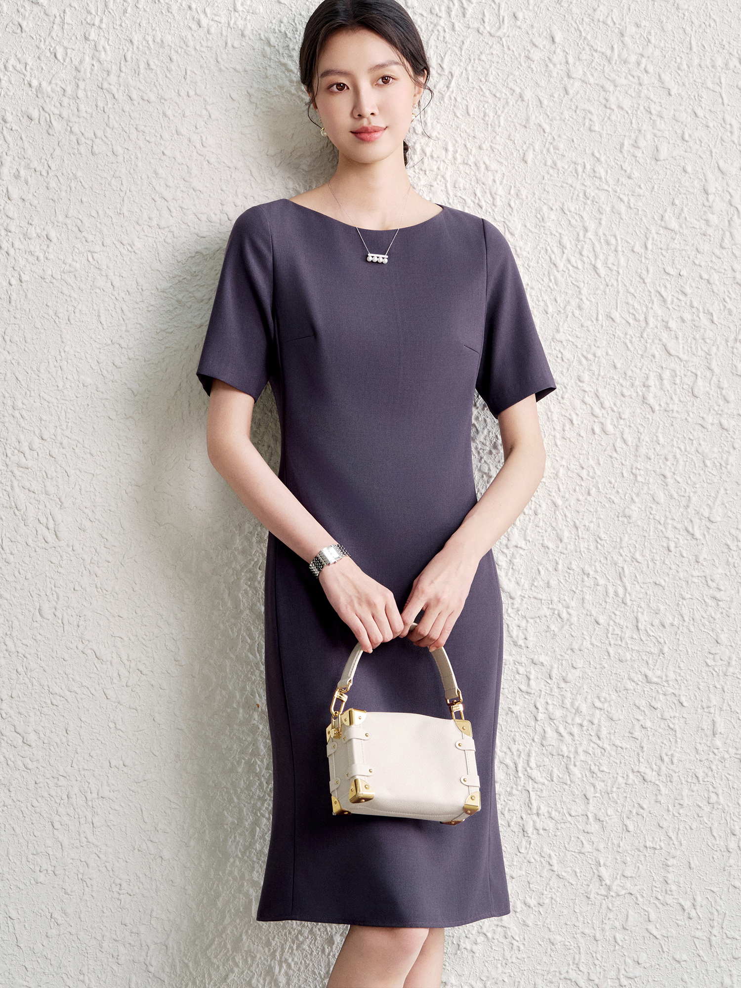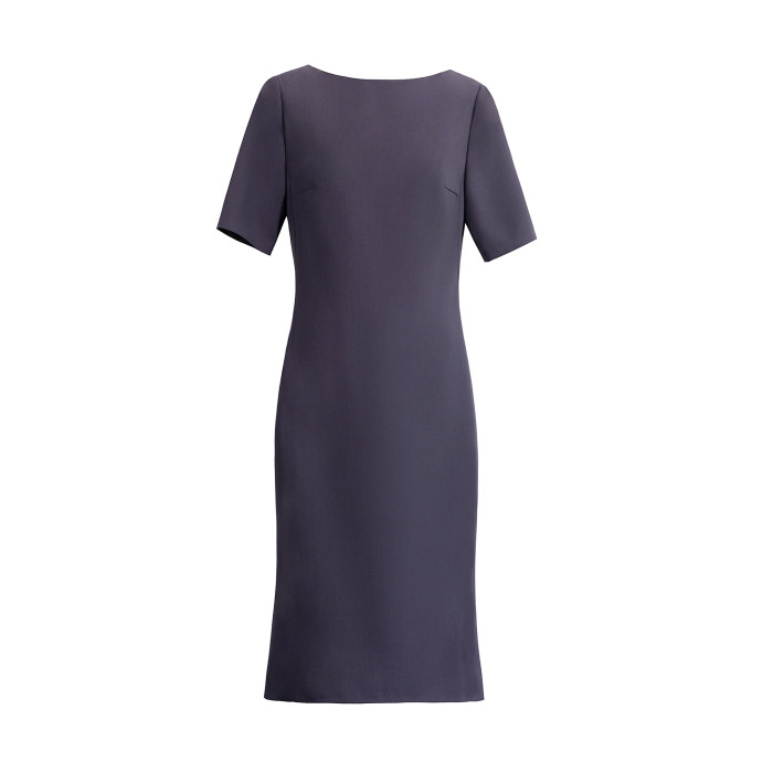 OFFIY-暗紫葡萄 經典TH醋酸短袖修身商務職業通勤氣質連衣裙春夏