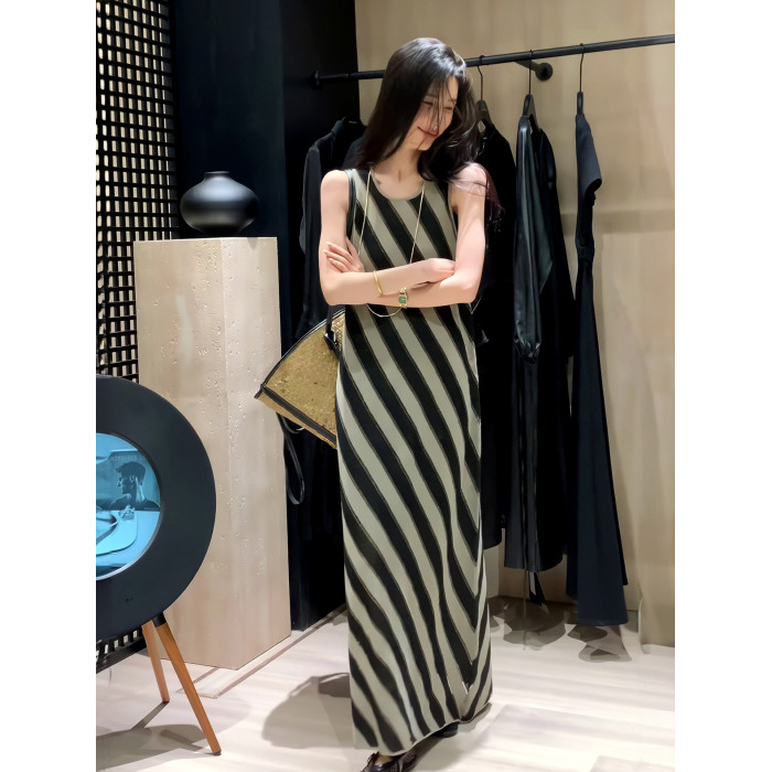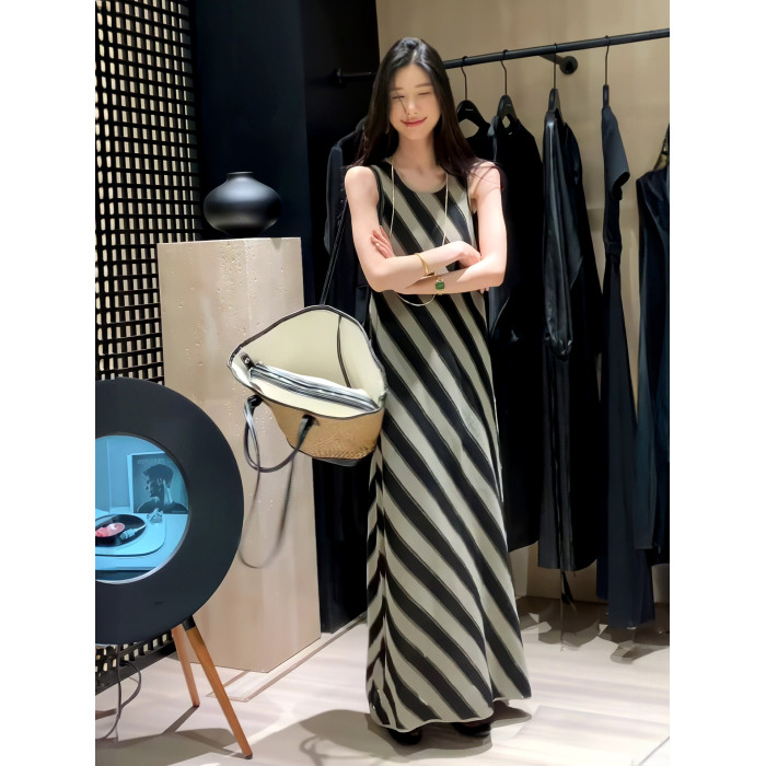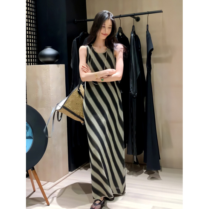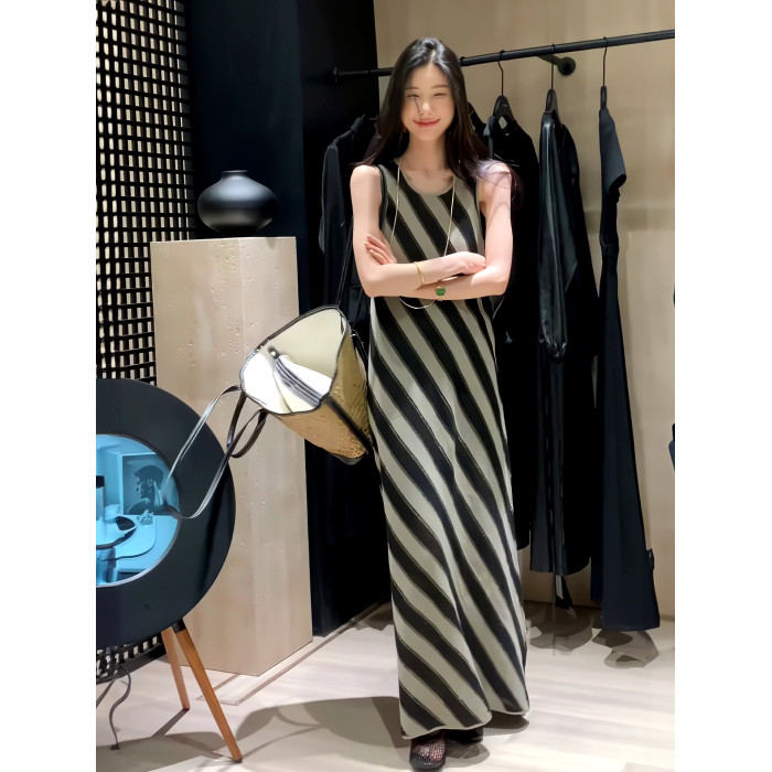 韓版氣質高級感條紋背心連衣裙女2025春夏新款寬松遮肉顯瘦直筒裙