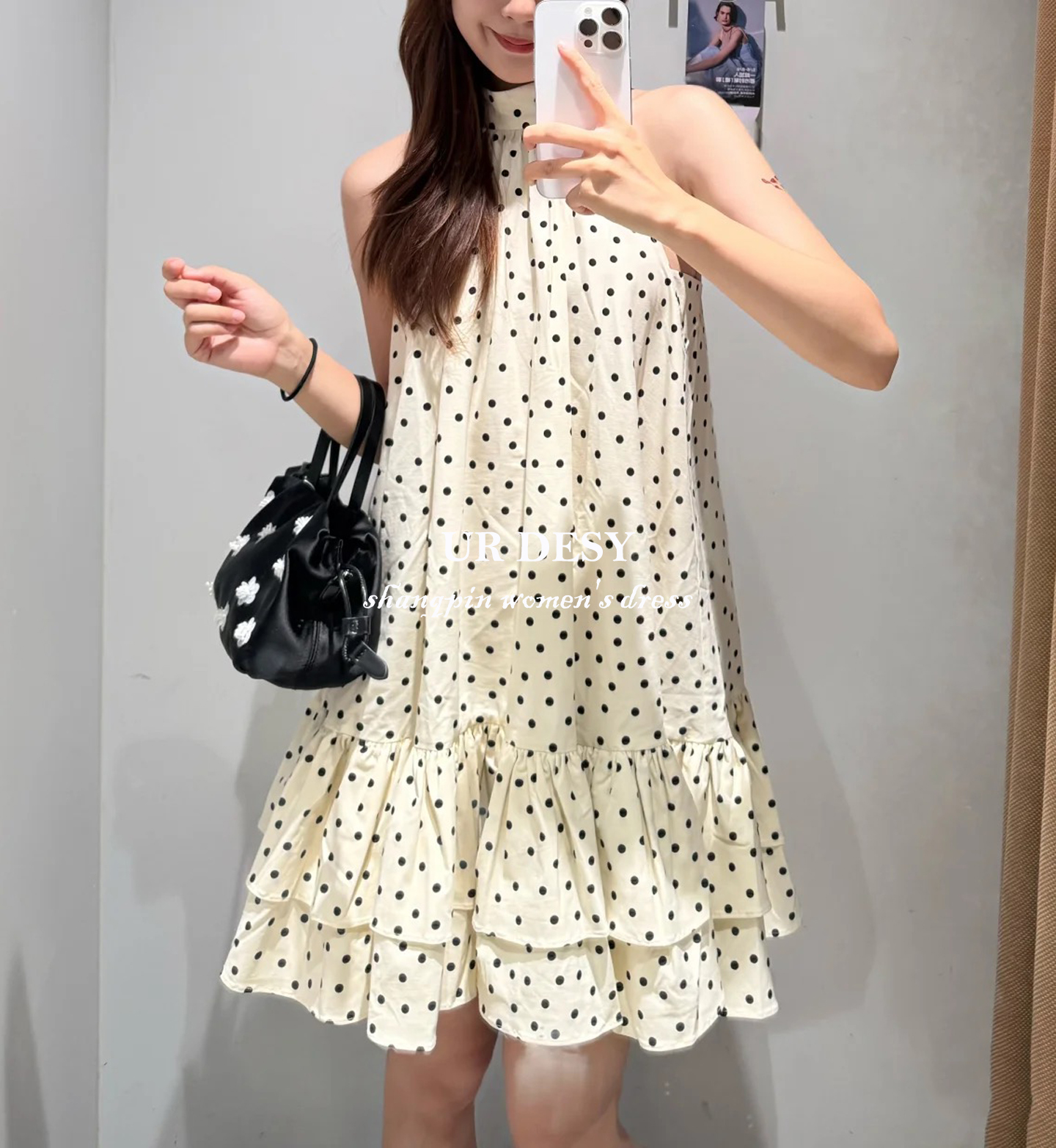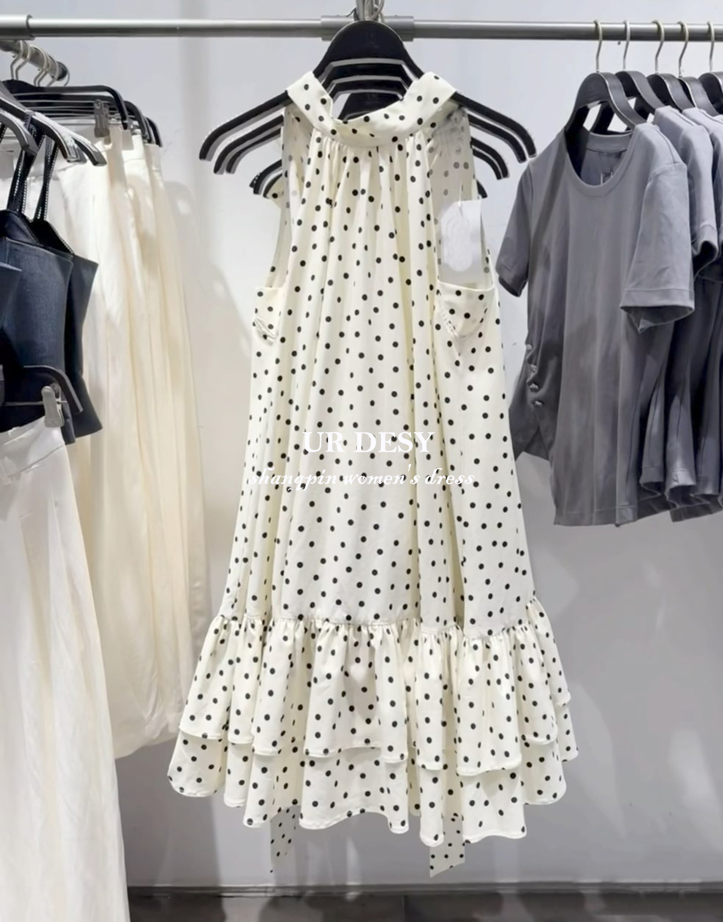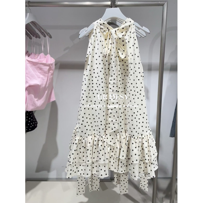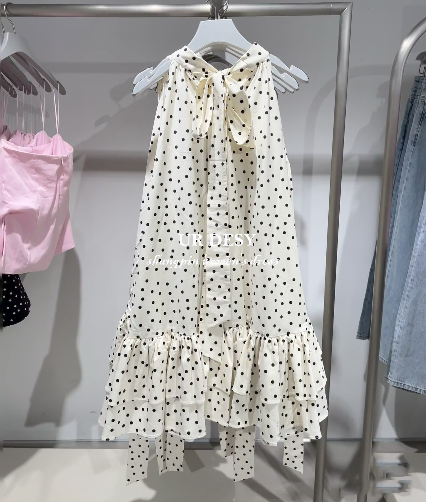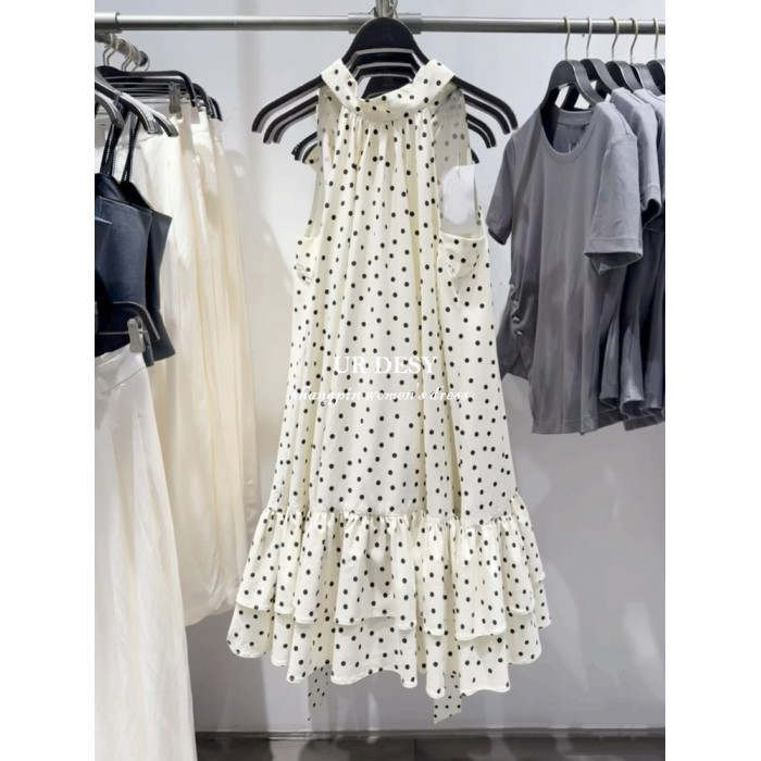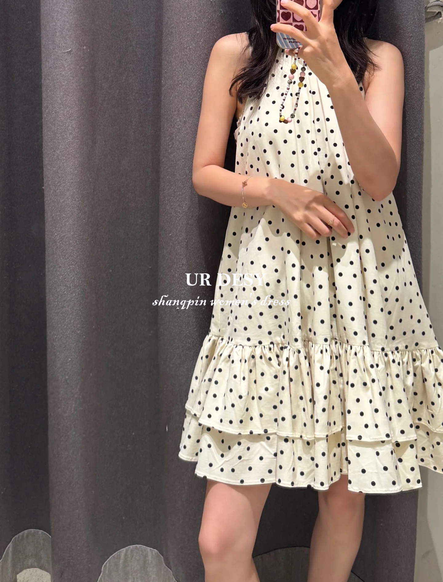 UR DESY2025夏季新款女裝法式簡約波點飄帶無袖連衣裙DWG750200