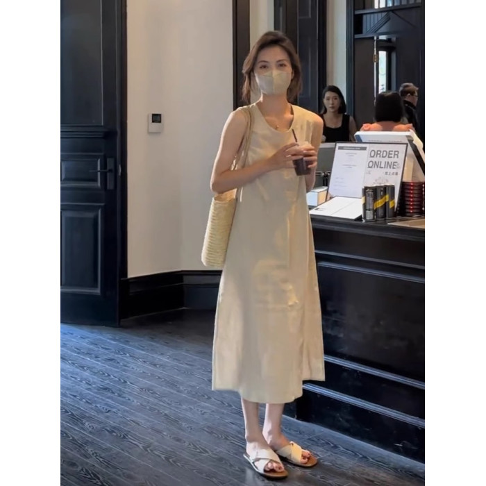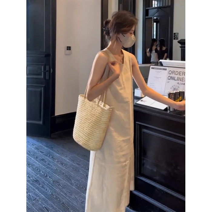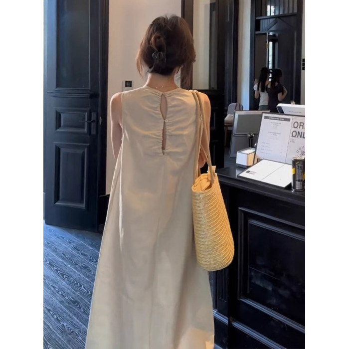 歐洲站2025新款法式高級感無袖背心長裙子白色小衆設計連衣裙女夏