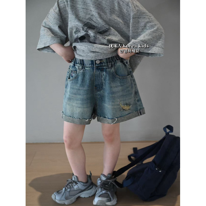 女童牛仔短褲夏季薄款2025新款夏裝女孩柔軟洋氣休閒刺綉兒童褲子