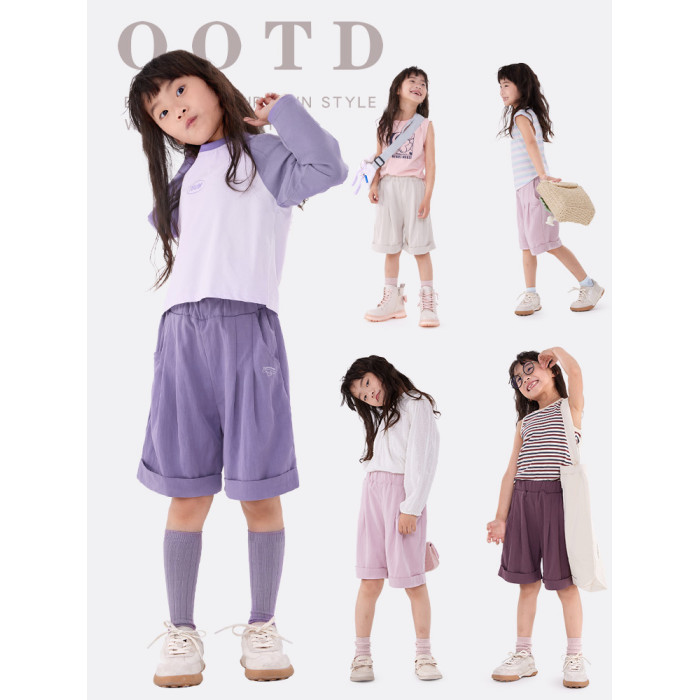玉桂狗女童短褲夏季薄兒童褲子25新女孩五分褲大童外穿休閒運動褲