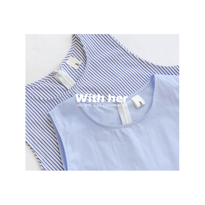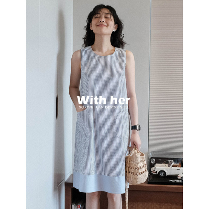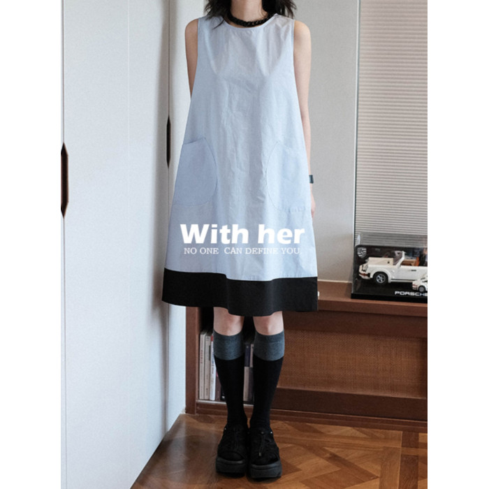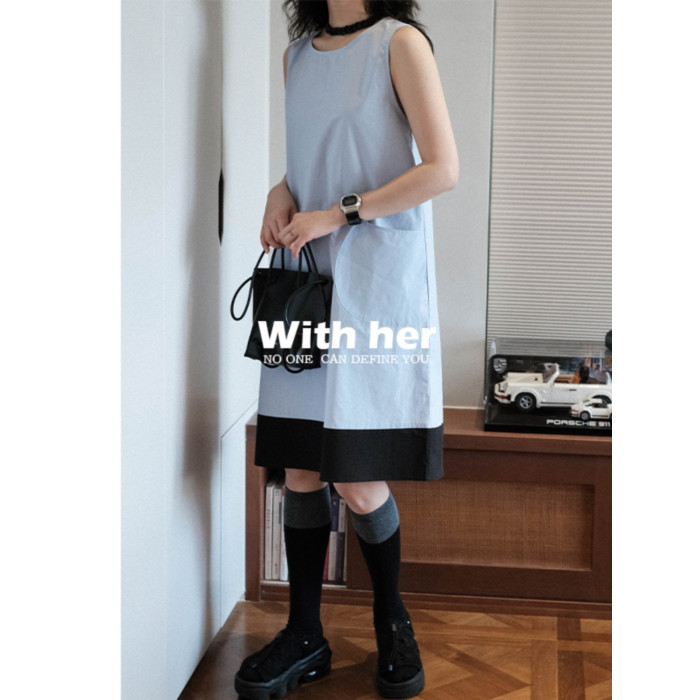 與她原創小衆設計 A字襯衫拼接撞色無袖短款學生母女親子連衣裙女