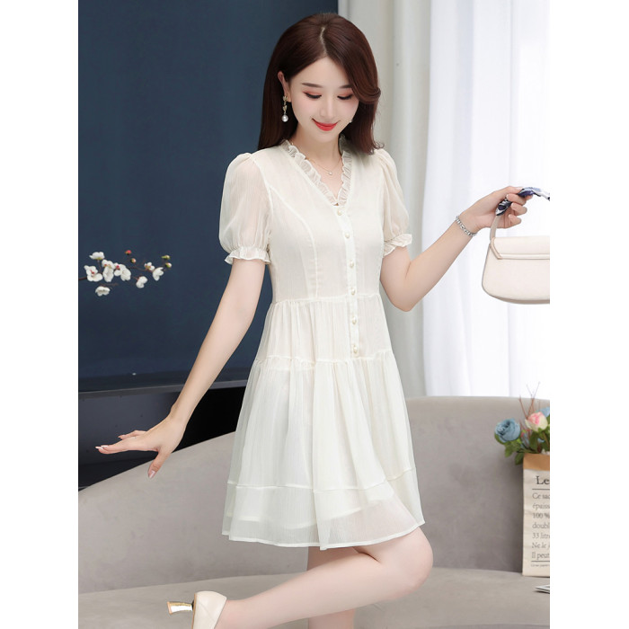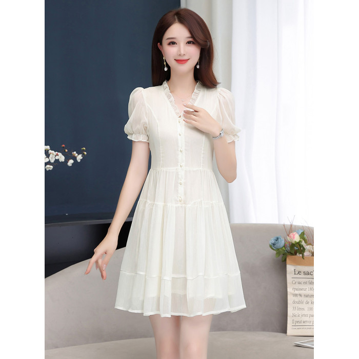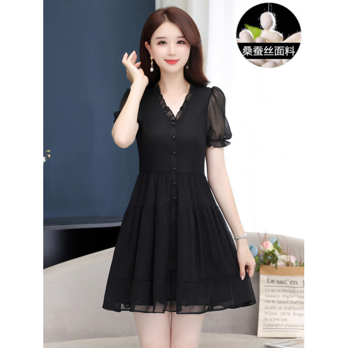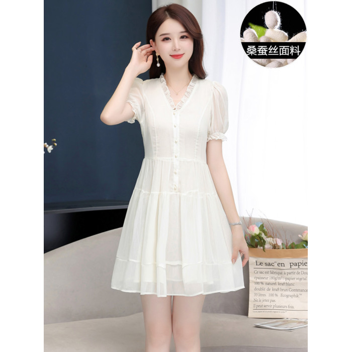 高級感白色桑蠶真絲連衣裙女夏季高級2025新款流行小個子媽媽裙子