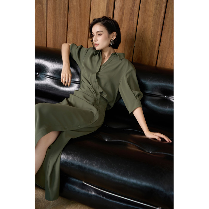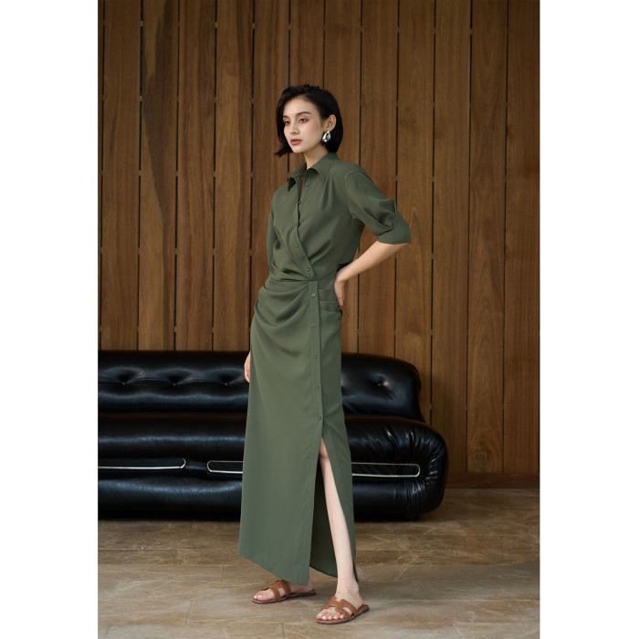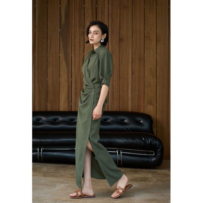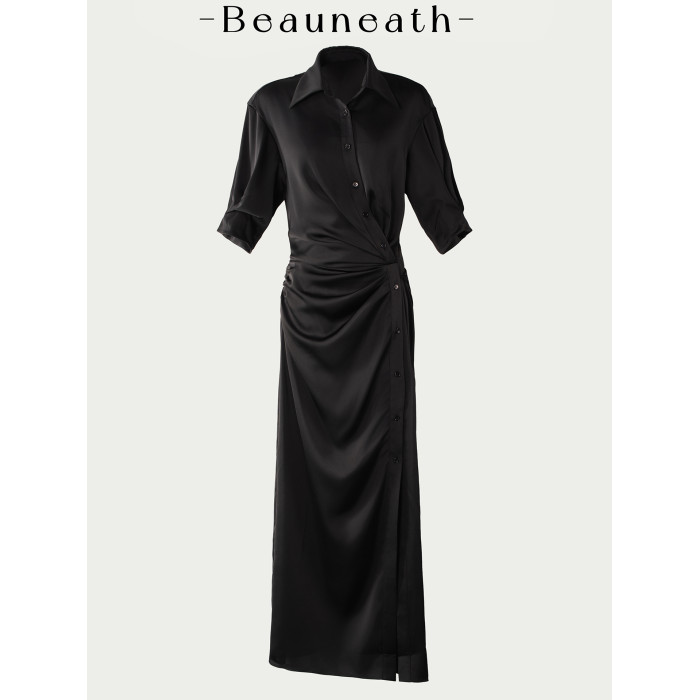 裱裡【腔調】法式短袖連衣裙夏女2025新款收腰顯瘦氣質減齡長裙