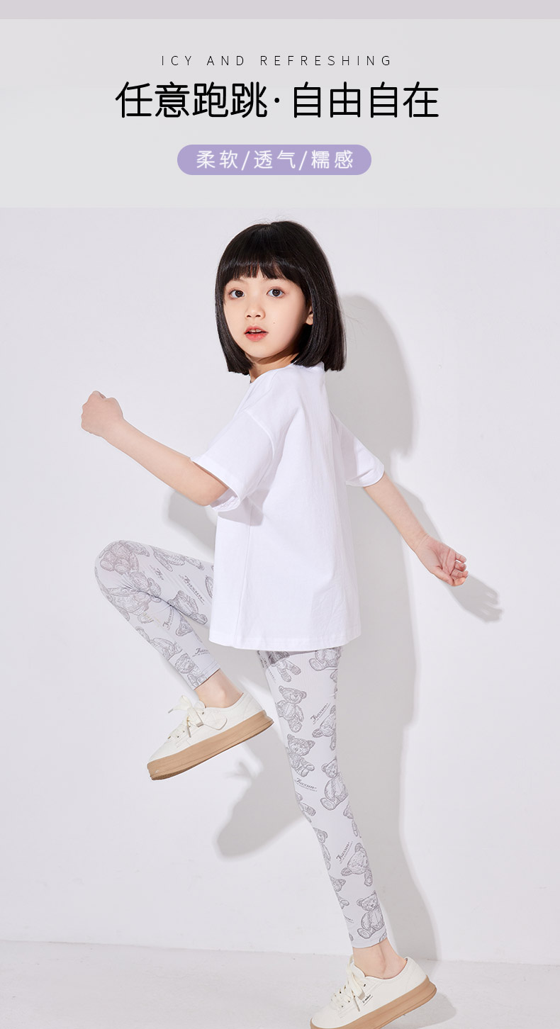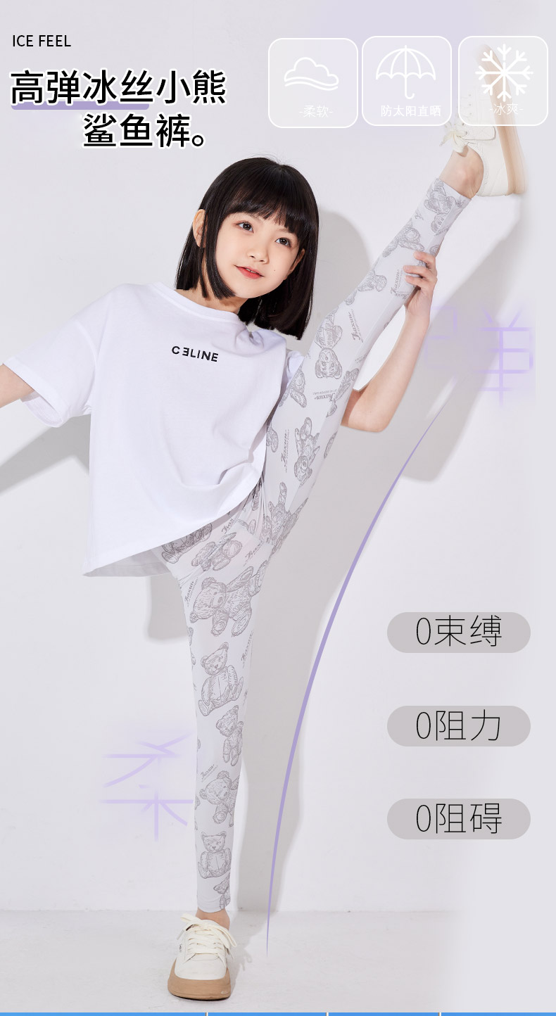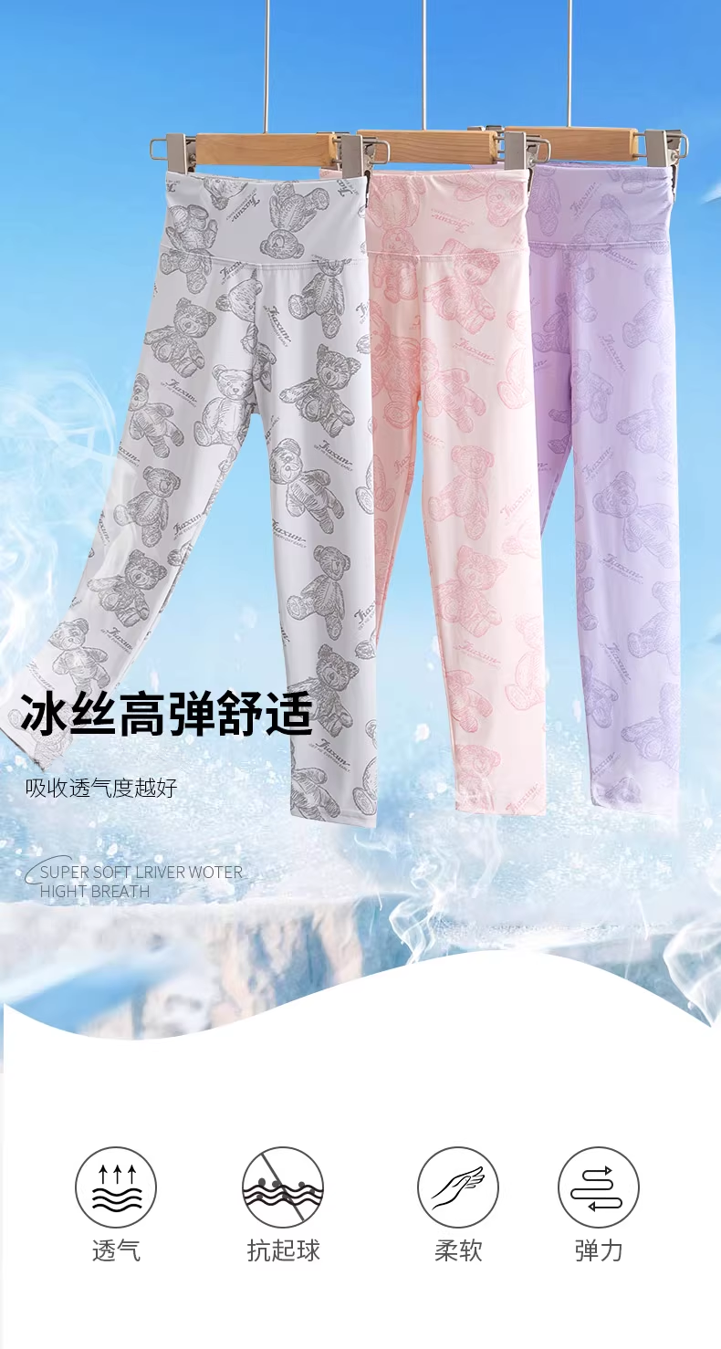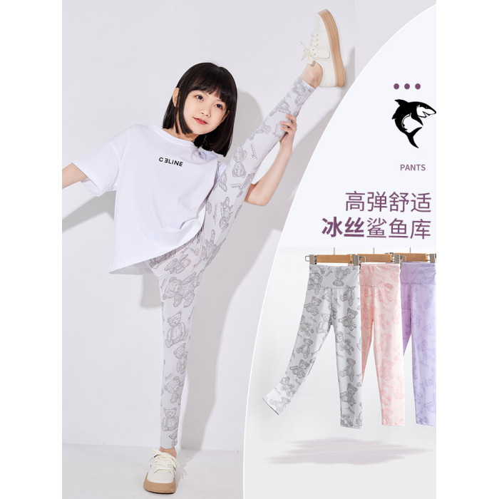 女童打底褲夏季薄款兒童鯊魚褲冰絲褲子外穿夏天瑜伽褲大童芭比褲