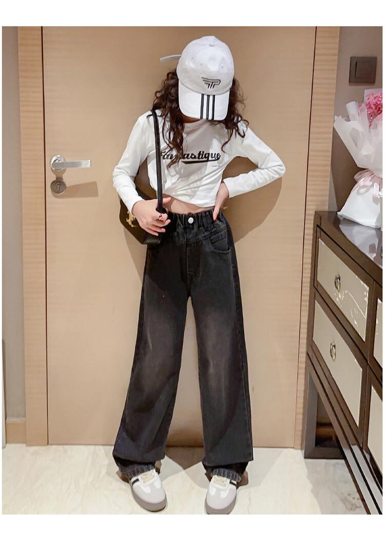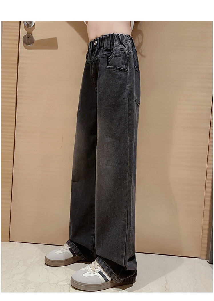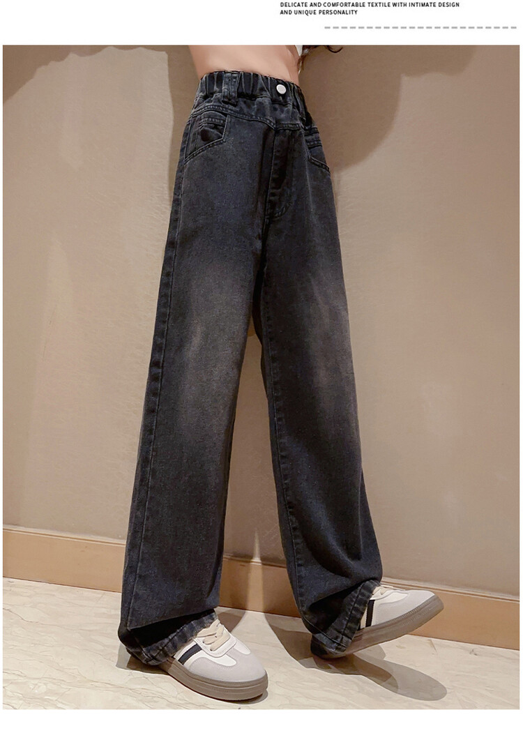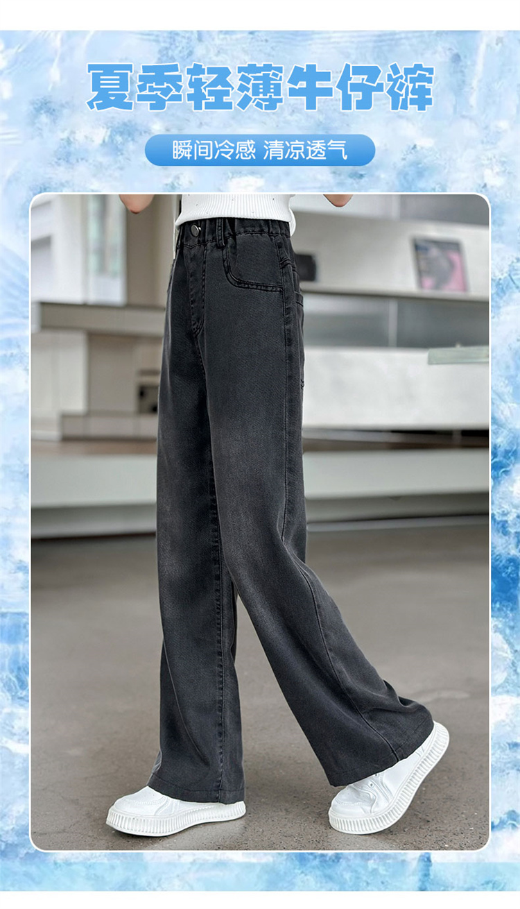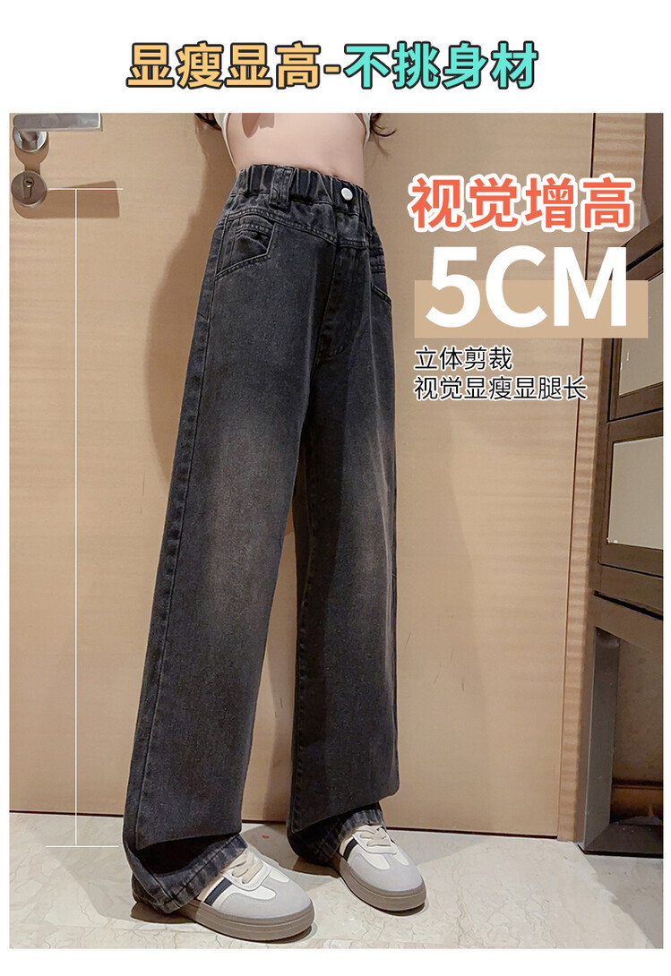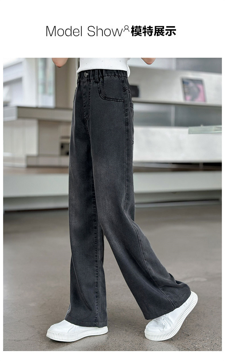 女童黑色直筒褲牛仔褲夏季新款兒童休閒褲女大童女孩夏裝洋氣褲子