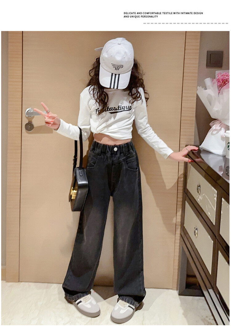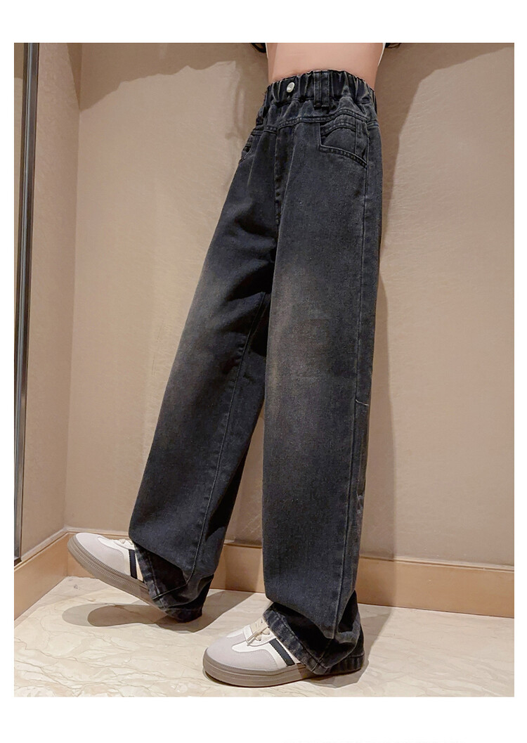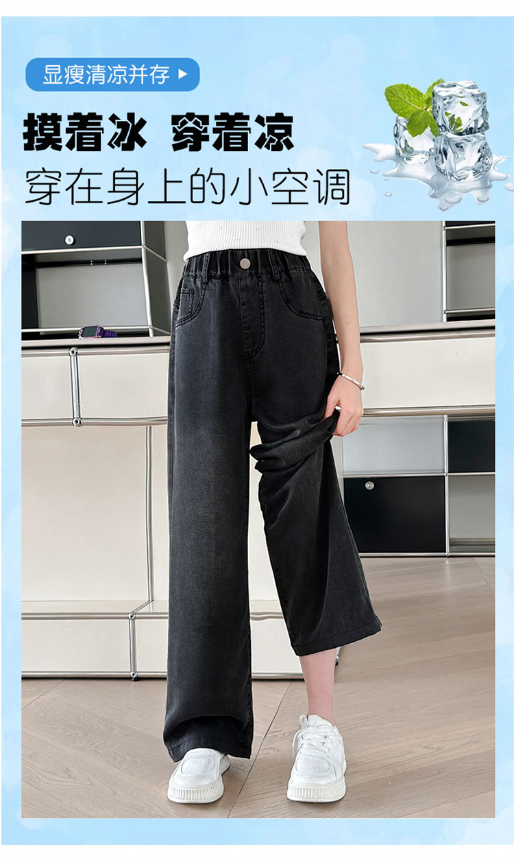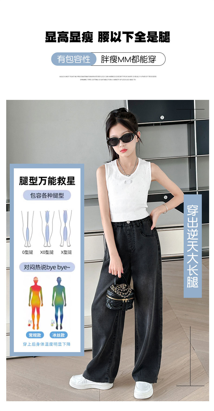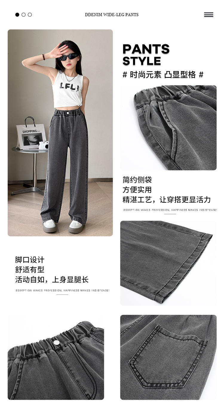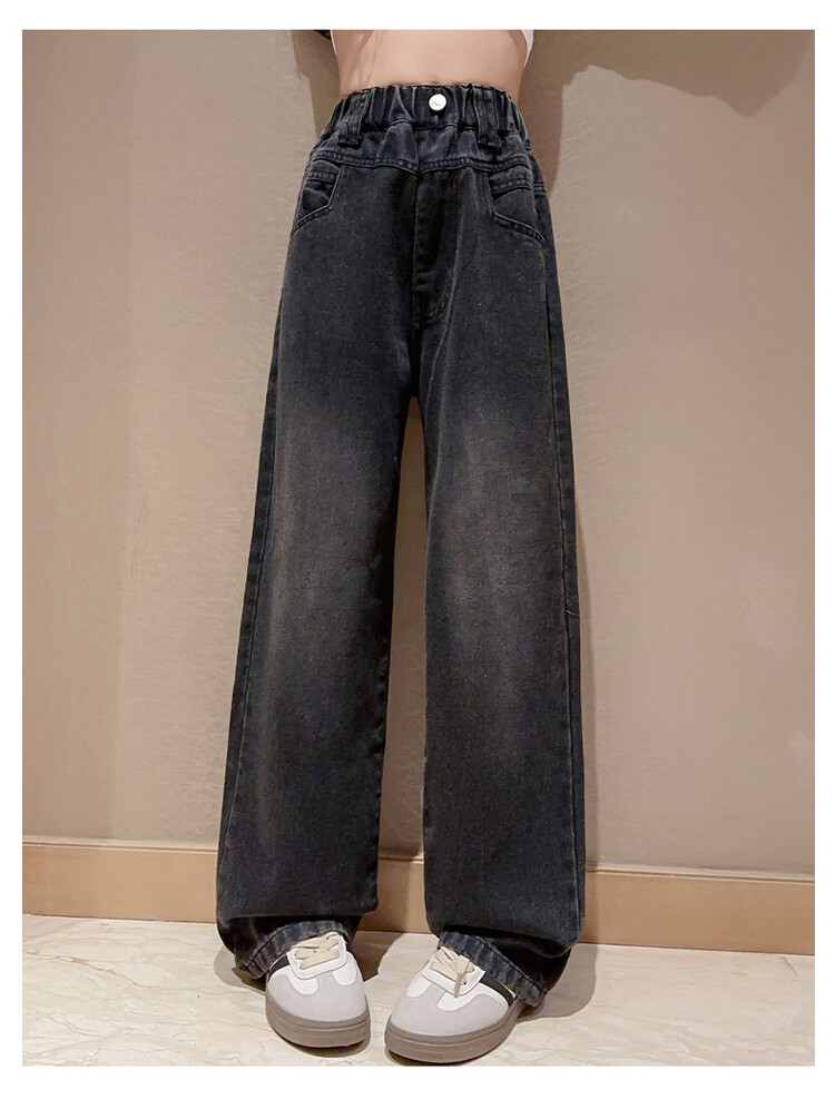 女童黑色直筒褲牛仔褲夏季新款兒童休閒褲女大童女孩夏裝洋氣褲子