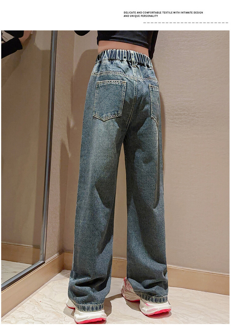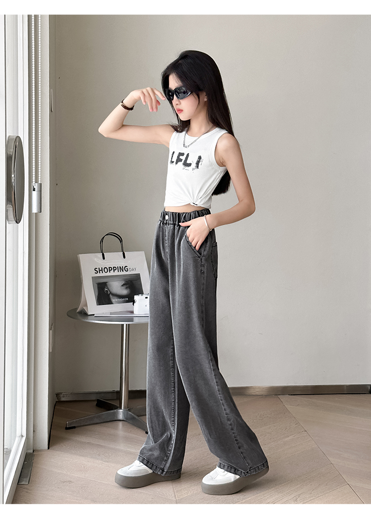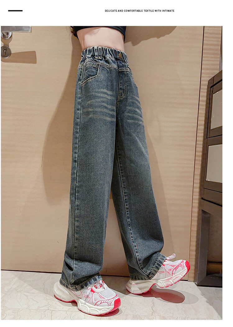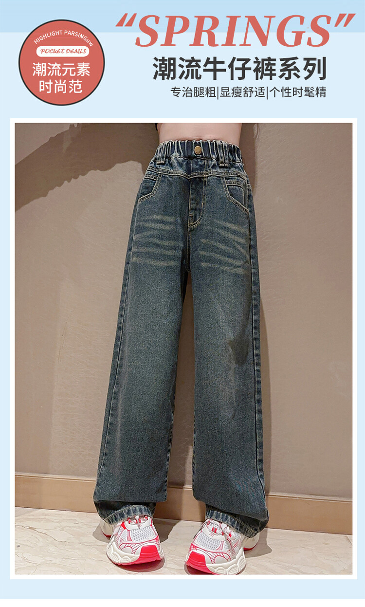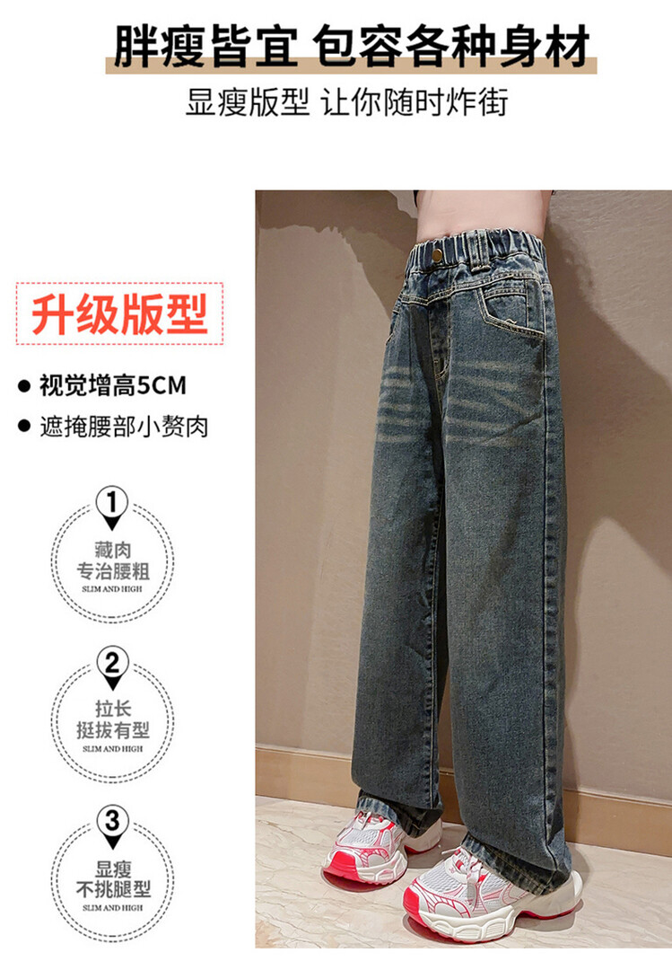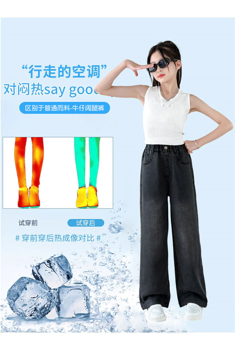 女童黑色直筒褲牛仔褲夏季新款兒童休閒褲女大童女孩夏裝洋氣褲子