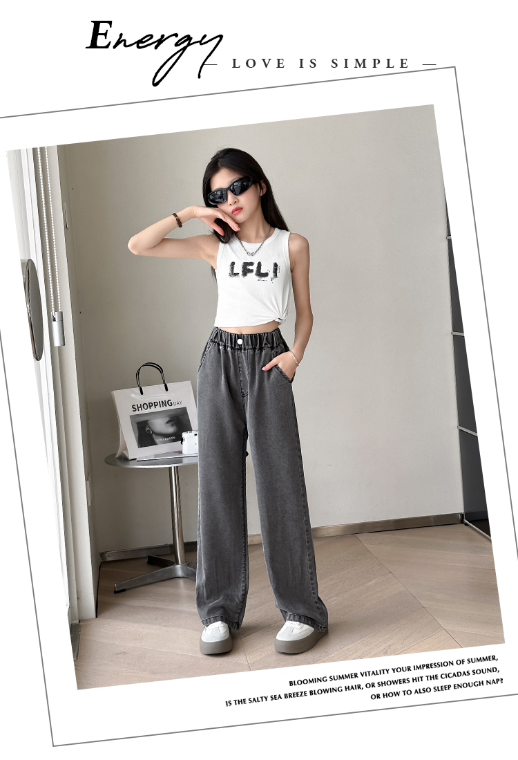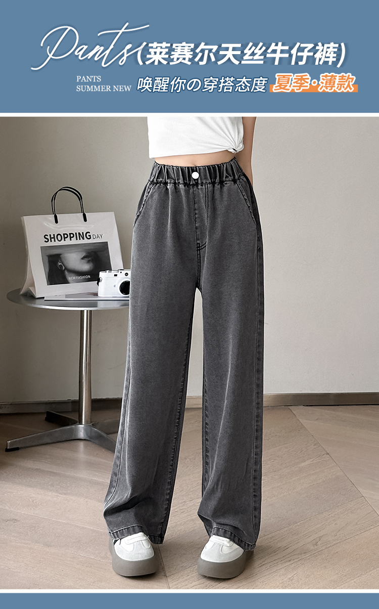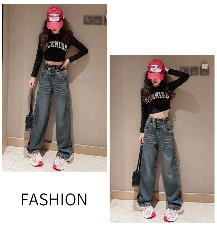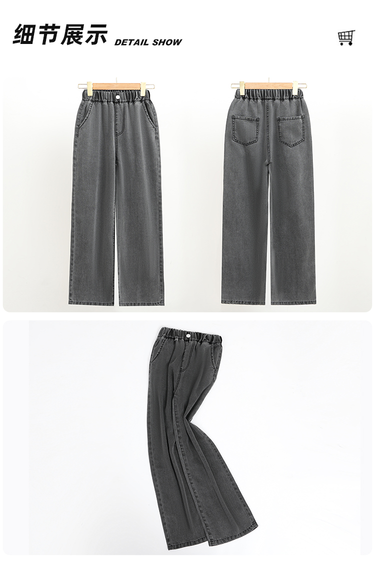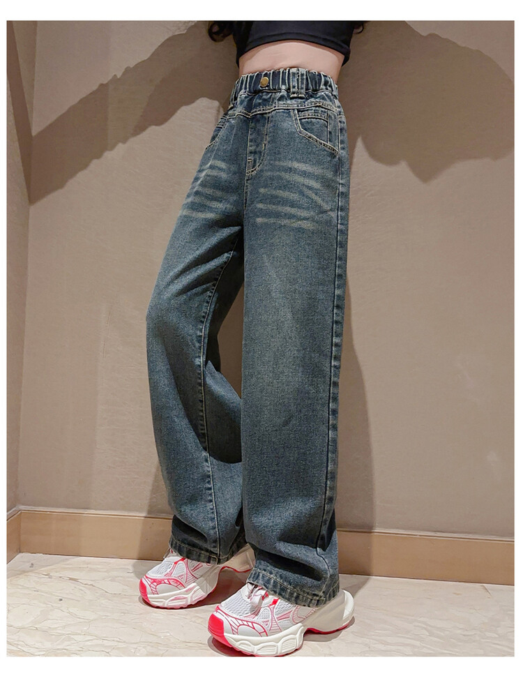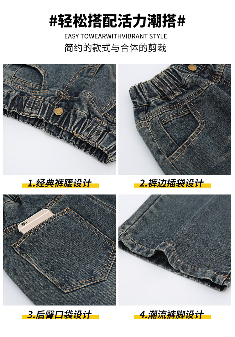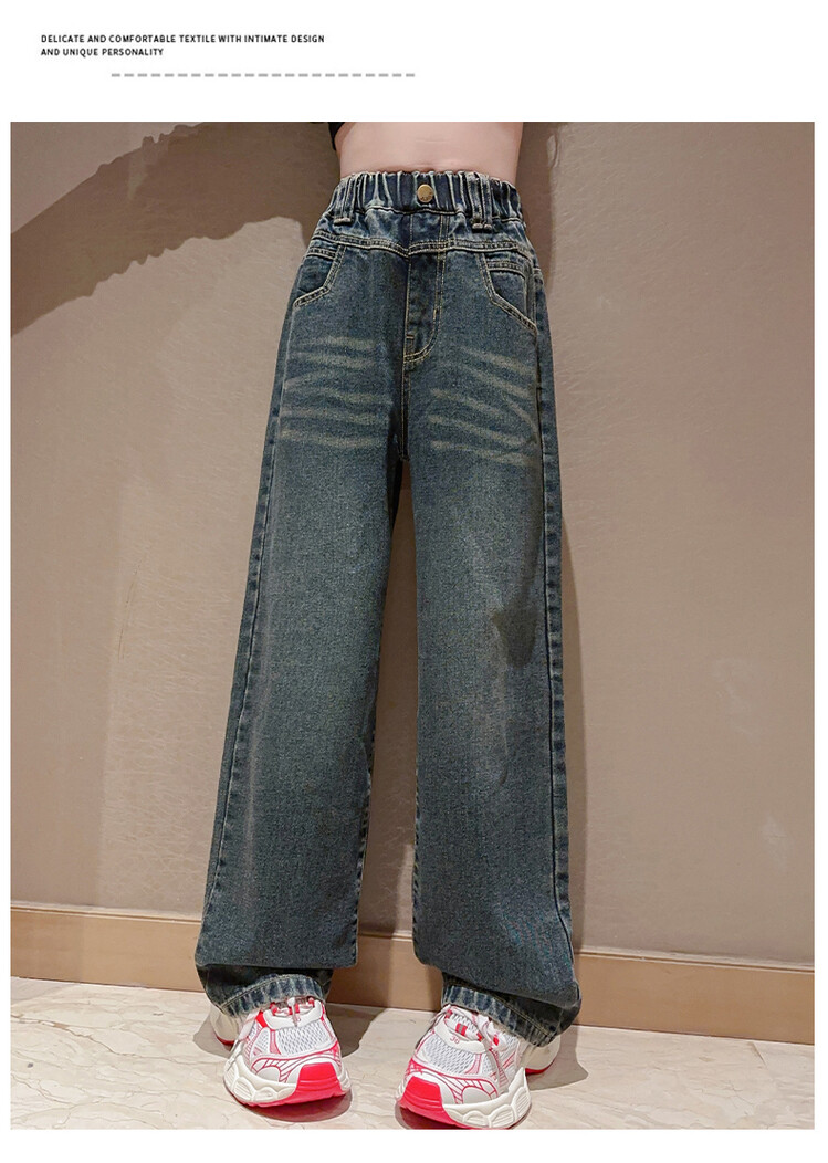 女童黑色直筒褲牛仔褲夏季新款兒童休閒褲女大童女孩夏裝洋氣褲子