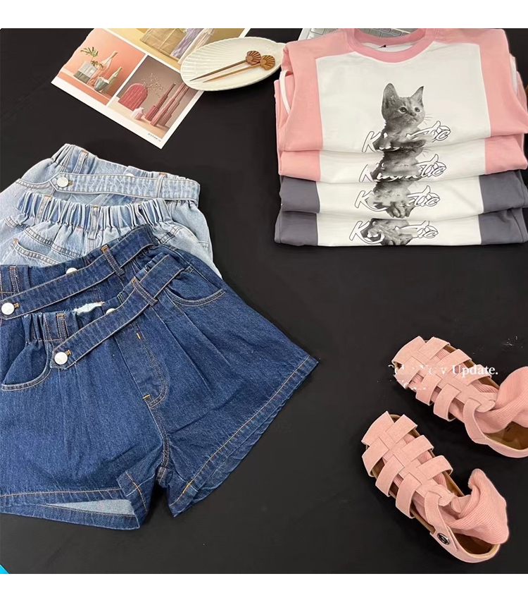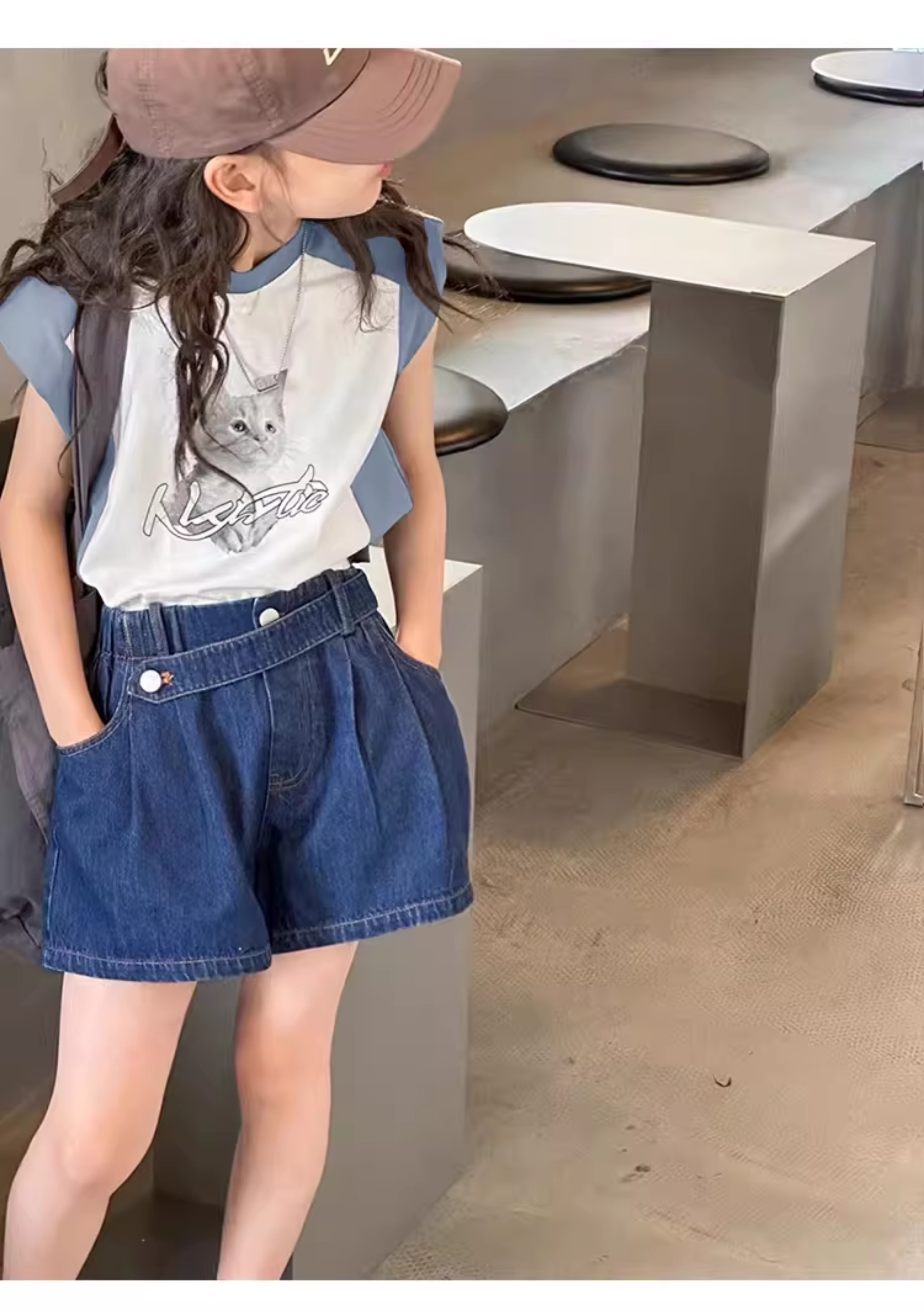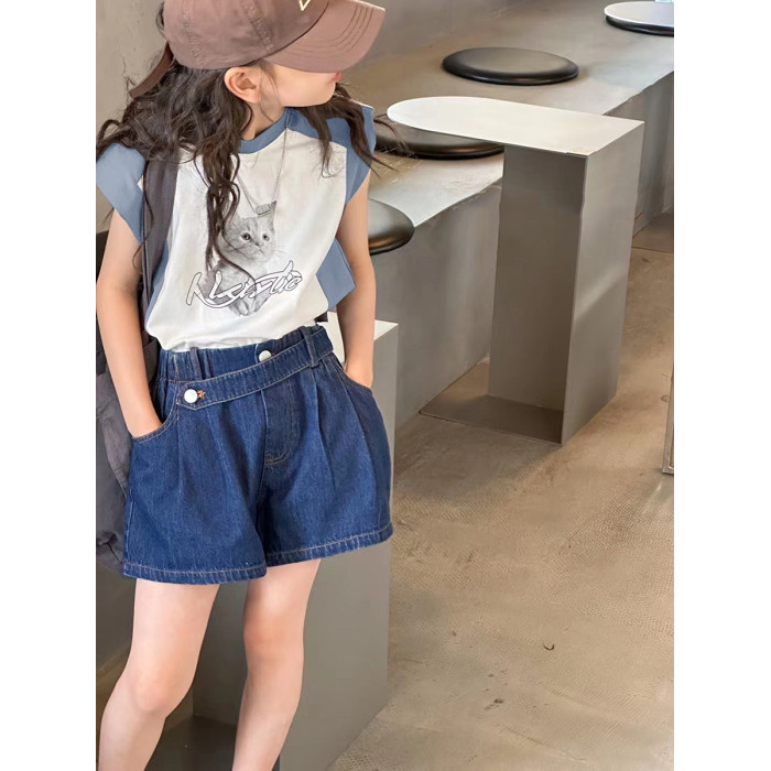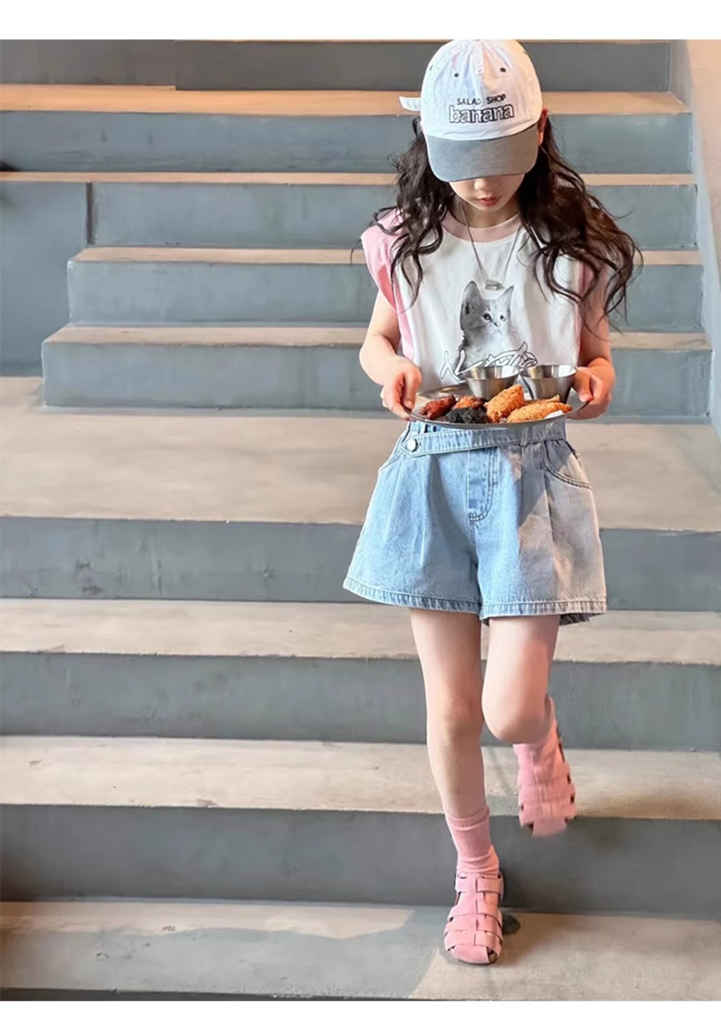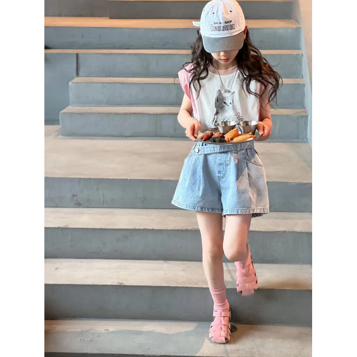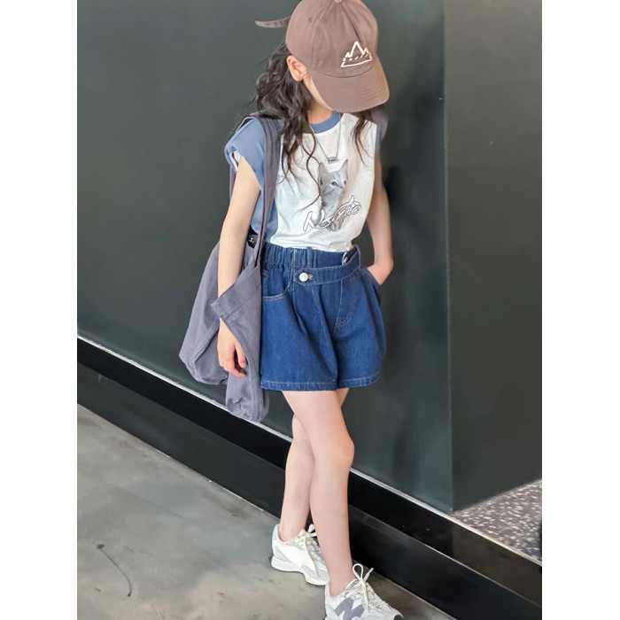 波拉韓國童裝女童短褲2025夏裝兒童牛仔熱褲中大童休閒褲外穿褲子