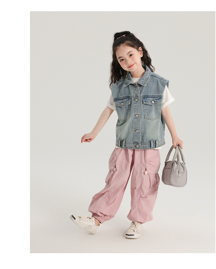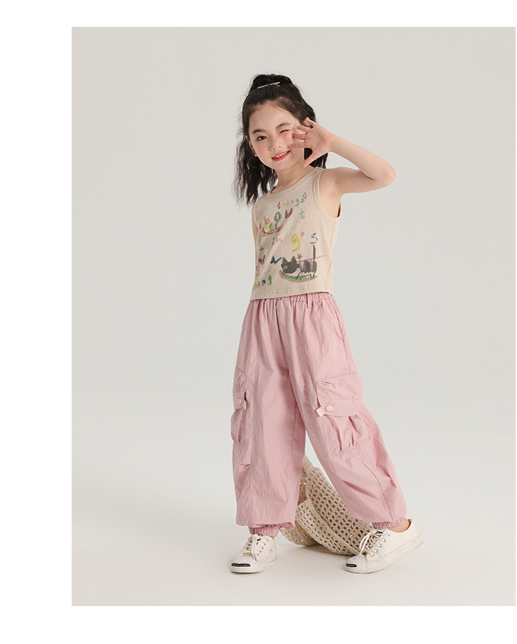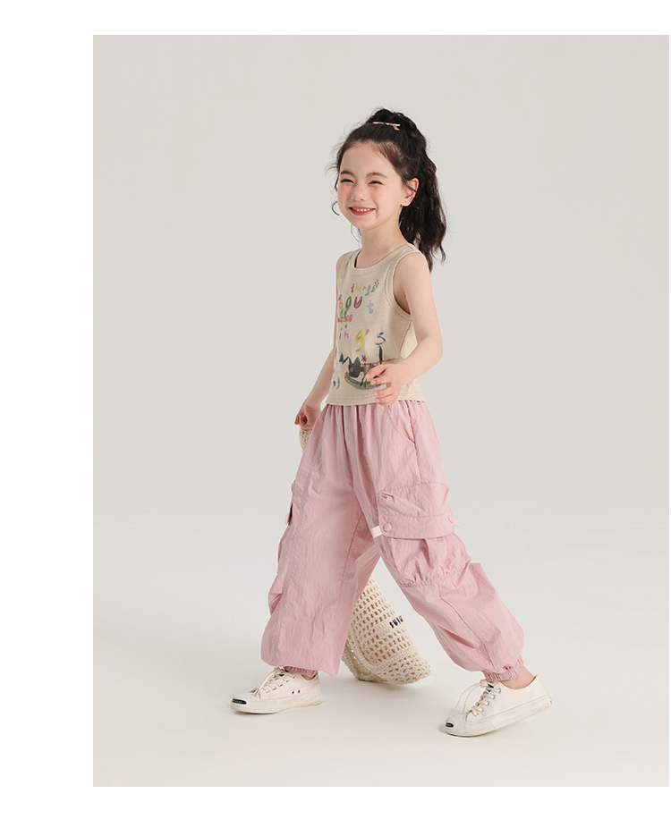 沫沫家夏裝兒童薄款工裝褲2025夏季新款女童洋氣褲子休閒防蚊褲