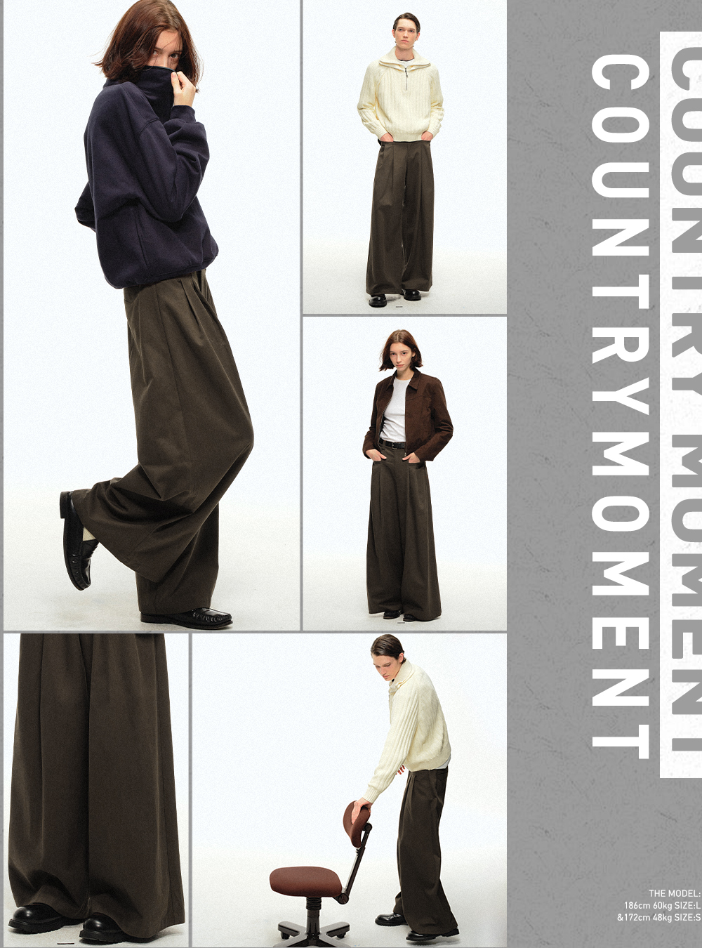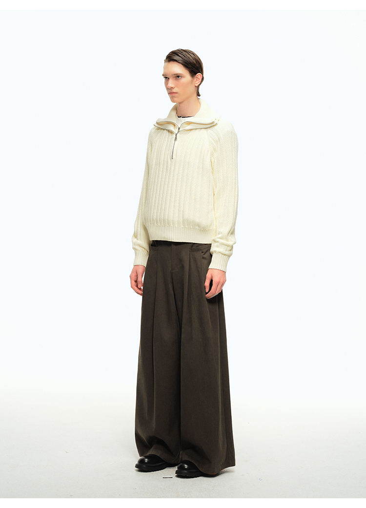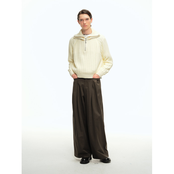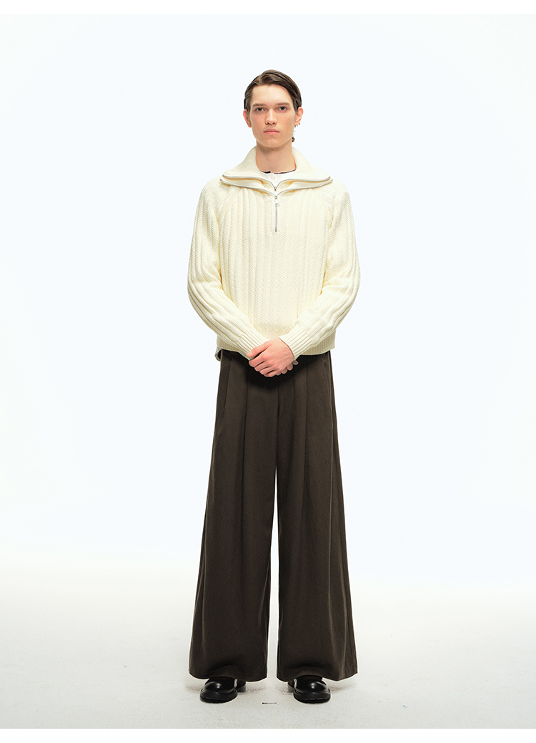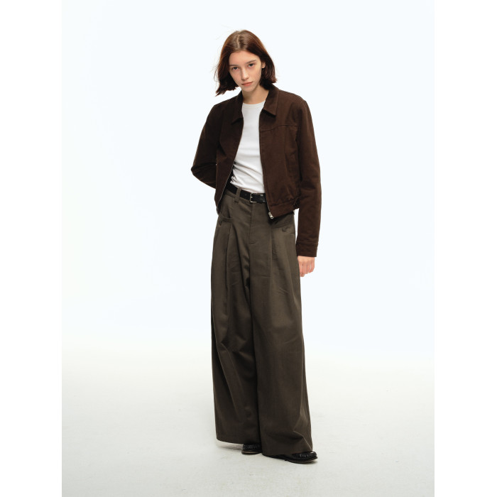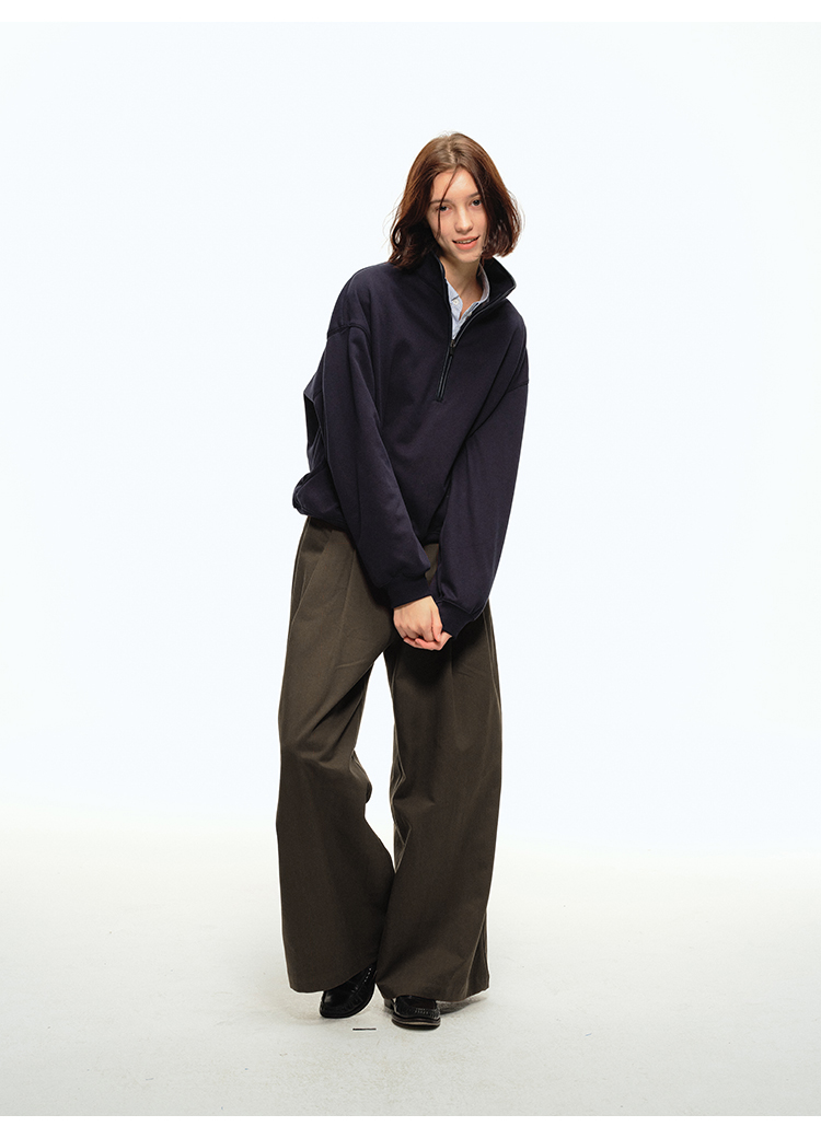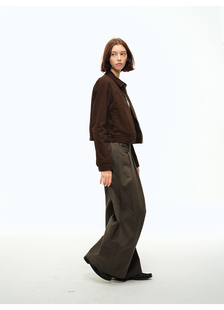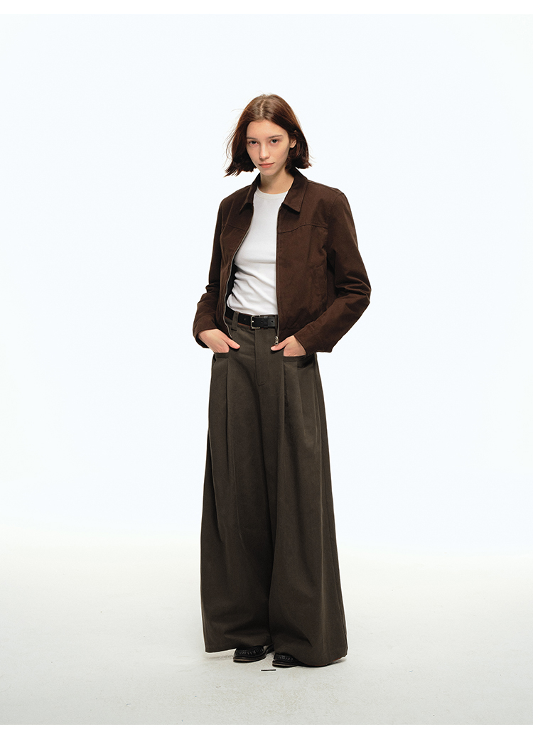 CountryMoment 美式復古壓褶設計感廓形濶腿褲男女垂感拖地休閒褲