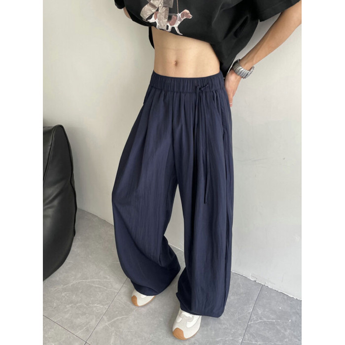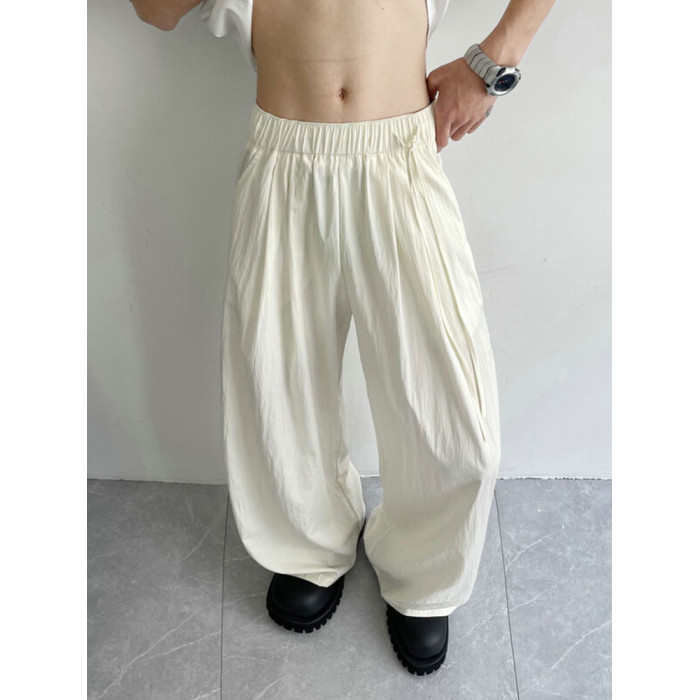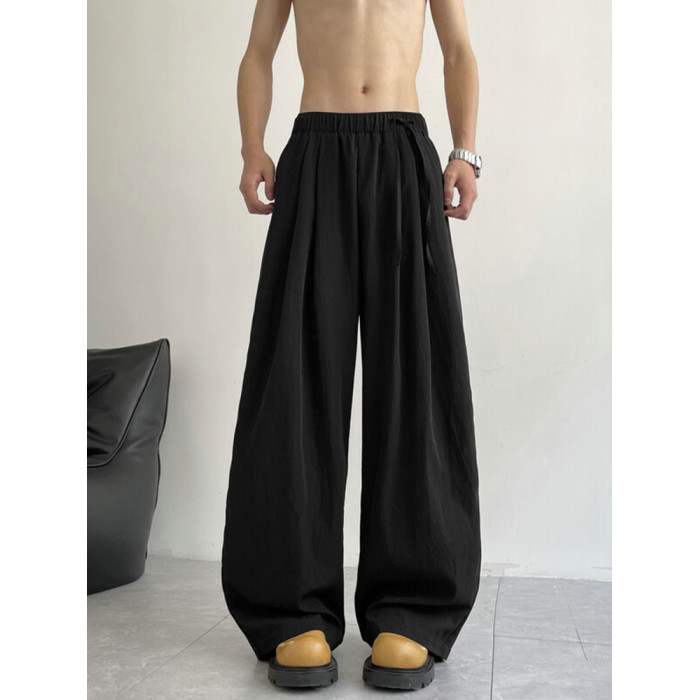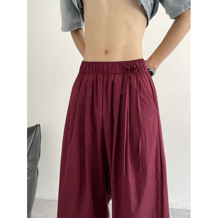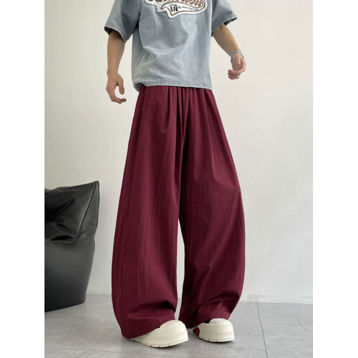 多巴胺酒紅色山本褲男夏季薄款速乾冰絲褲子直筒濶腿彎刀休閒長褲