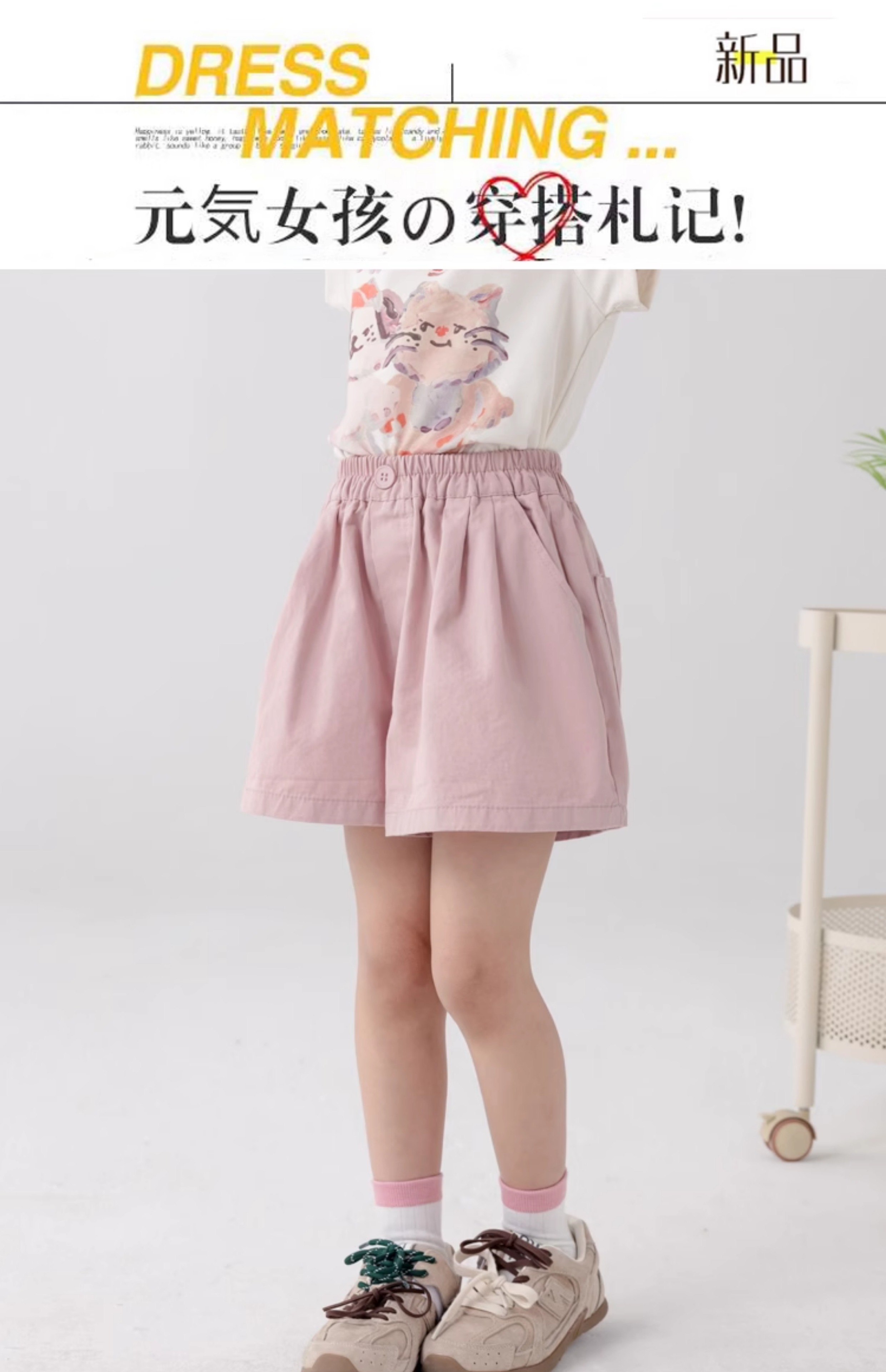 哈依魯2025夏季新款女童棉布短褲兒童中大童時尚百搭休閒褲熱褲