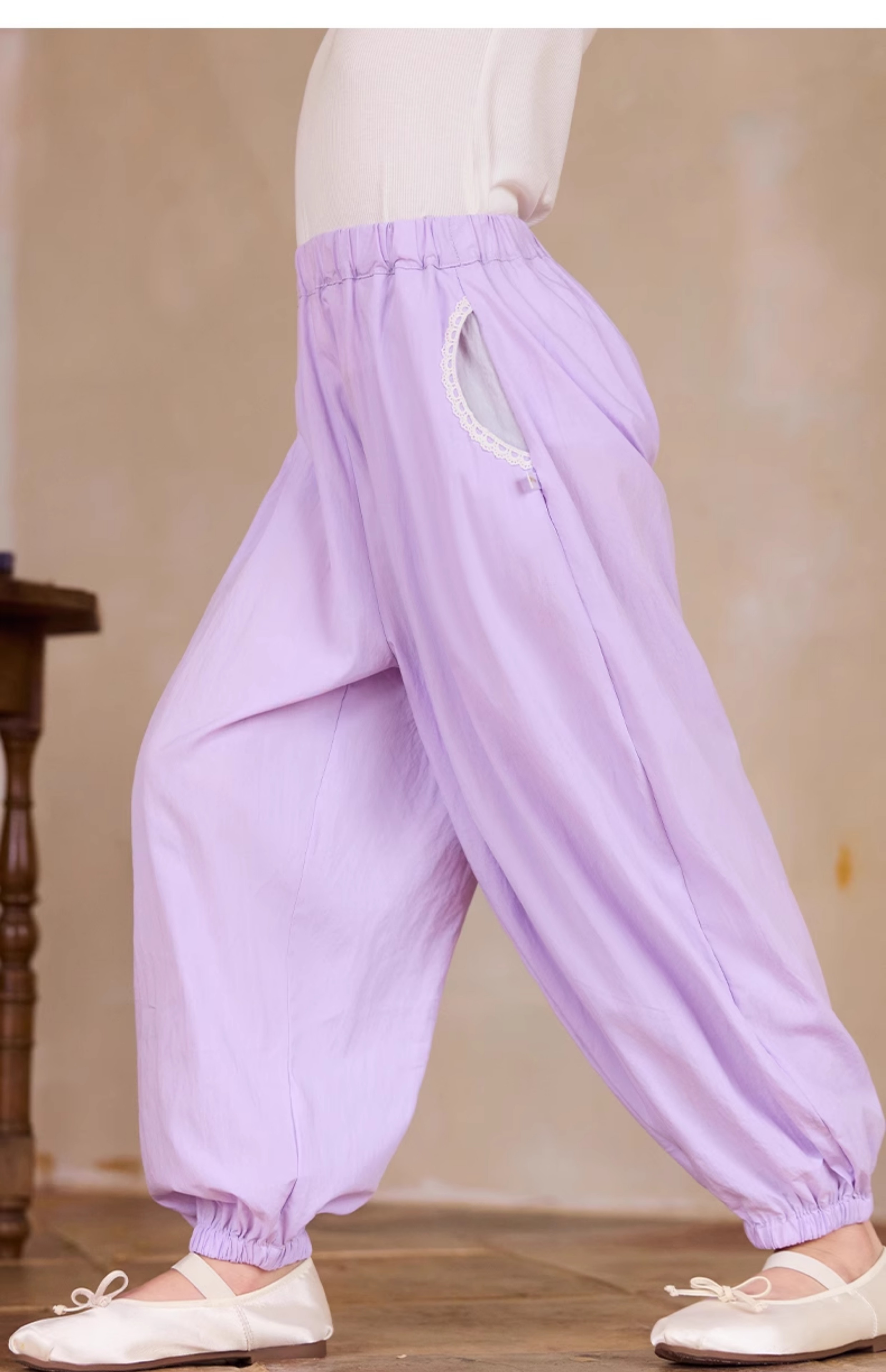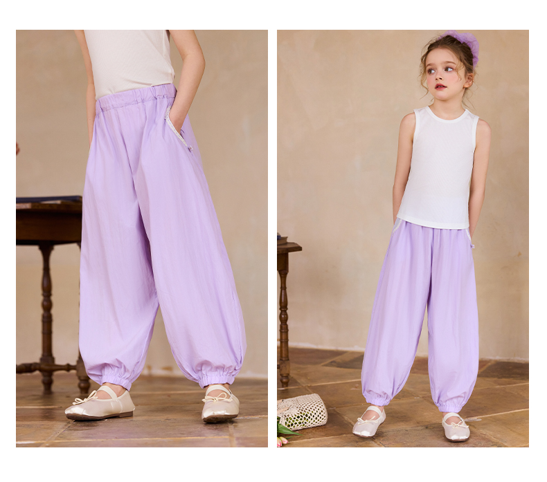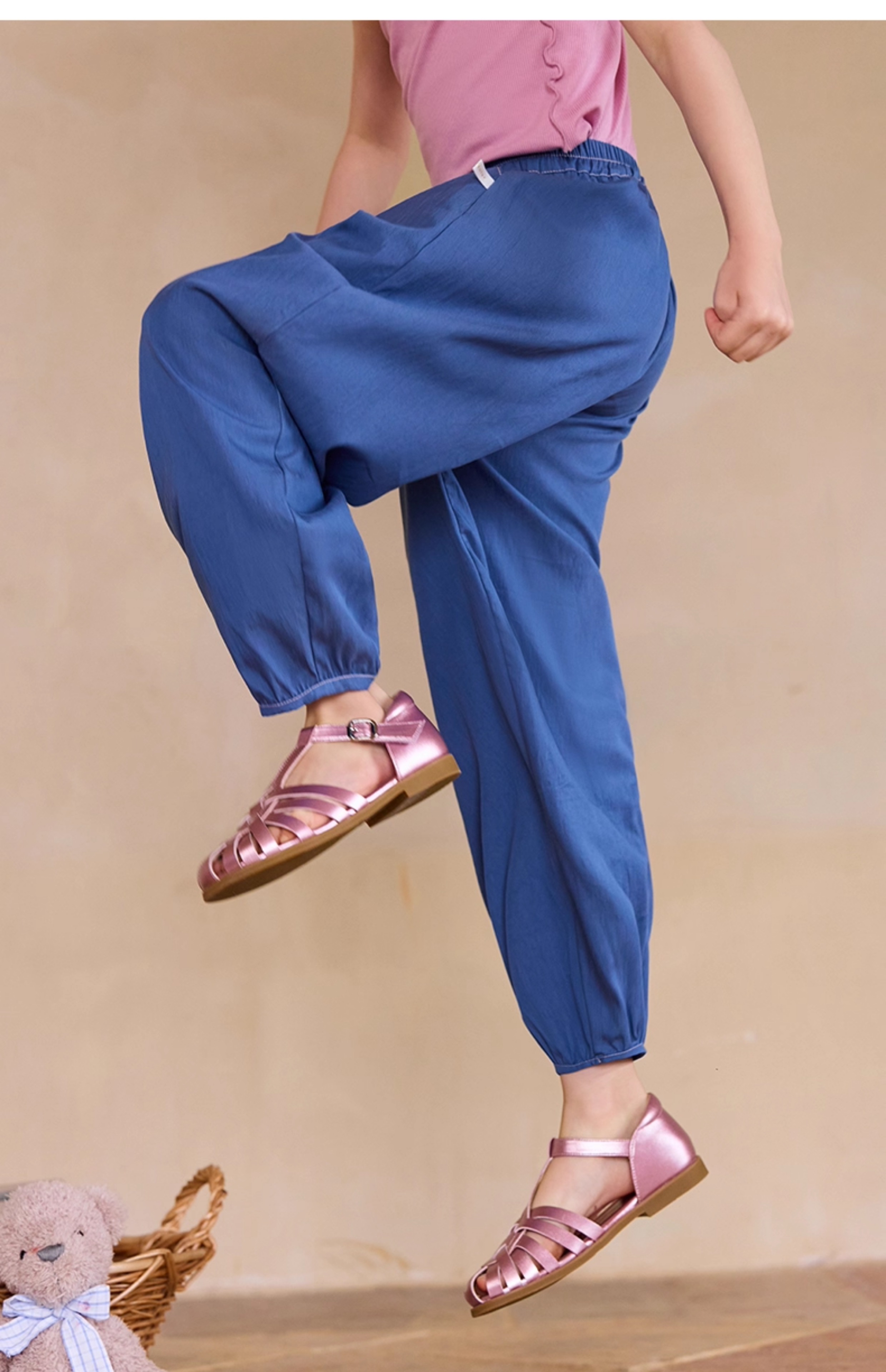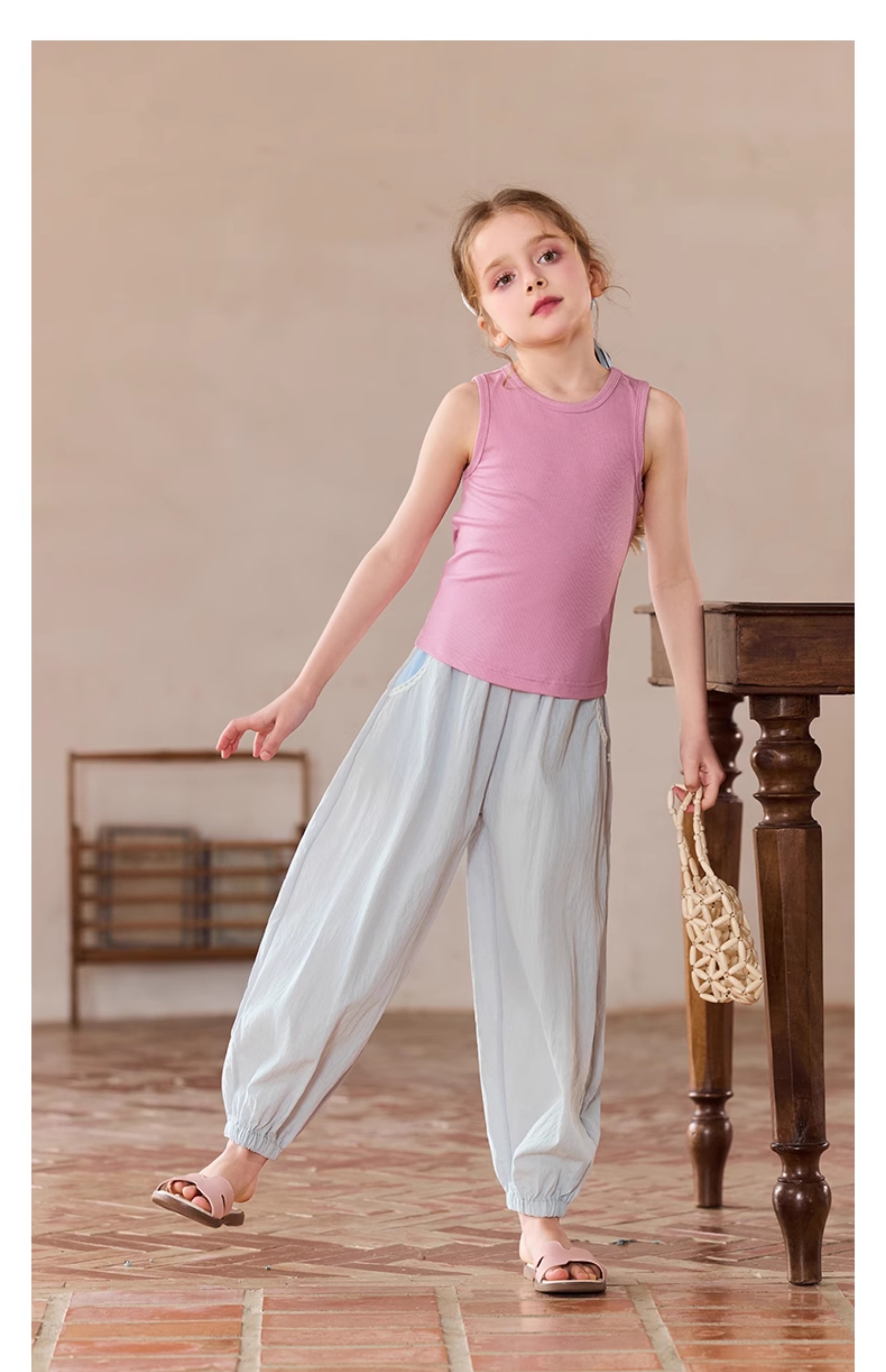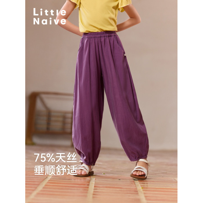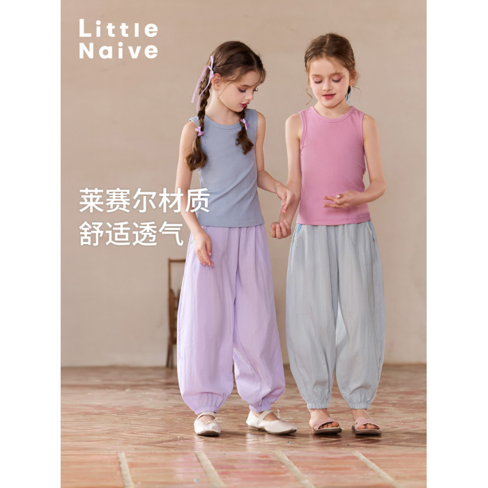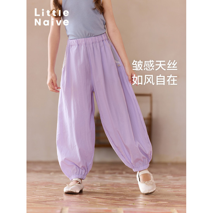Little Naive女童涼感休閒褲春夏新款撞色燈籠褲兒童運動束腳褲