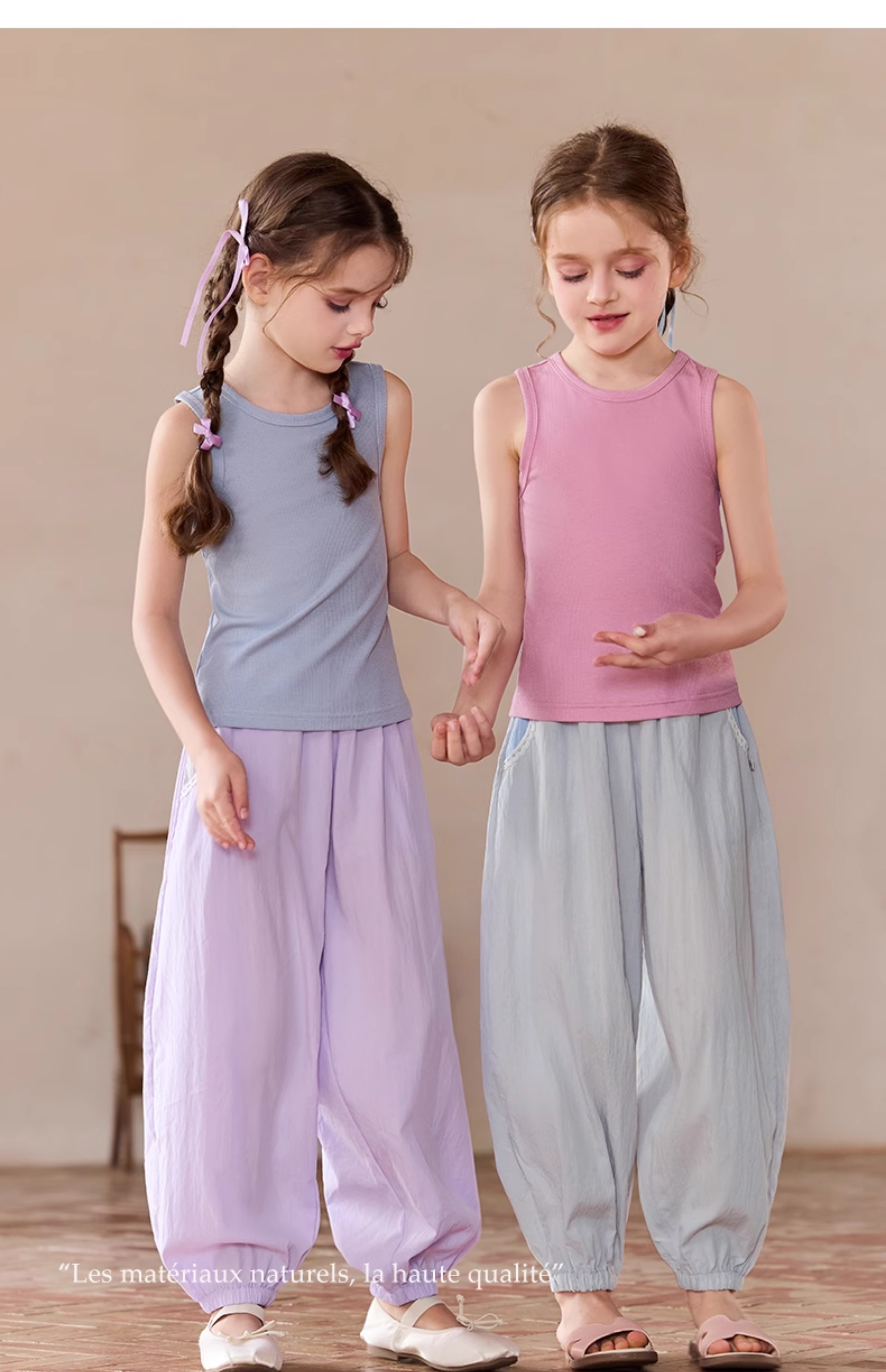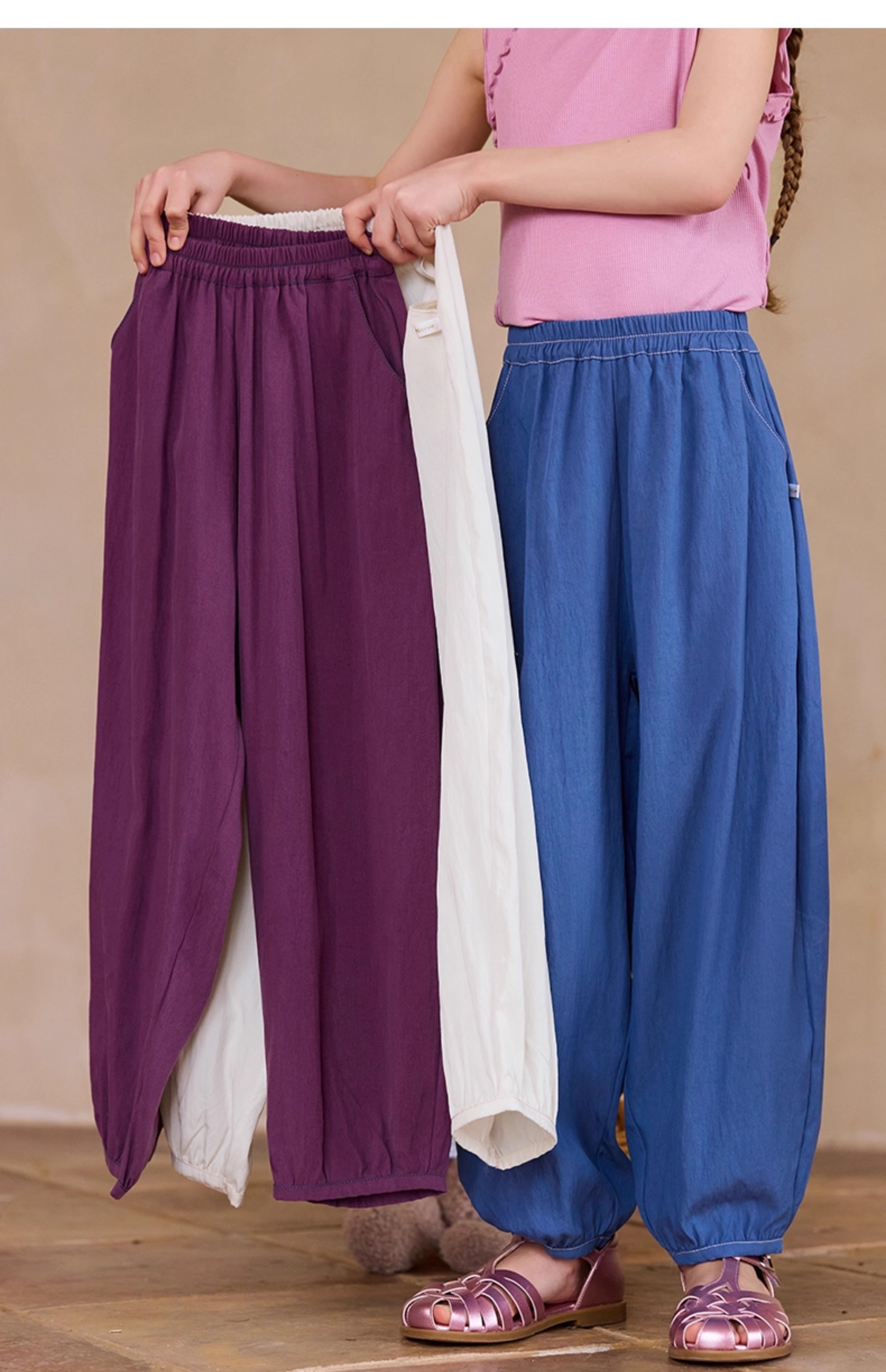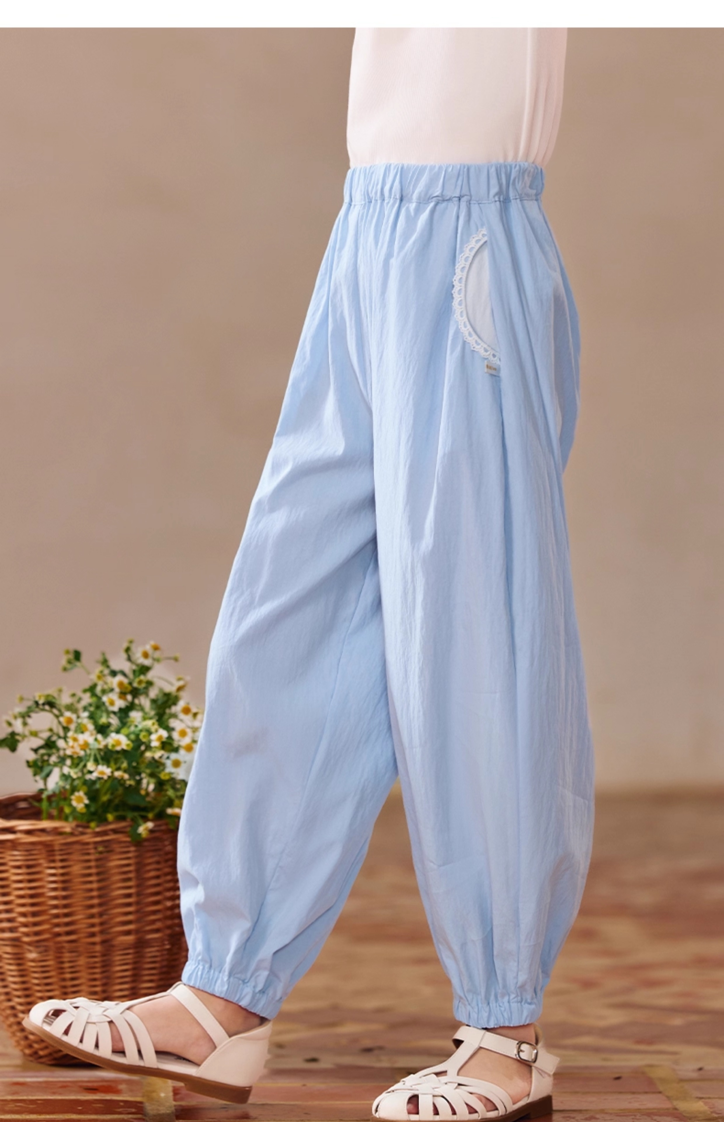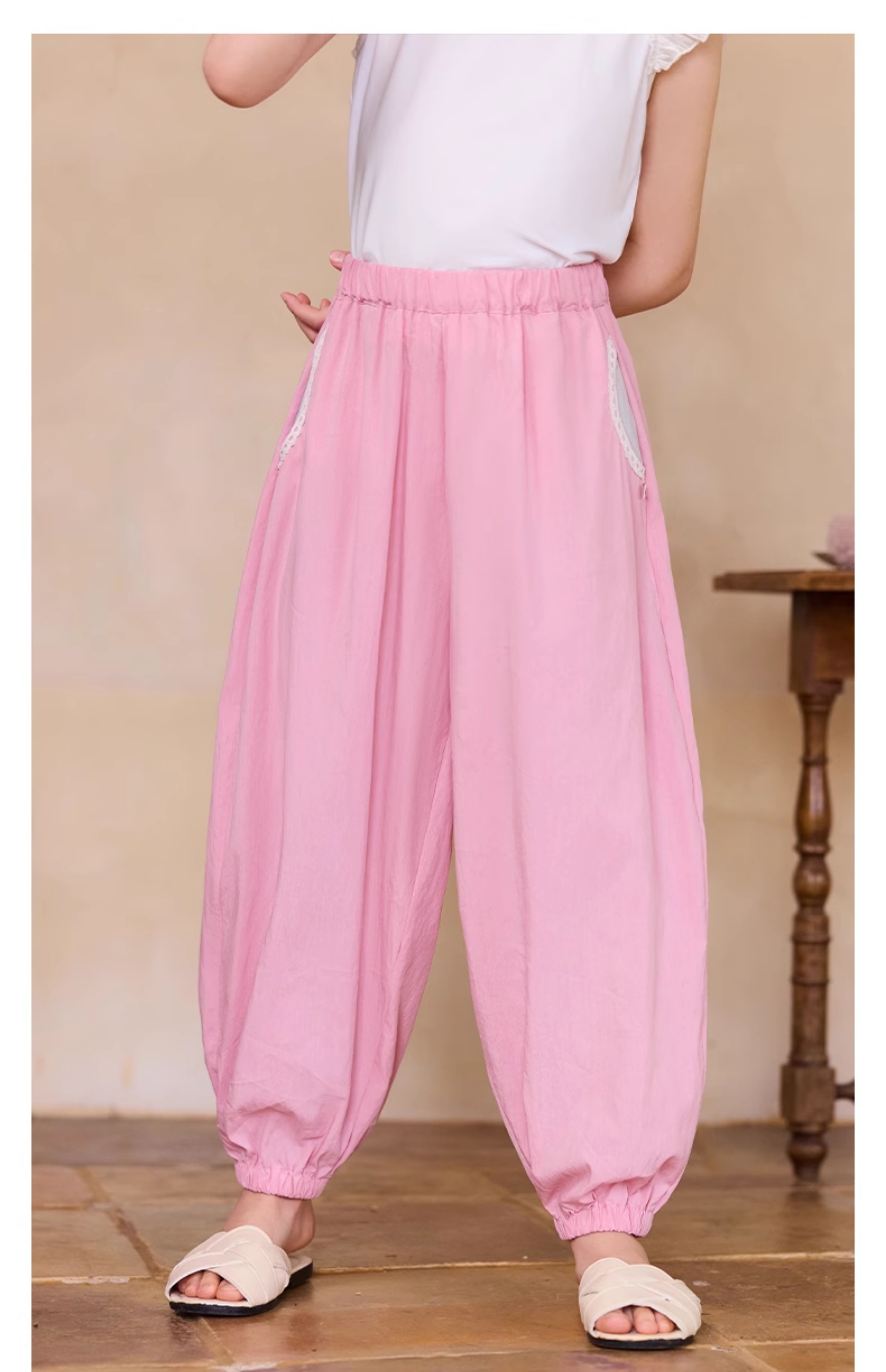 Little Naive女童涼感休閒褲春夏新款撞色燈籠褲兒童運動束腳褲