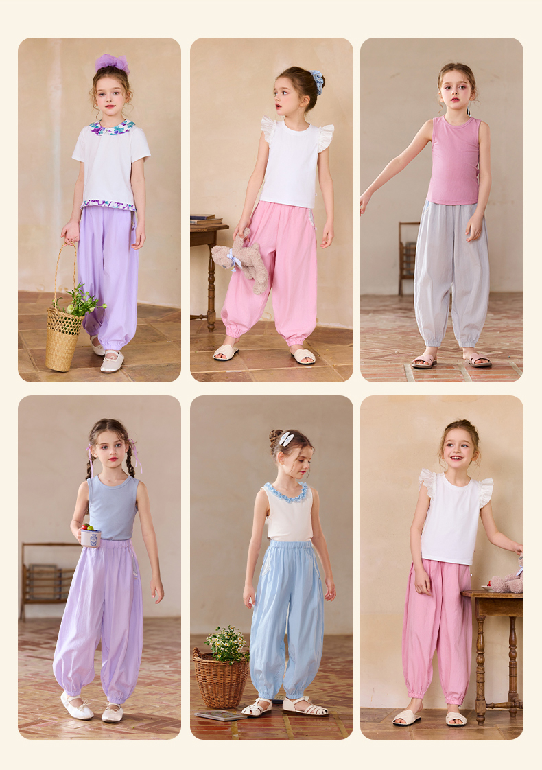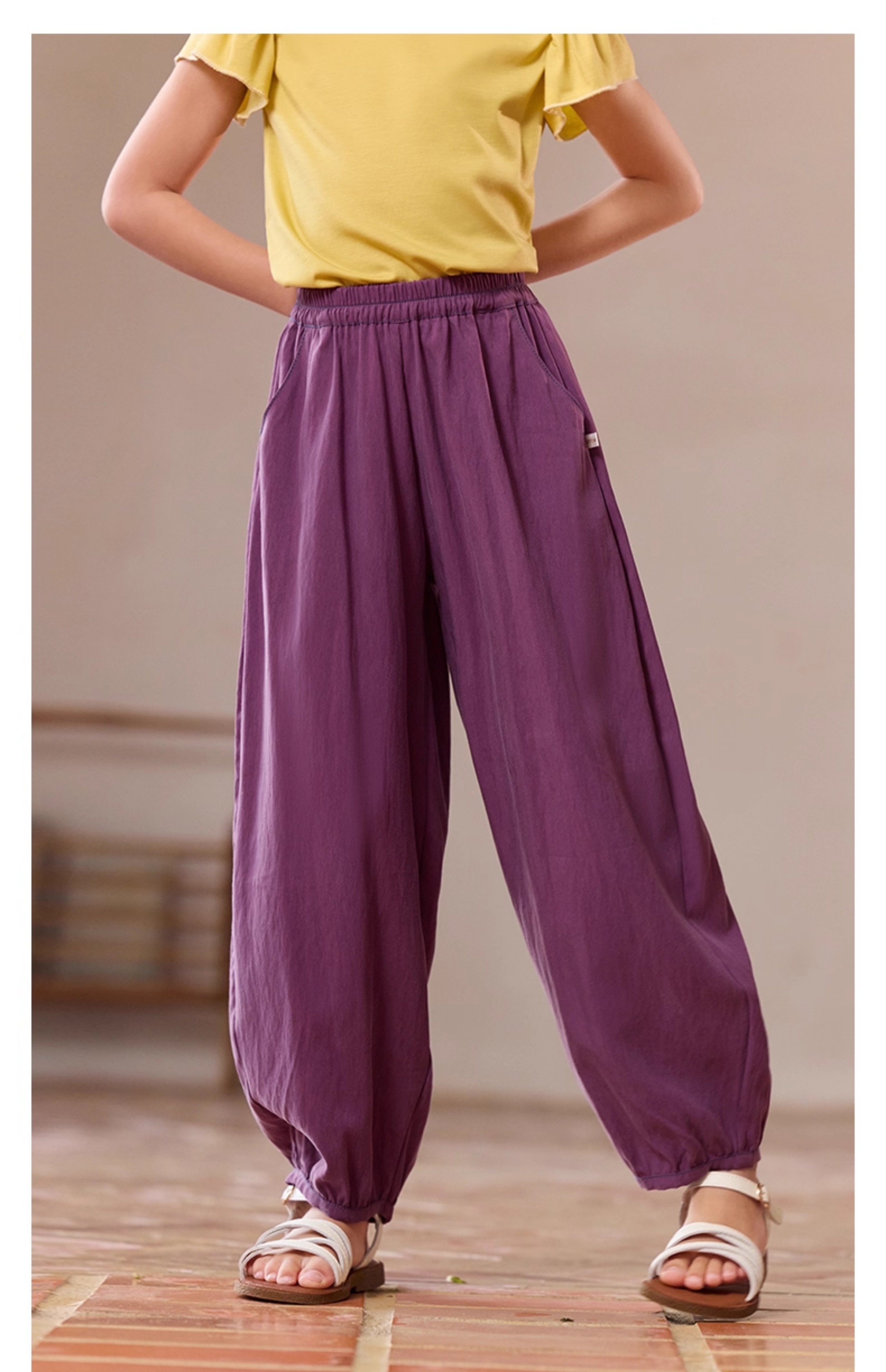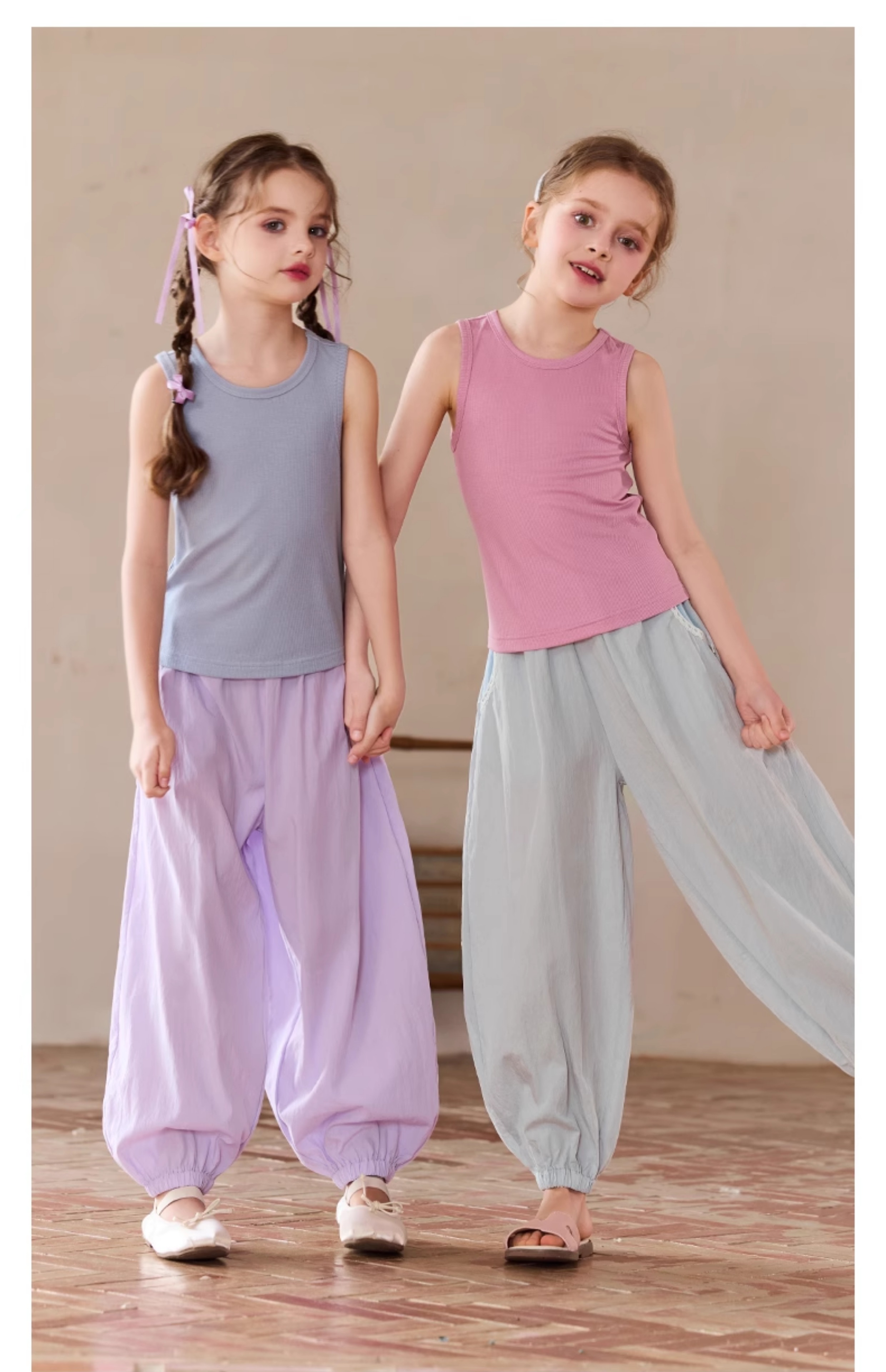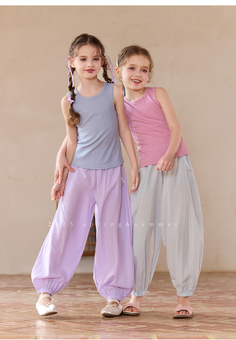 Little Naive女童涼感休閒褲春夏新款撞色燈籠褲兒童運動束腳褲