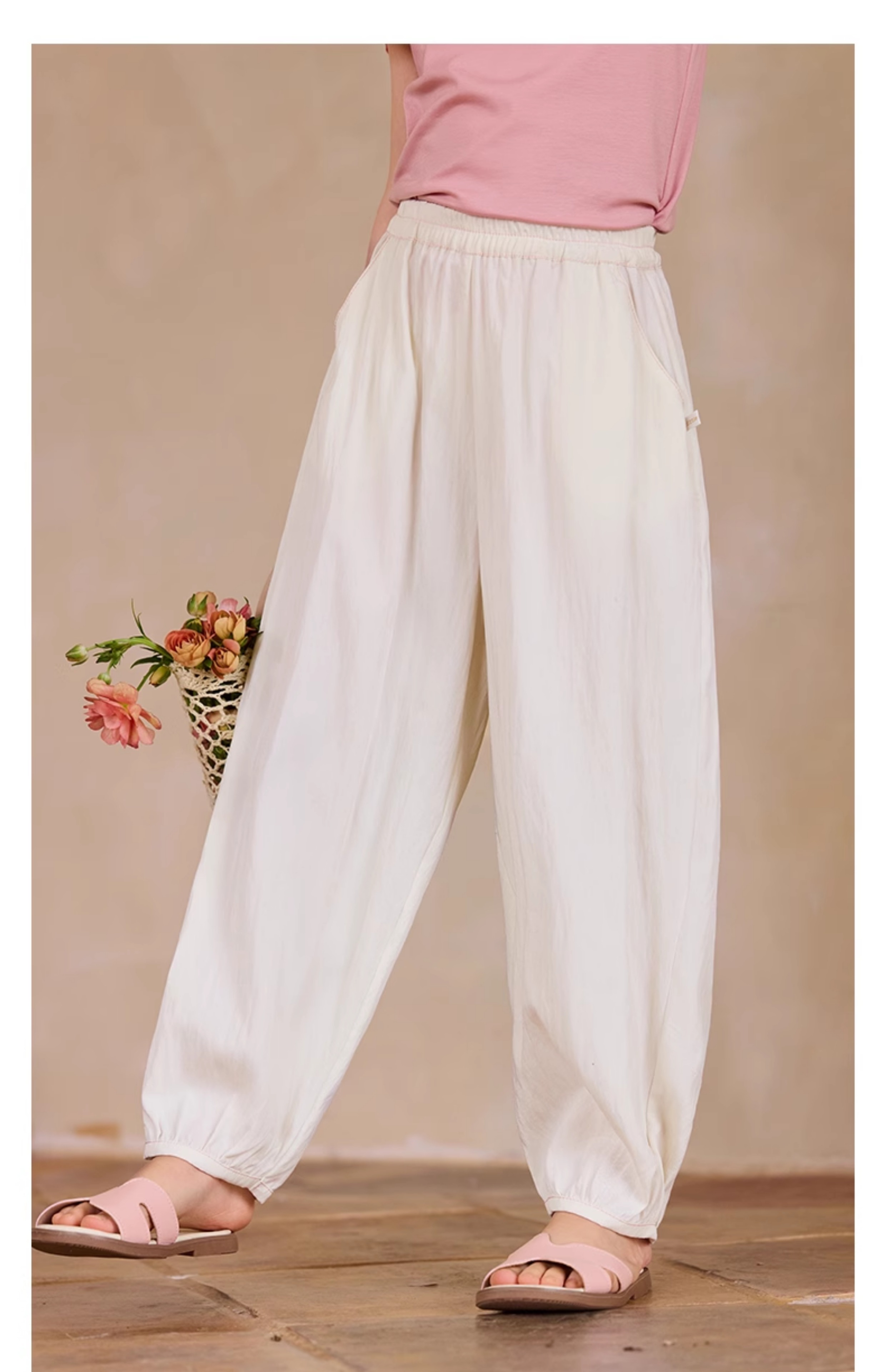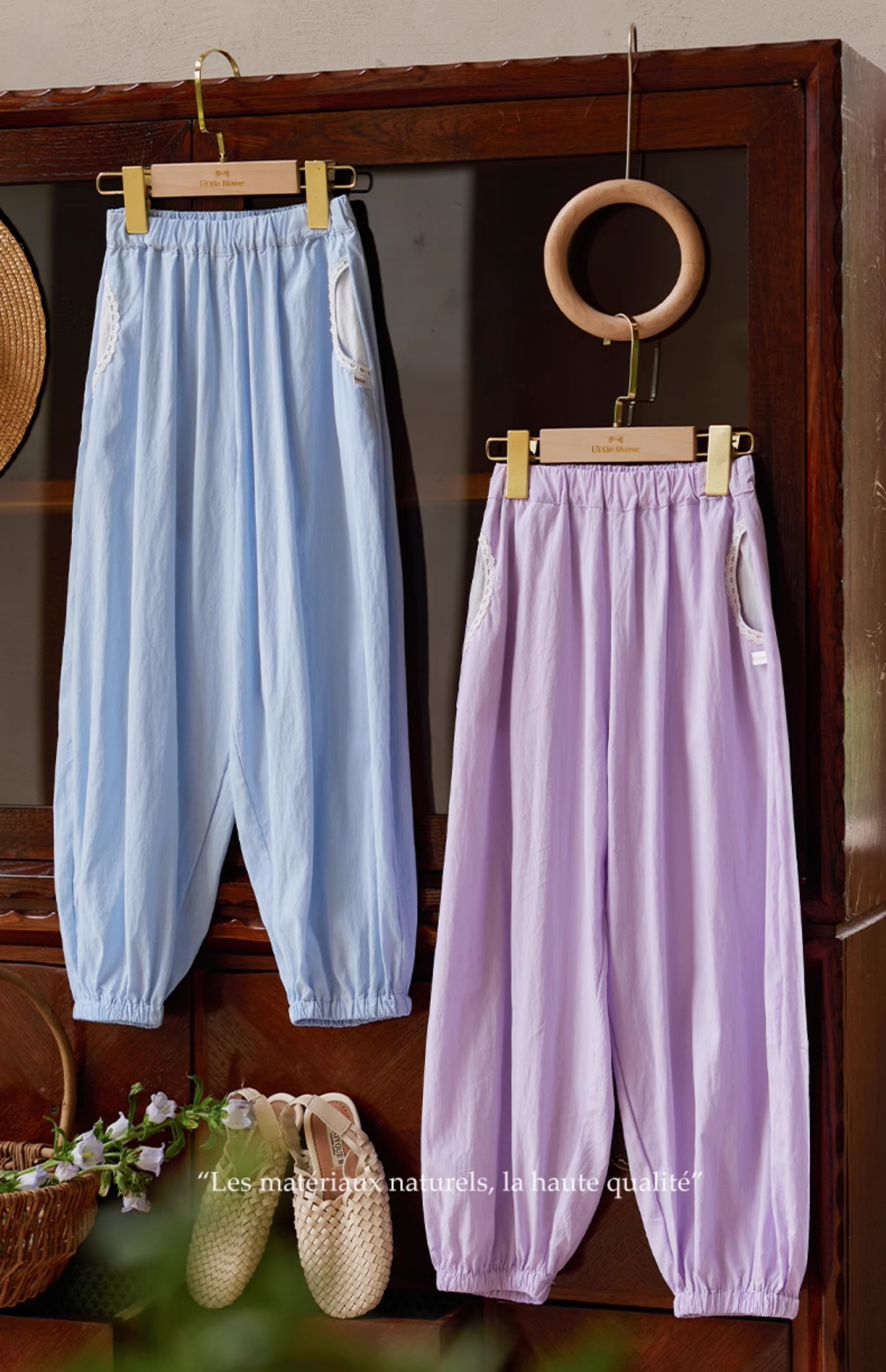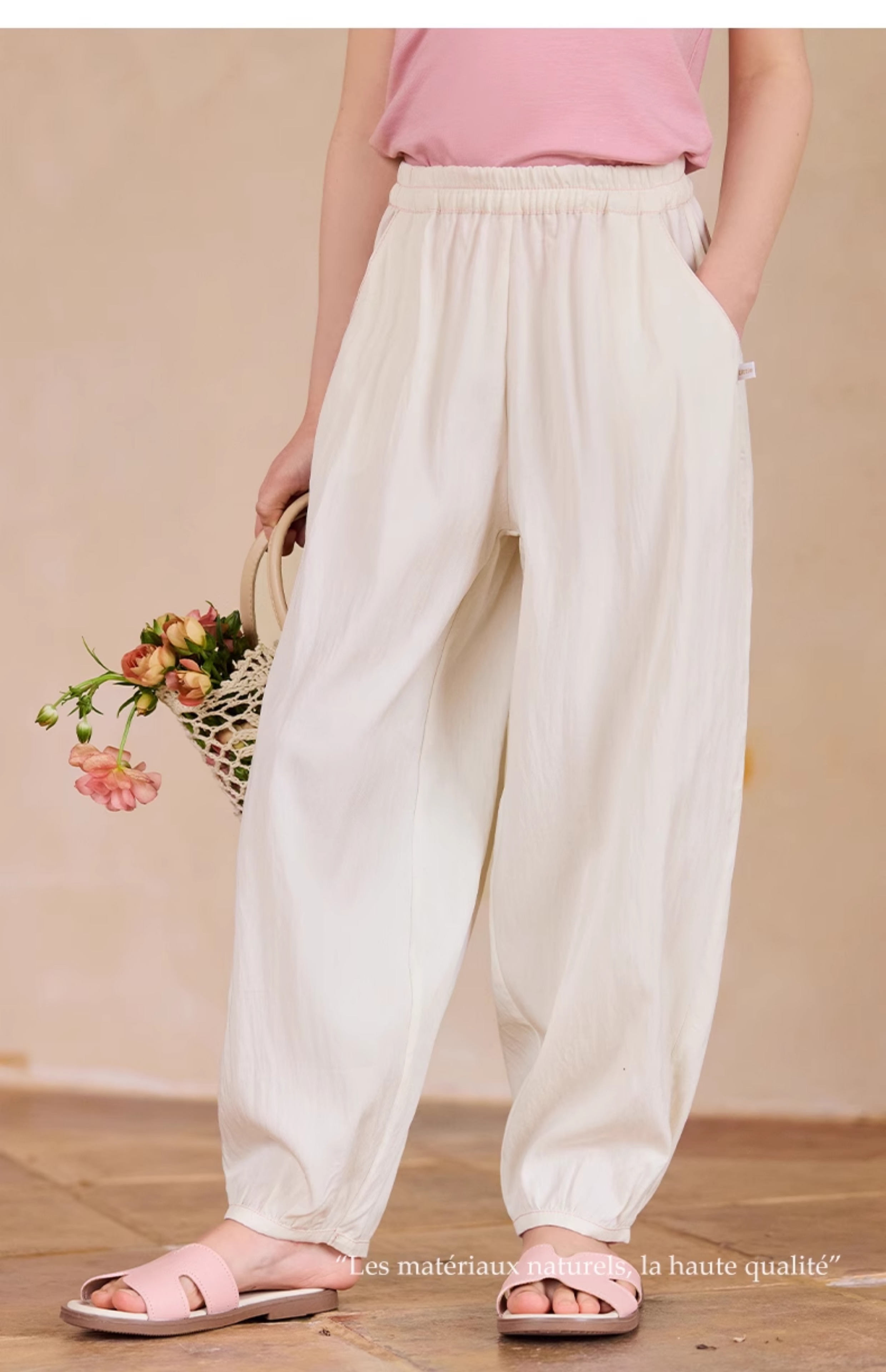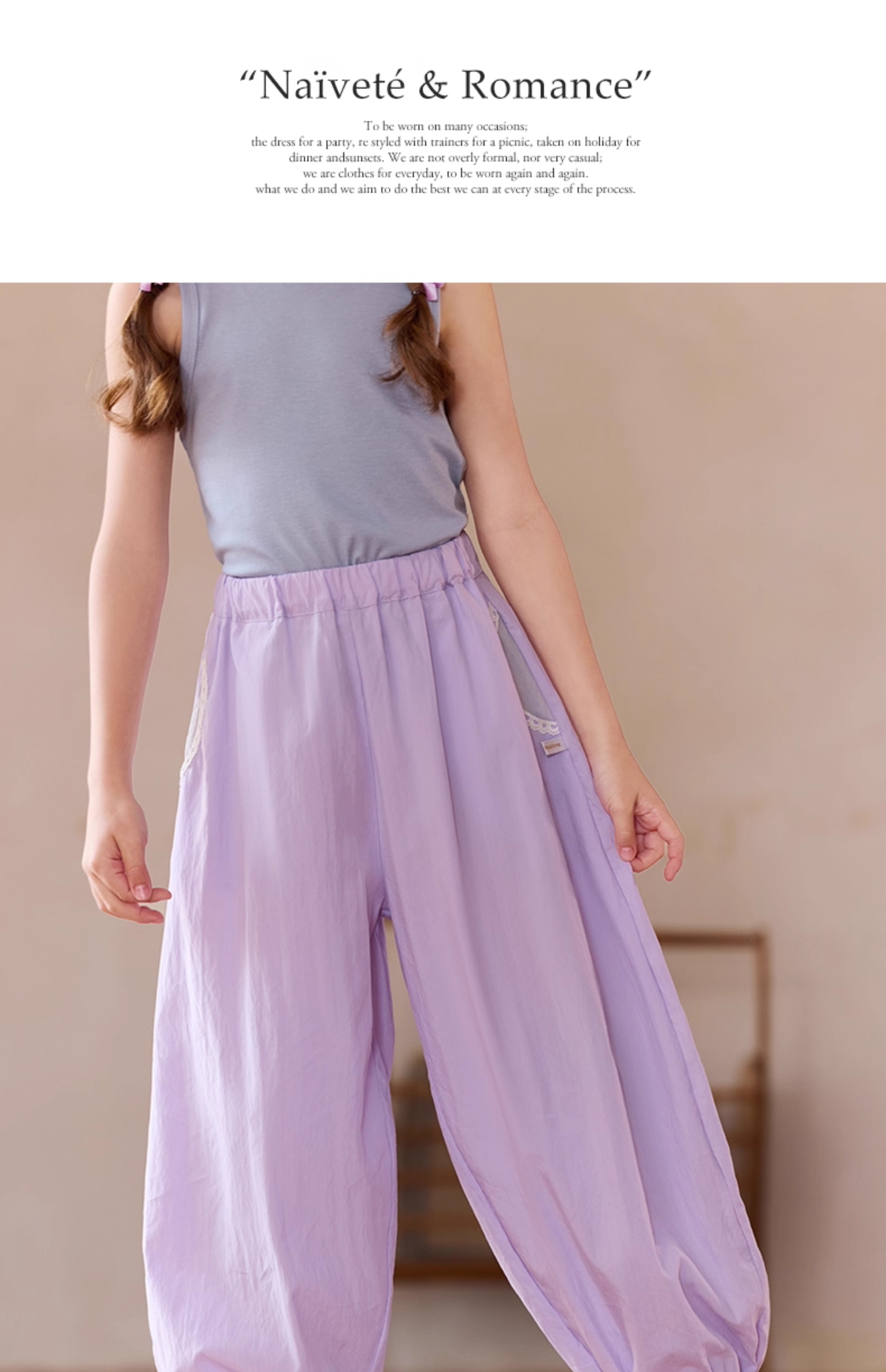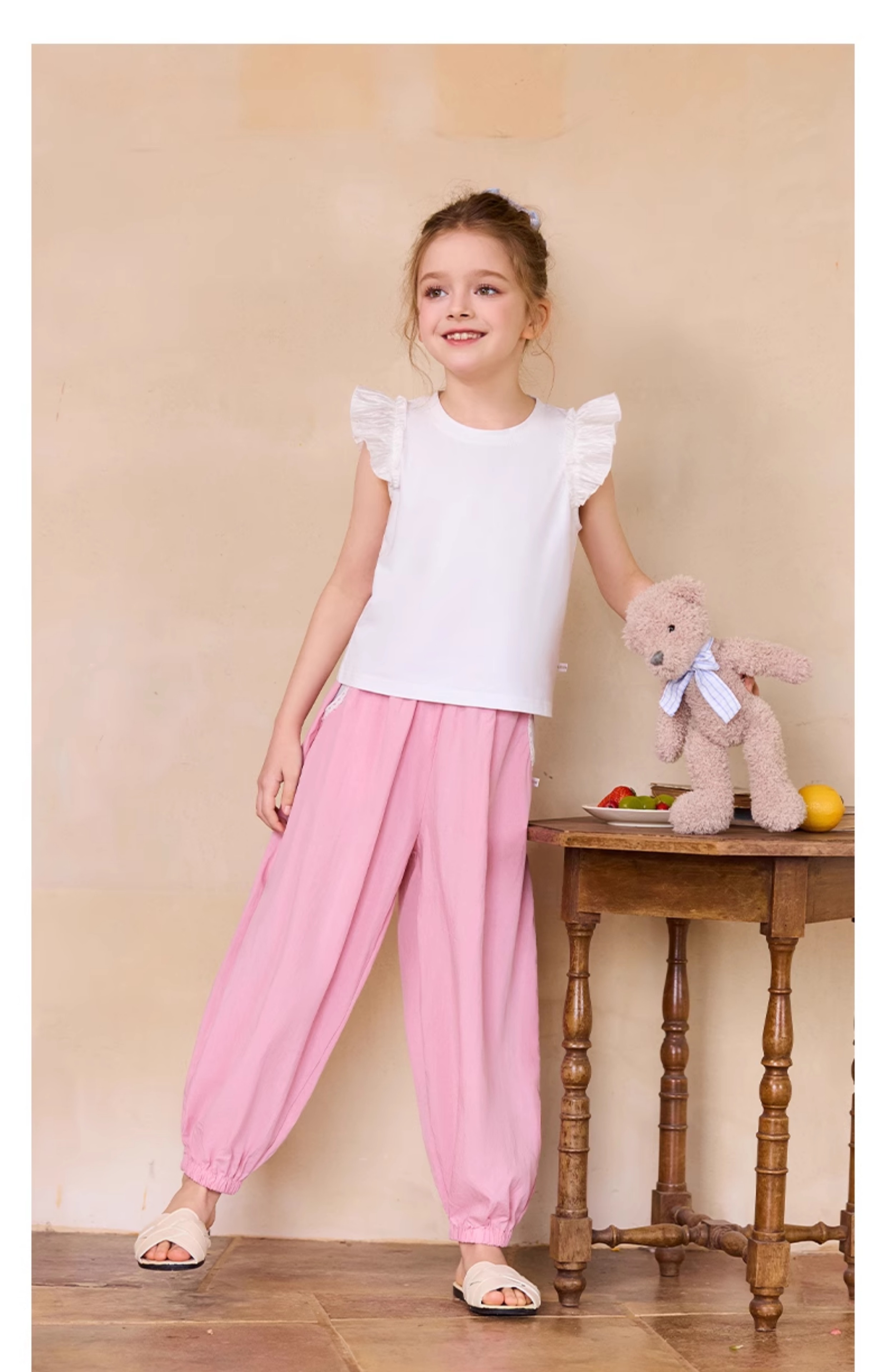 Little Naive女童涼感休閒褲春夏新款撞色燈籠褲兒童運動束腳褲