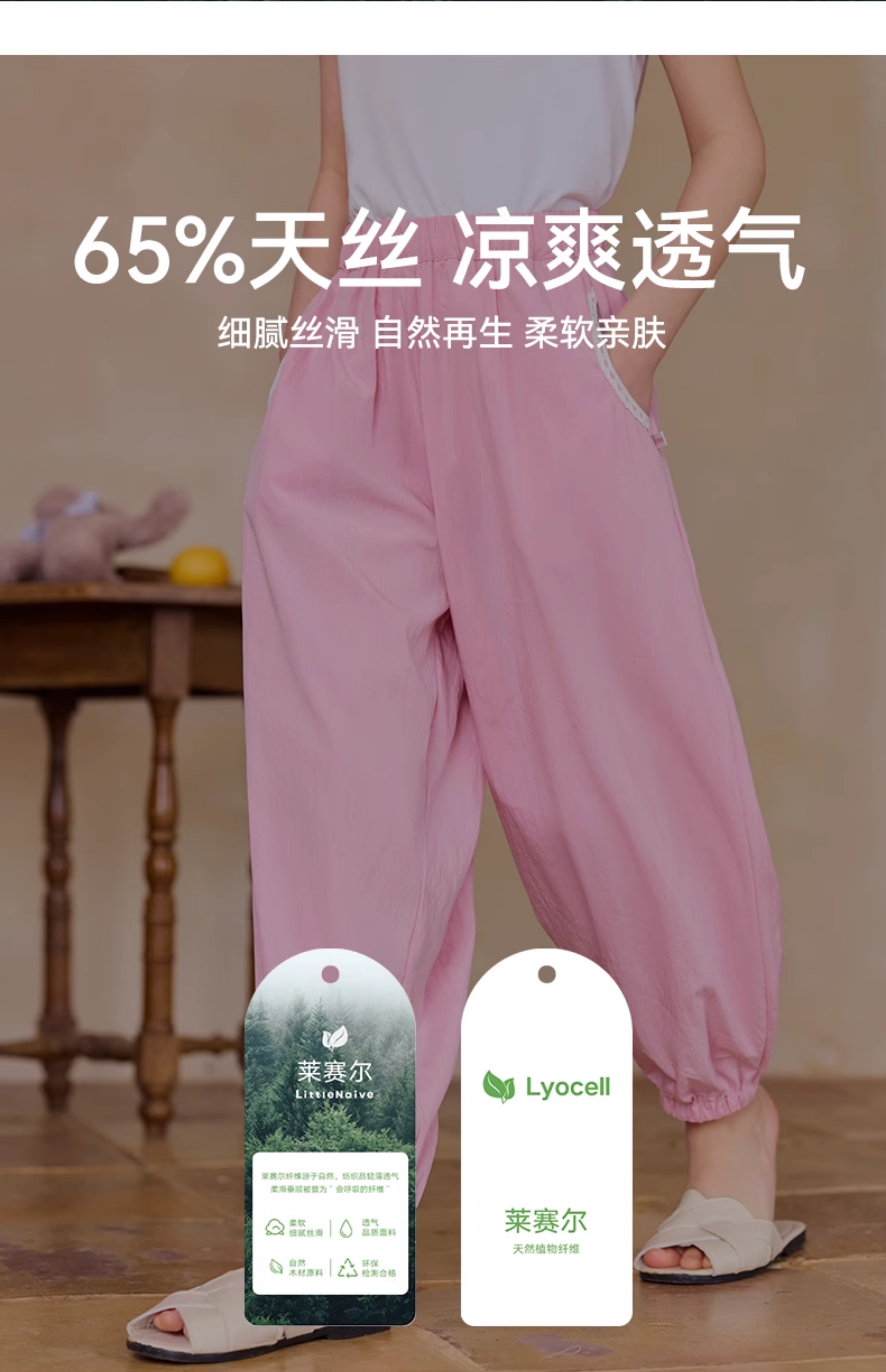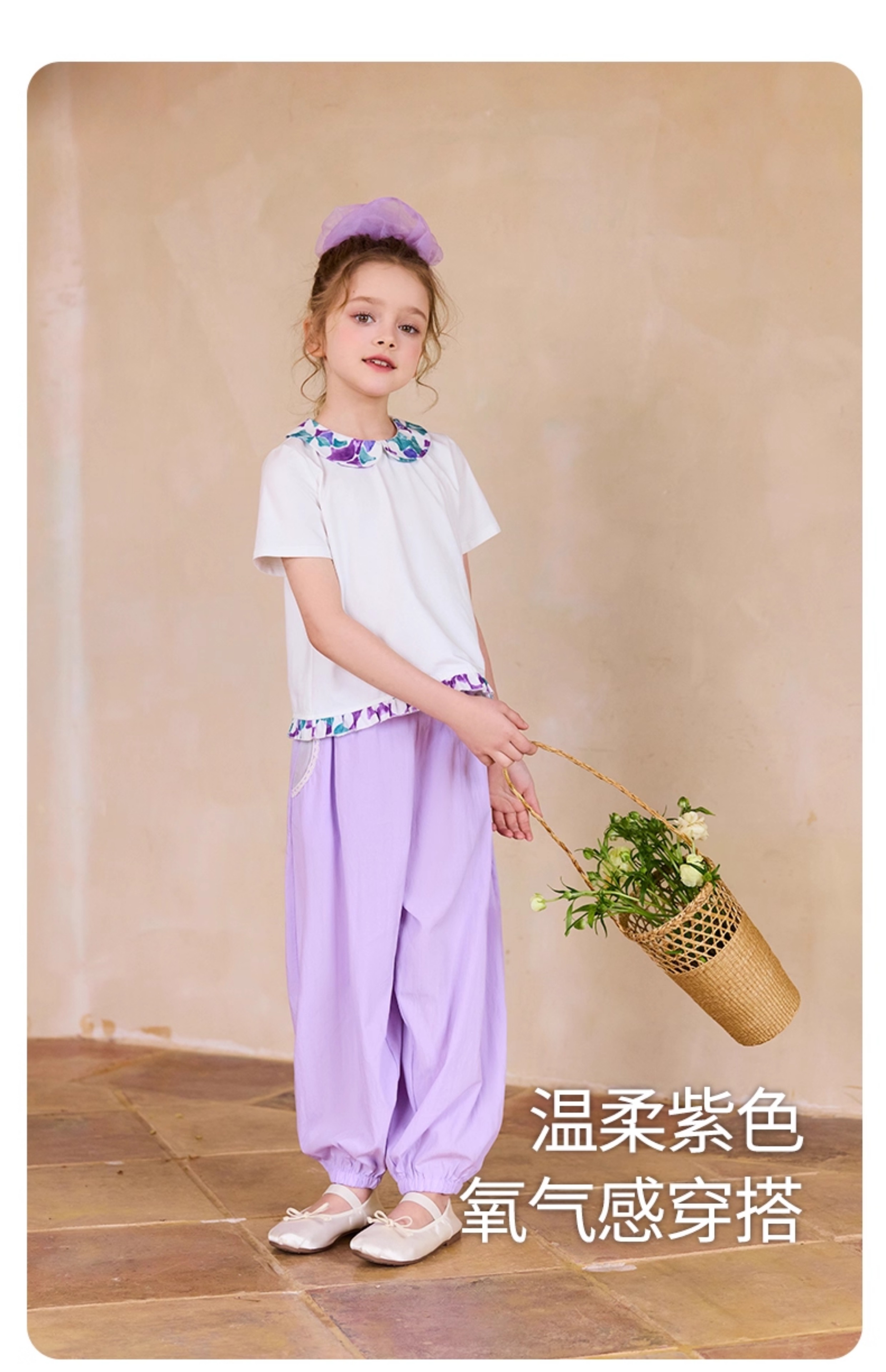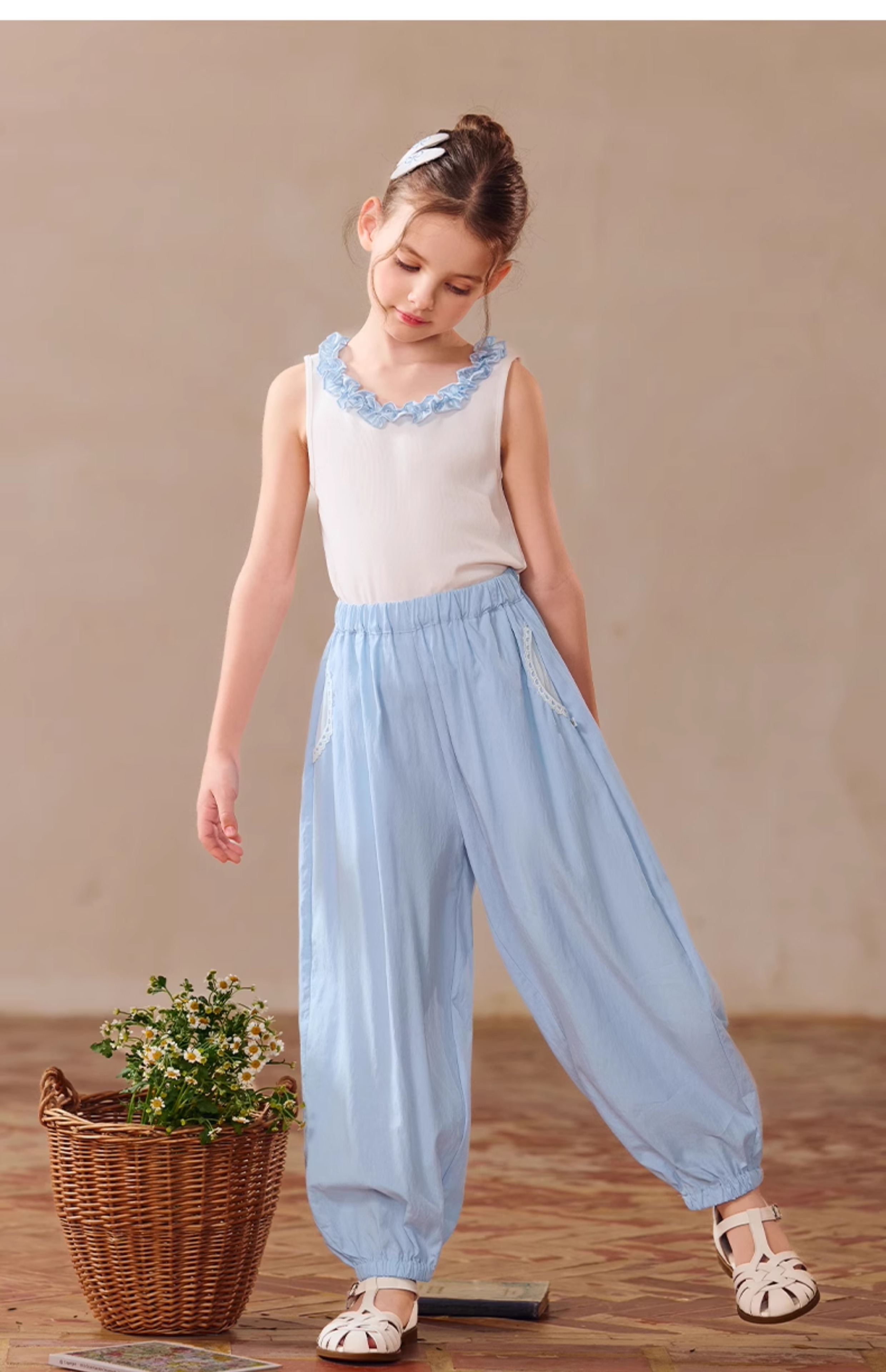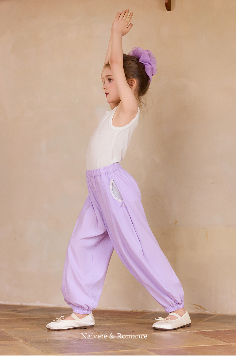 Little Naive女童涼感休閒褲春夏新款撞色燈籠褲兒童運動束腳褲