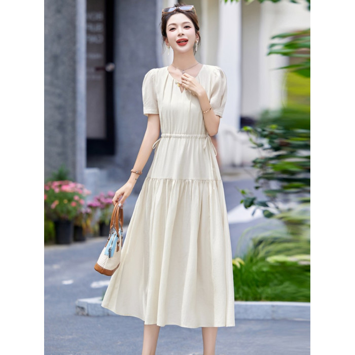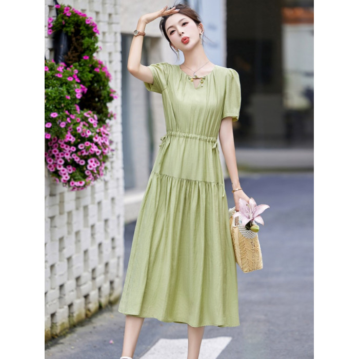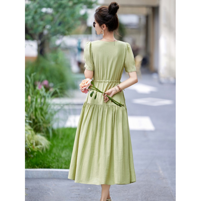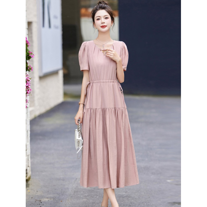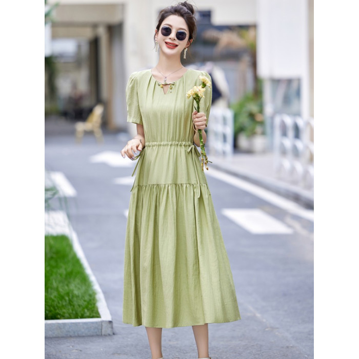 MJAE法式高級連衣裙女夏2025新款輕熟風收腰顯瘦小個子長裙
