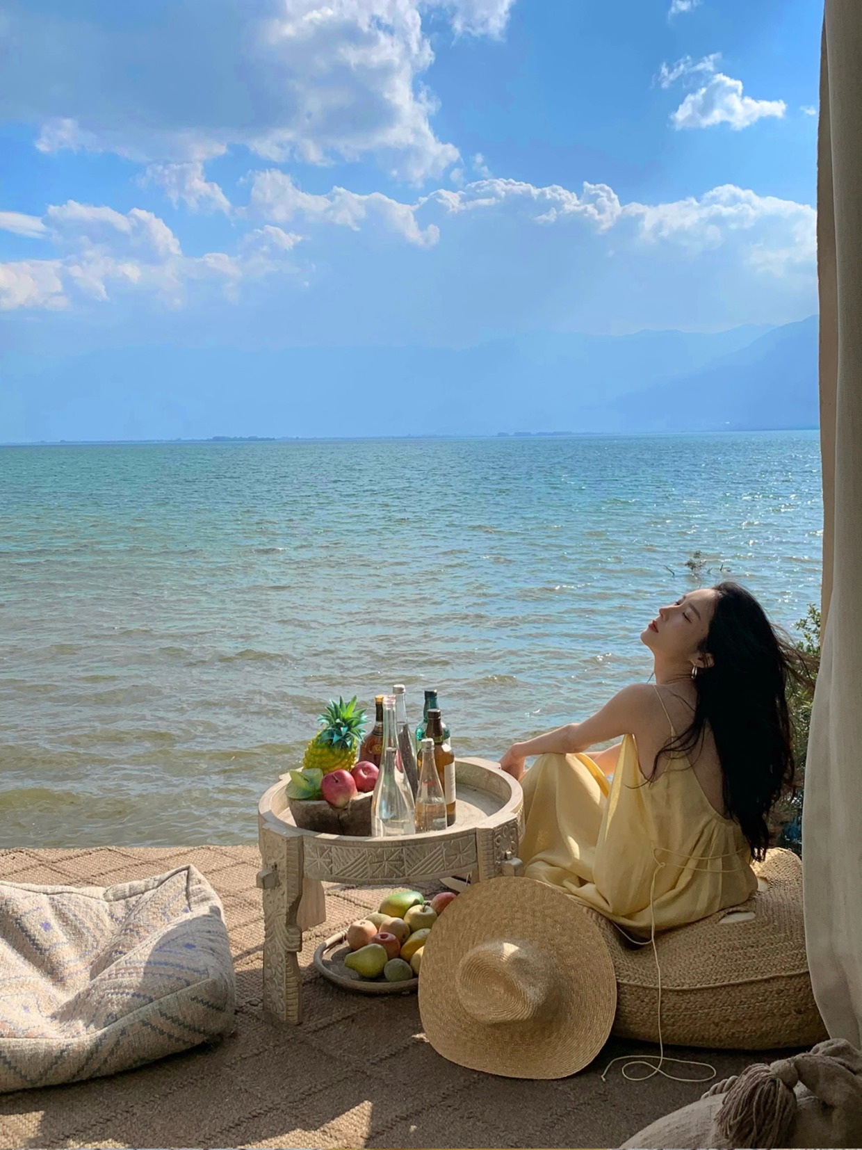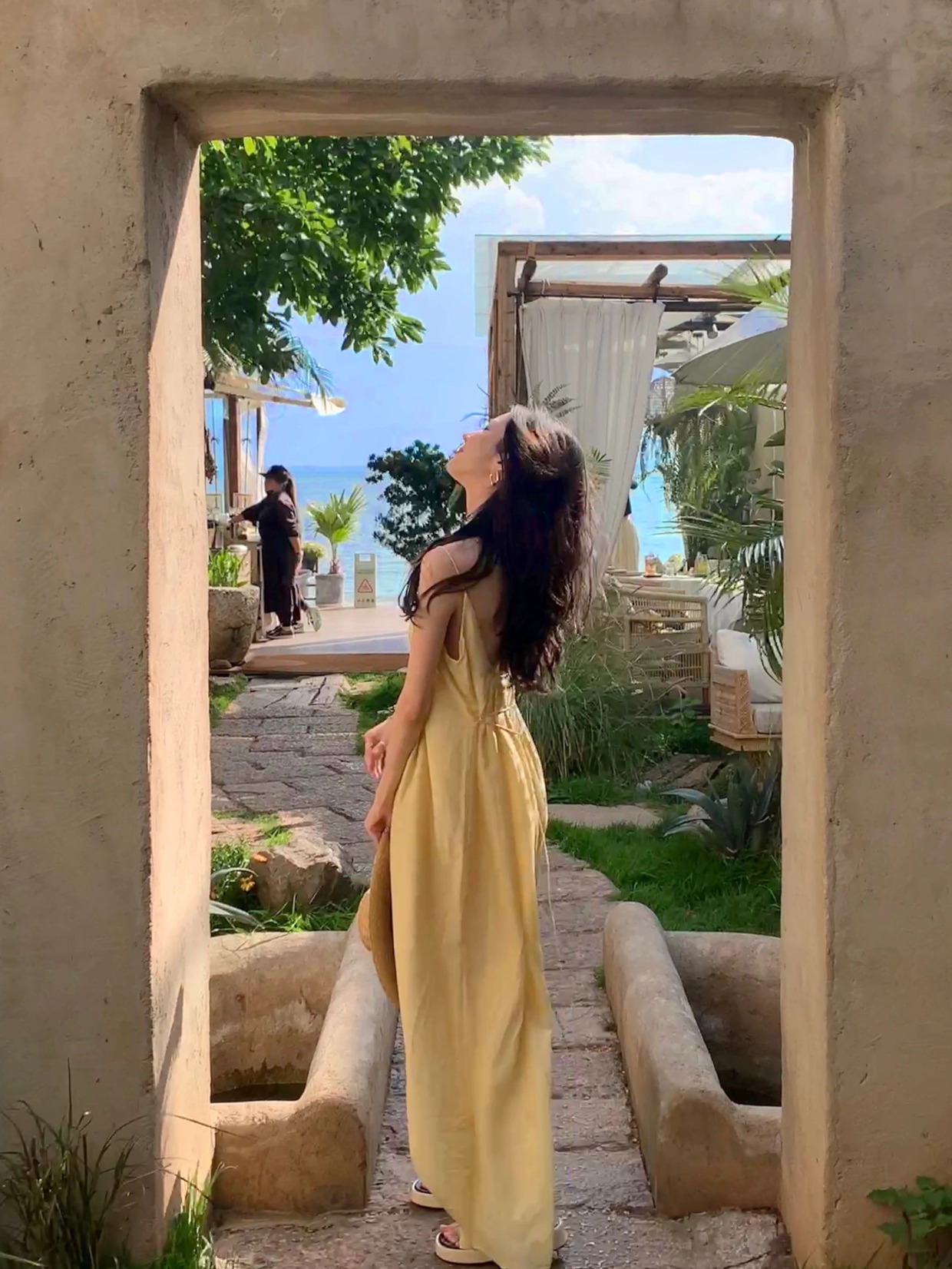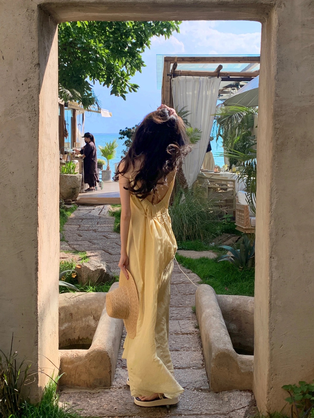 大理洱海法式拍照裙子西雙版納長裙女海南三亞度假沙灘吊帶連衣裙