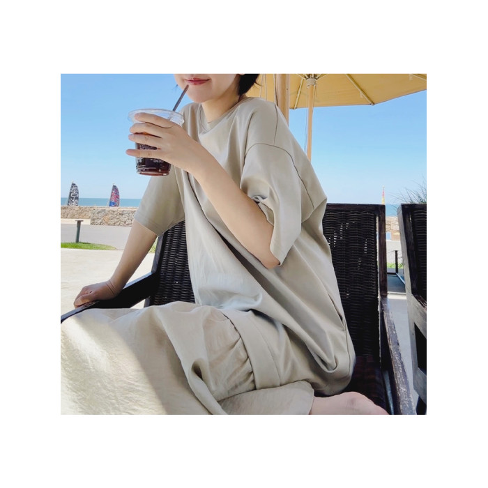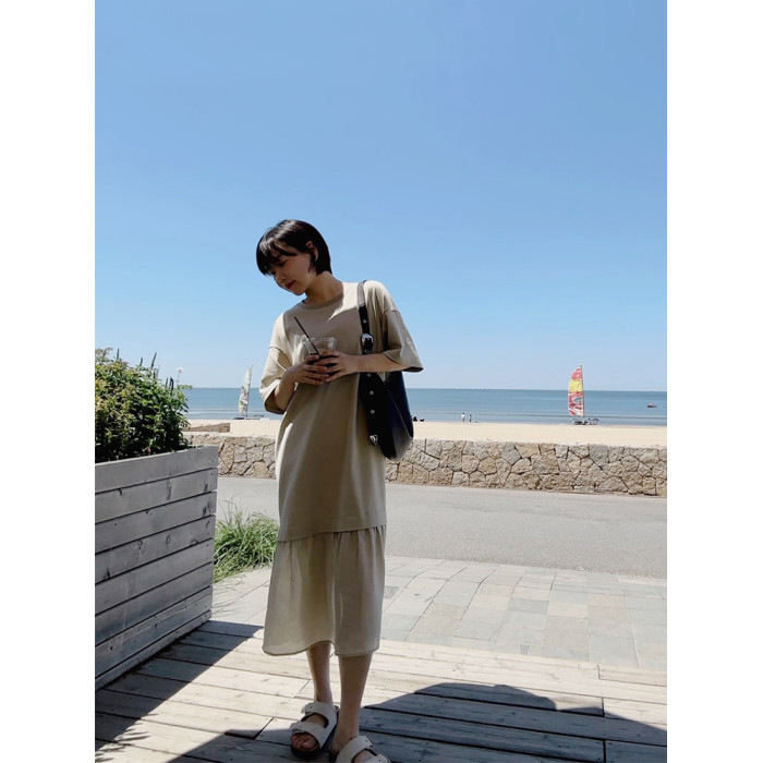 糖皮出品 海風吹過 天絲醋酸飄逸拼接 夏舒適純棉針織懶人連衣裙